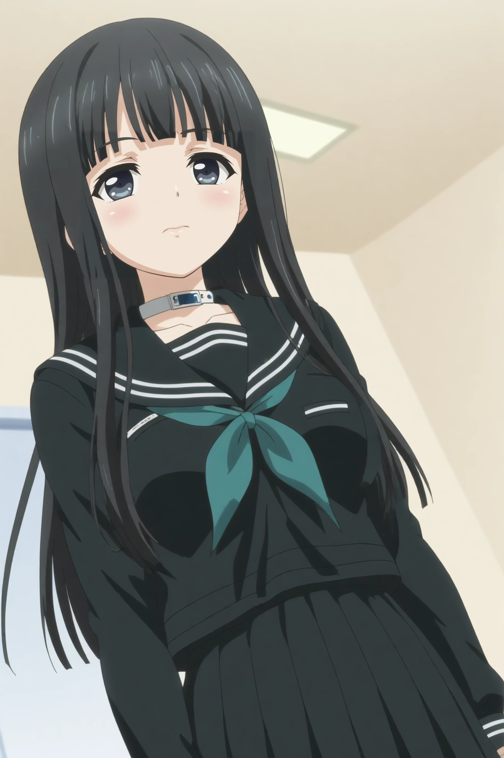 Triggers : rinne byakuya,solo,school uniform,serafuku,black serafuku,bangs,hime cut