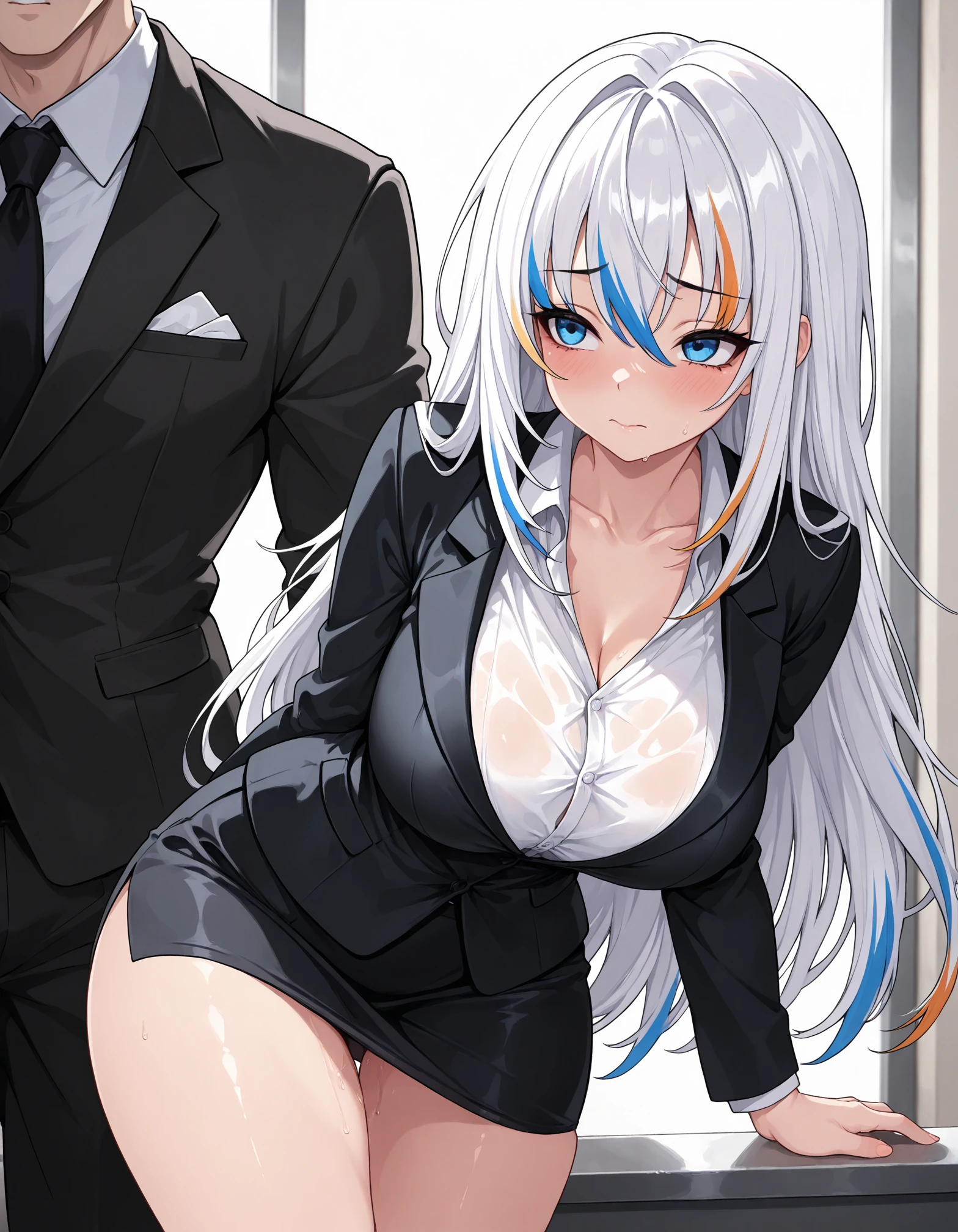 Base Prompt kattarina_qutie, 1girl, blue eyes, long hair, multicolored hair, breasts, white hair, streaked hair, large breasts