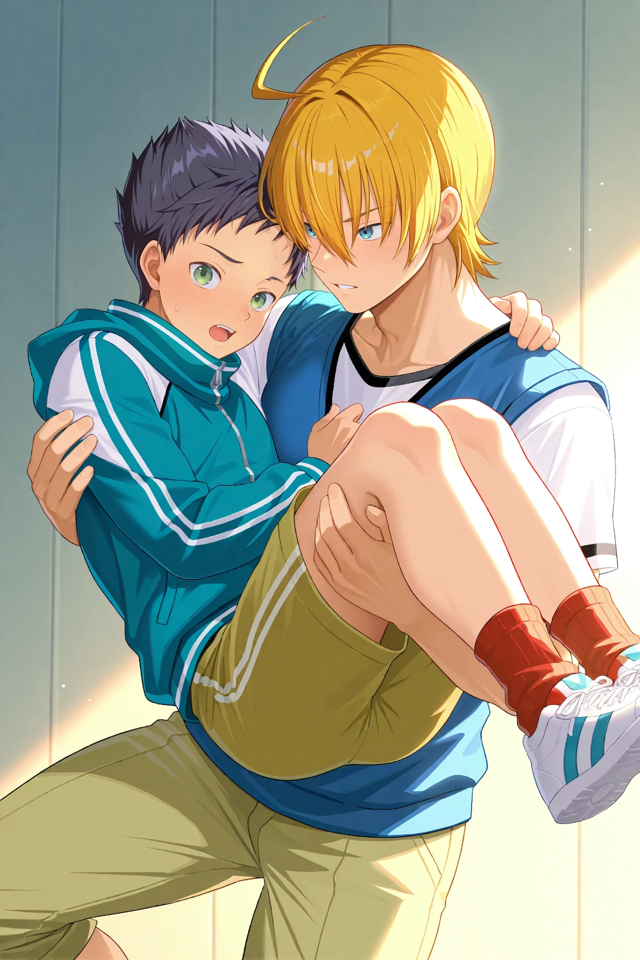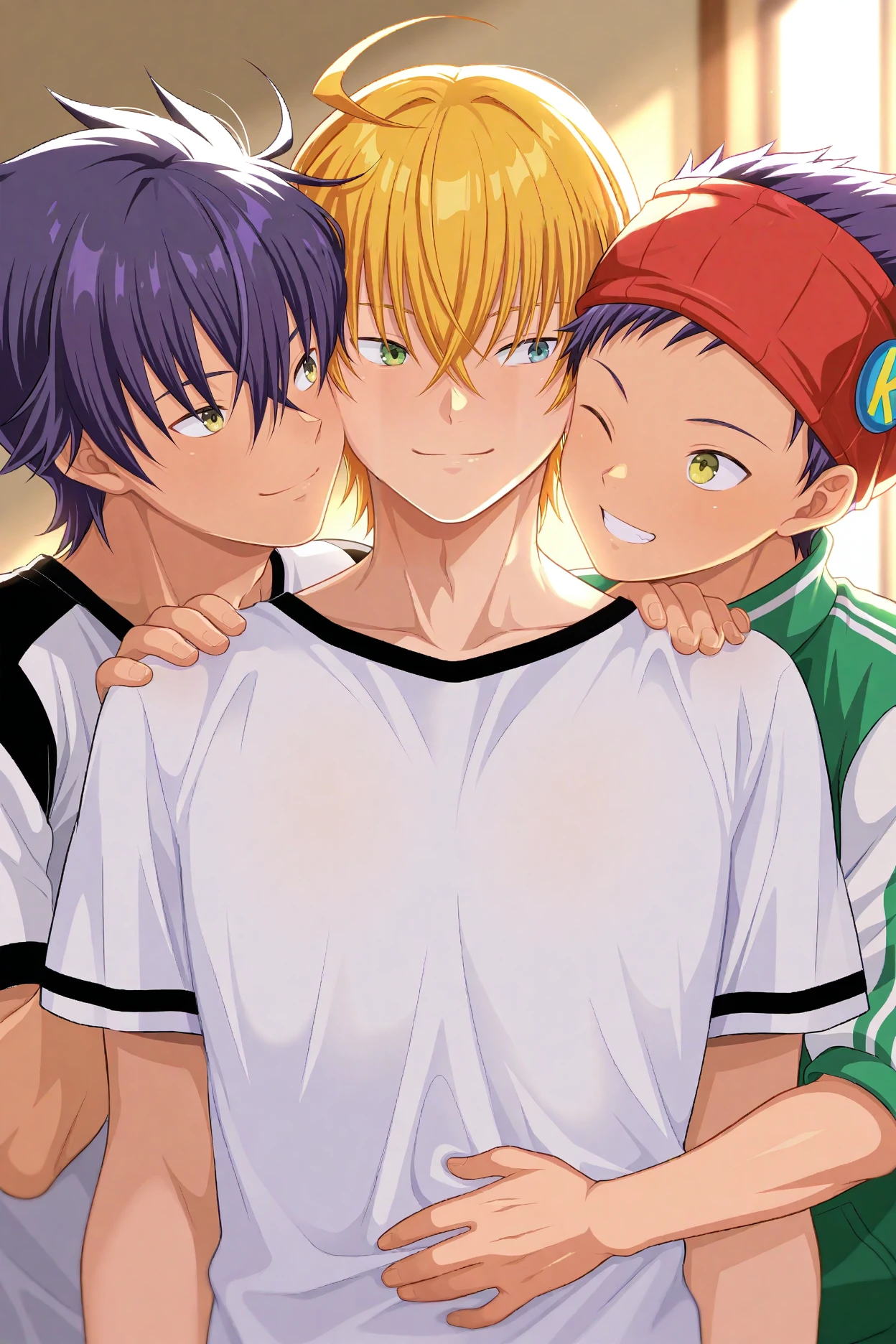 domon seijirou, blonde hair, blue eyes, freckles,