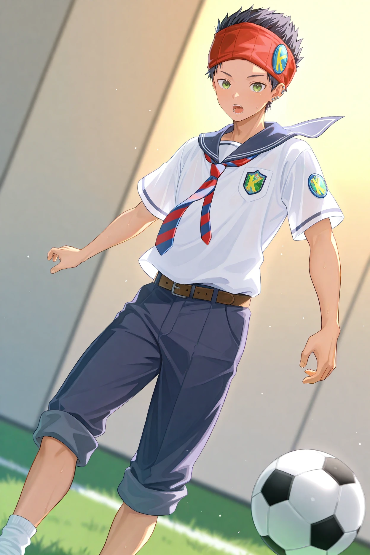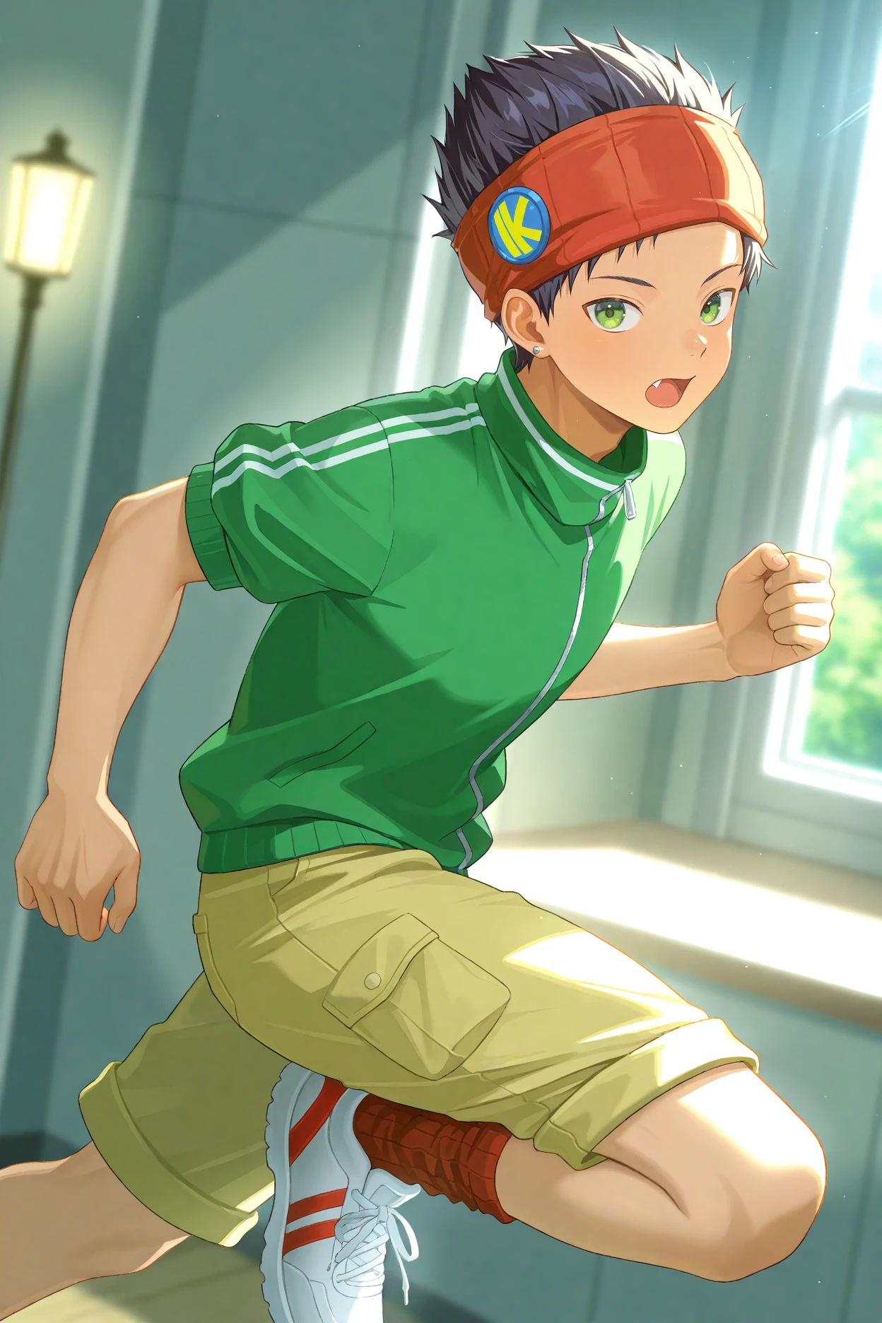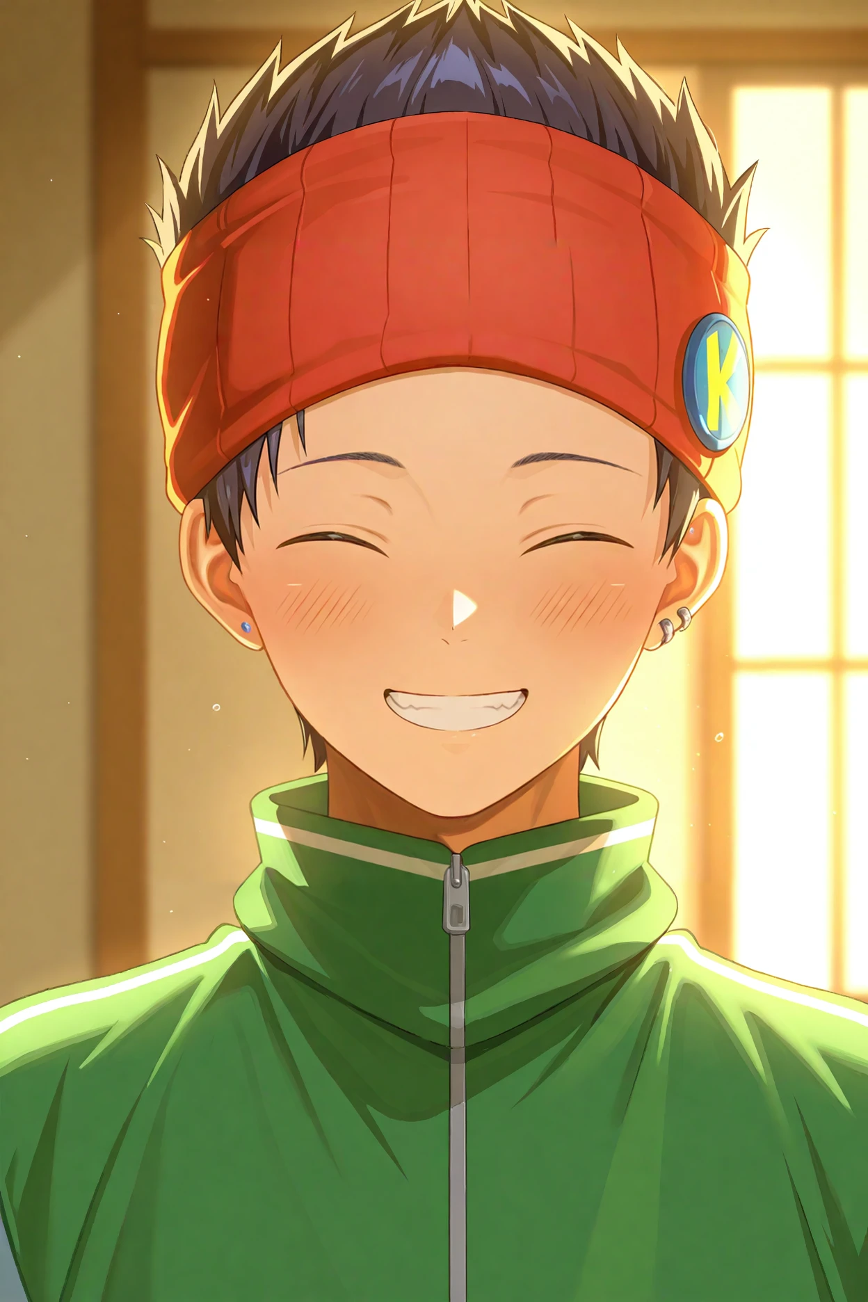 kazama Kippei, black hair, green eyes, red headband,