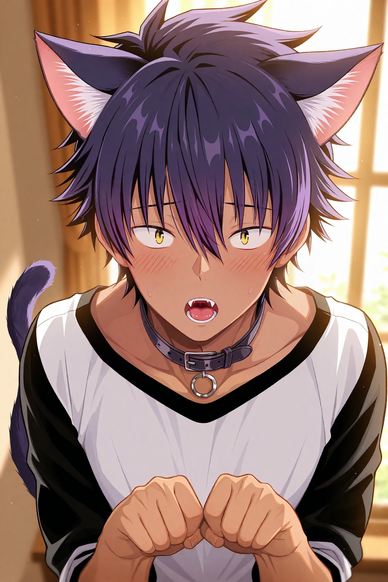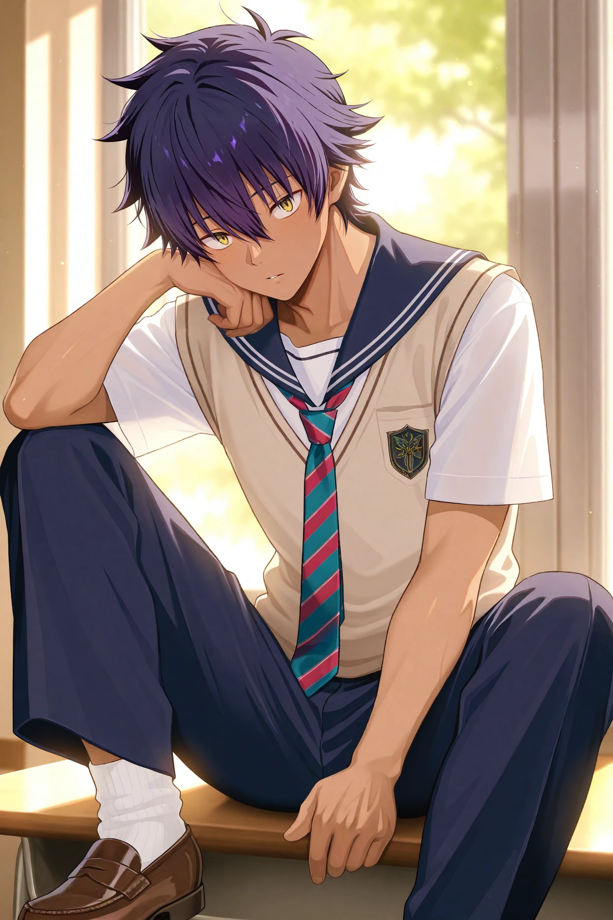 yamanobe homura, purple hair, yellow eyes,