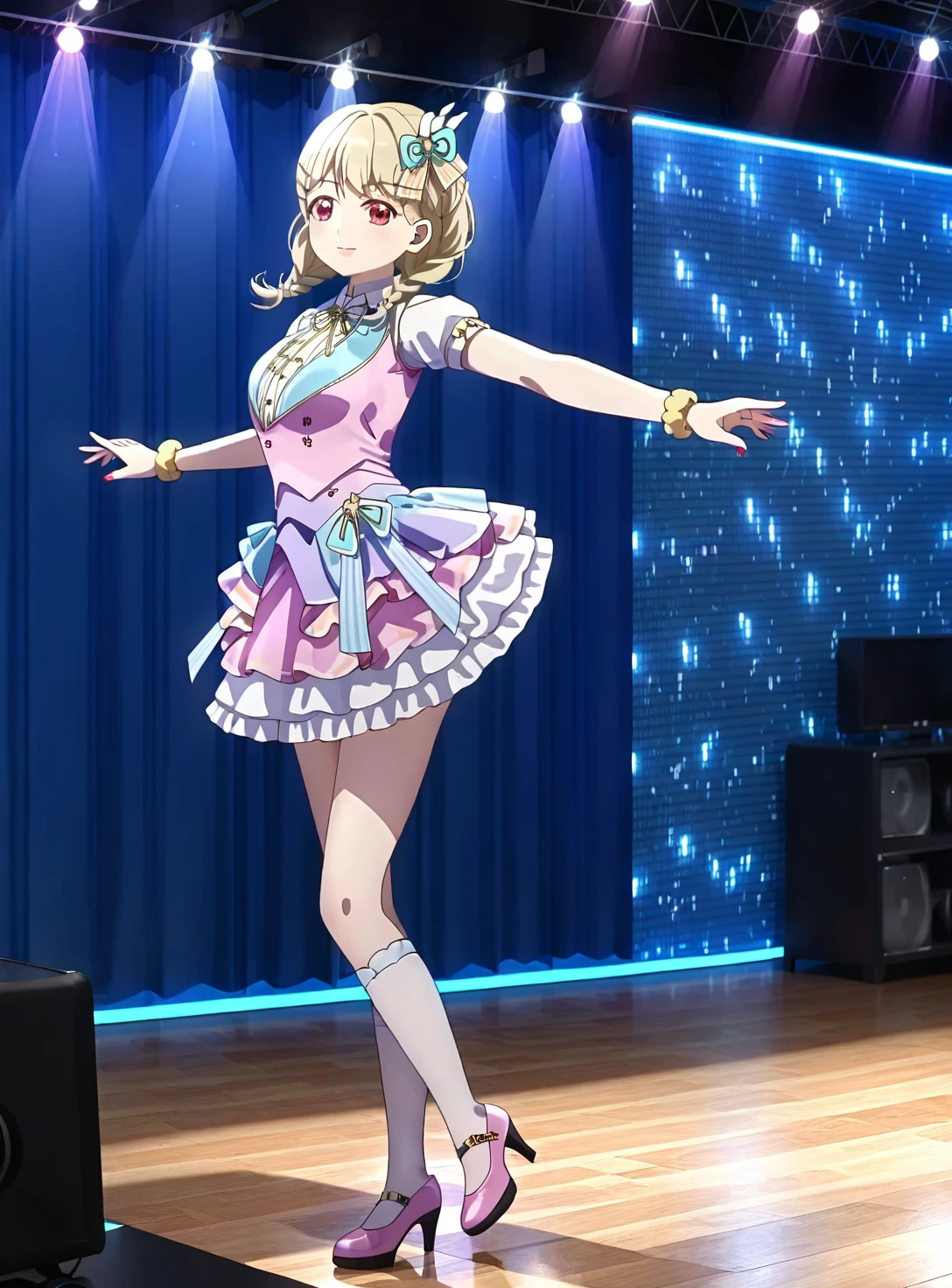 TotoIdol, 1girl, solo, twin short braids, idol clothes,