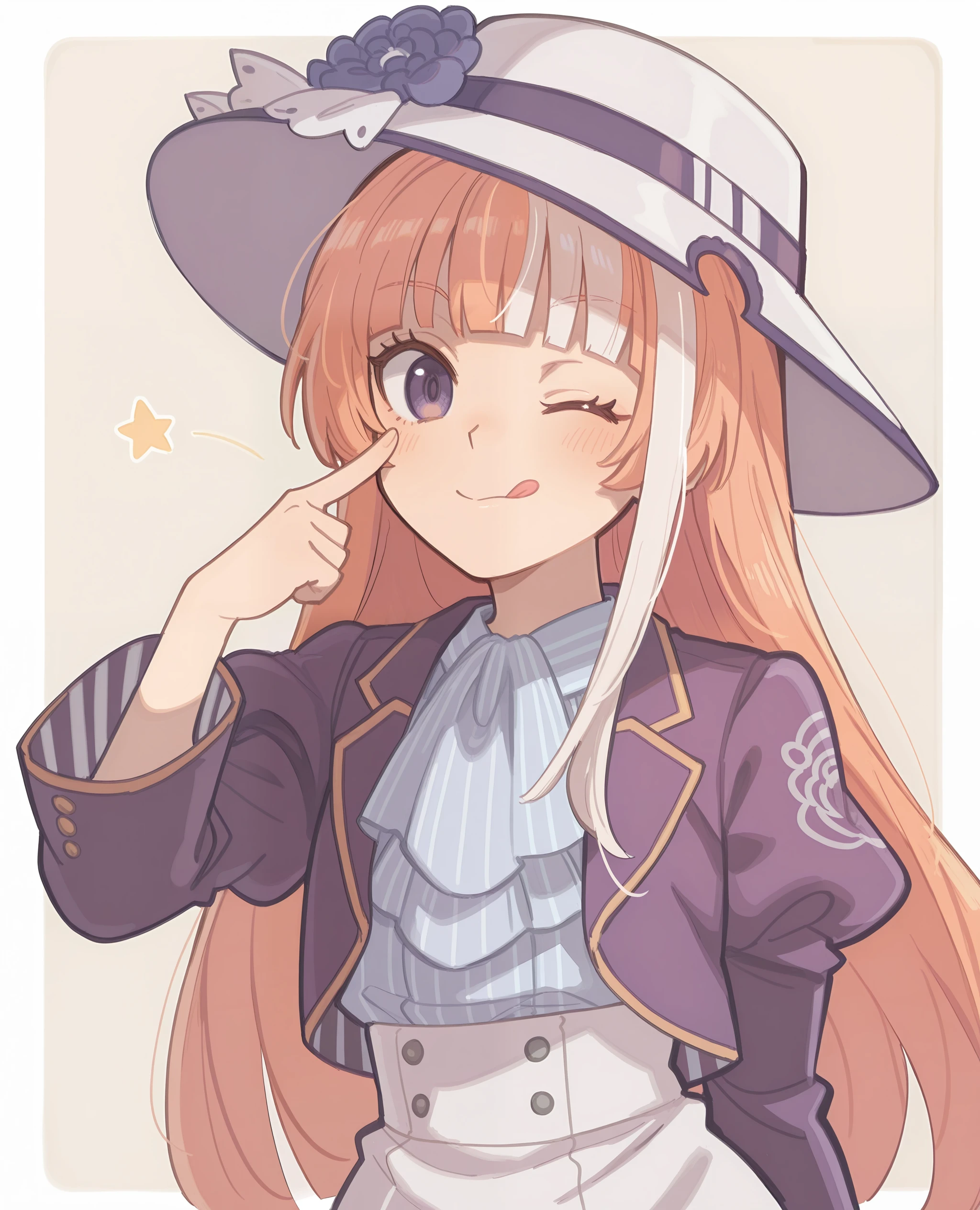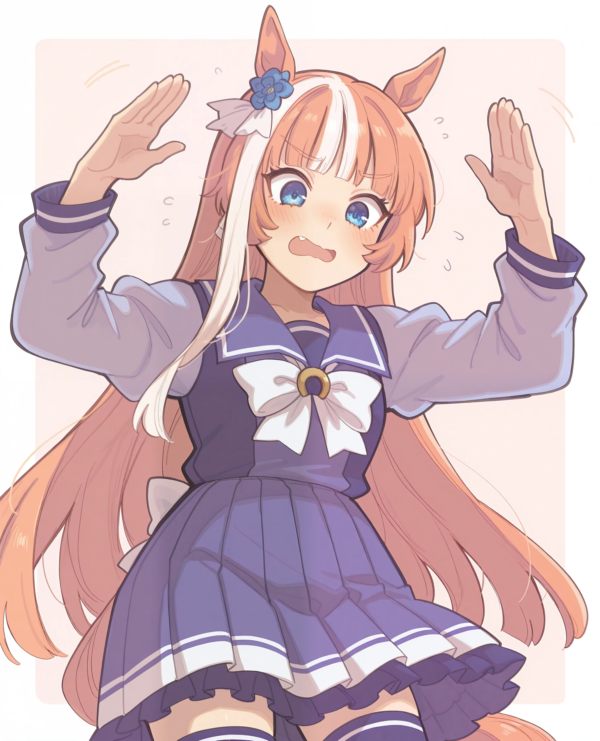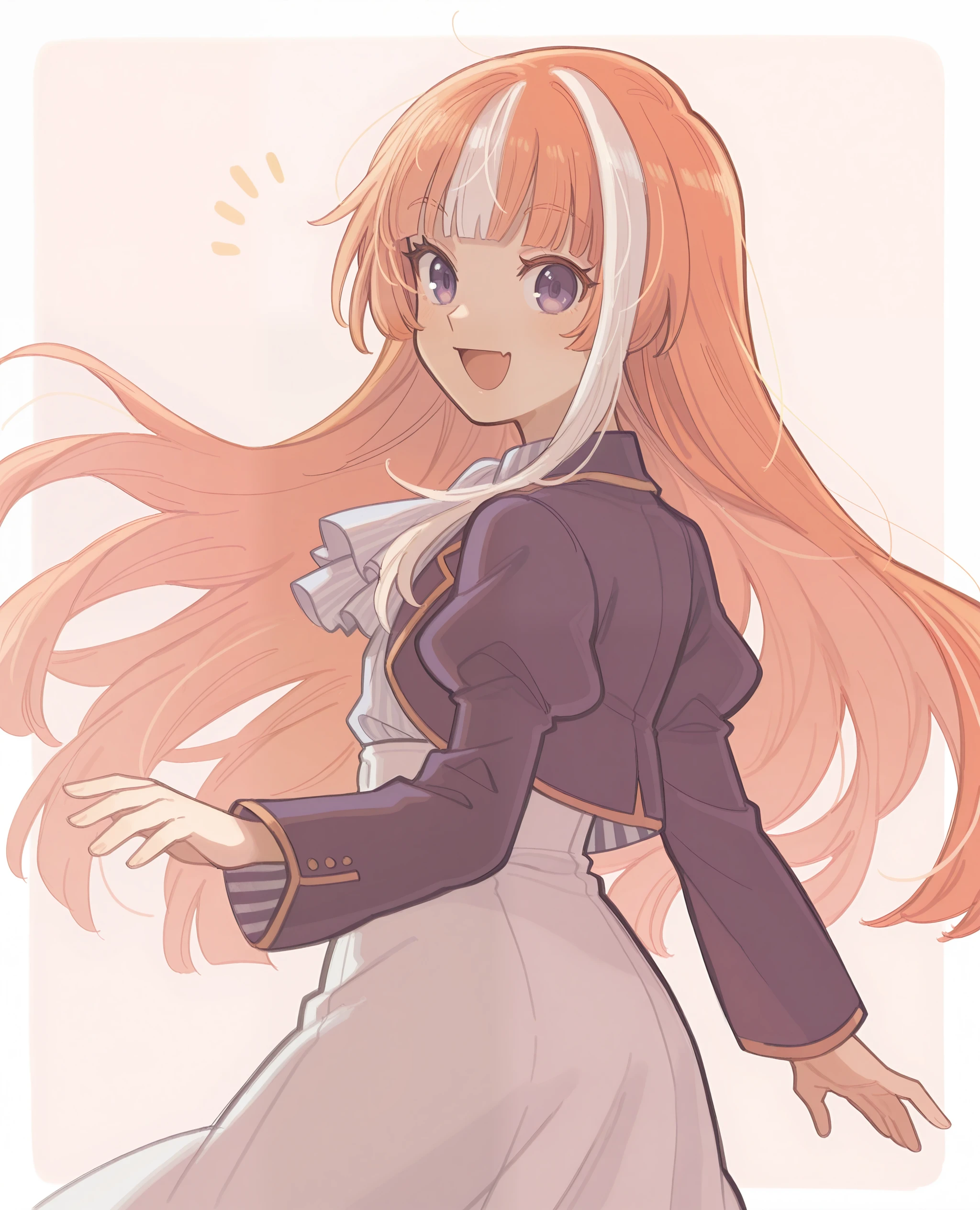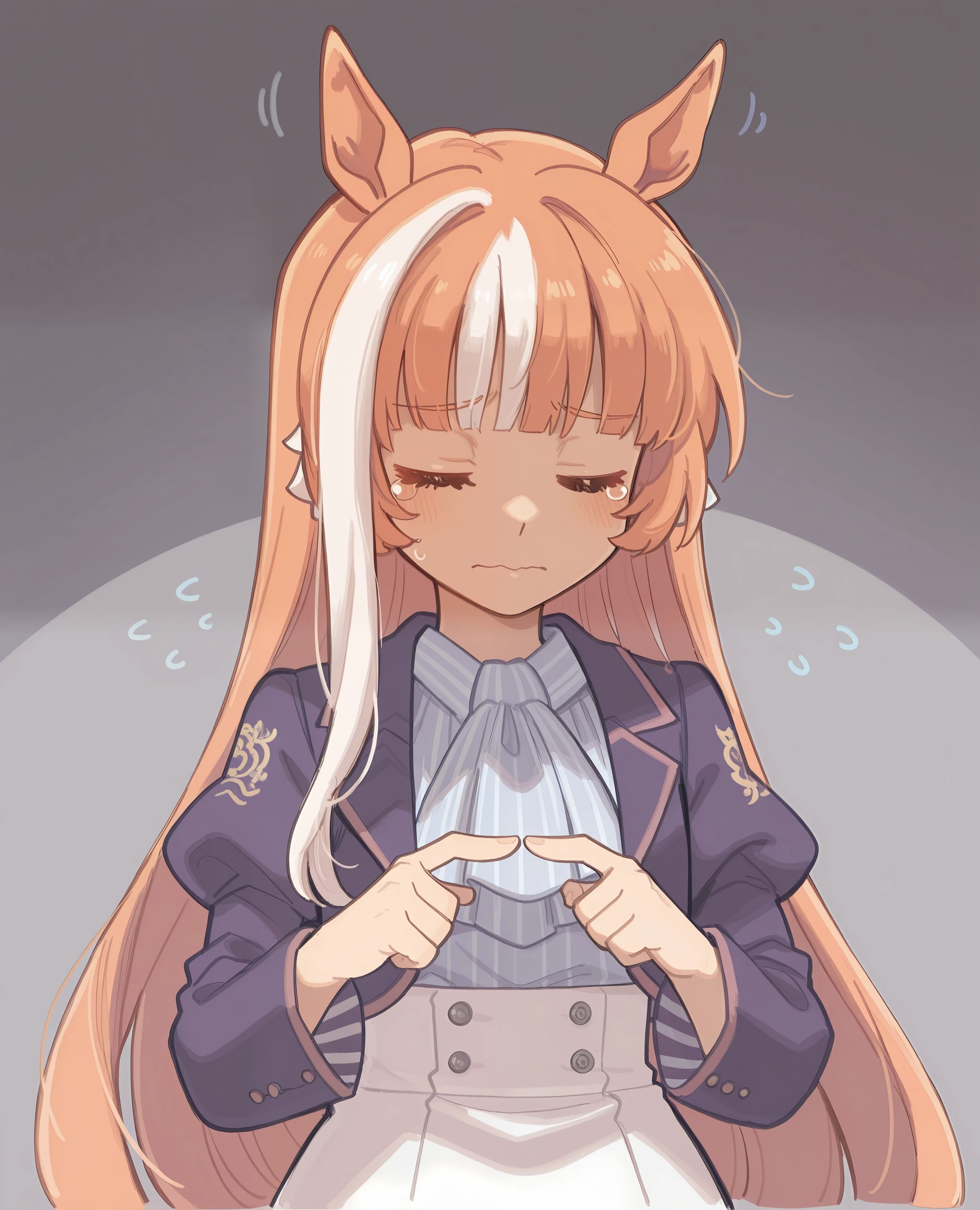 <lora:akikawa_umamusume:0.8> akikawa_il, long orange hair, white hair streak,blunt bangs, purple eyes,
