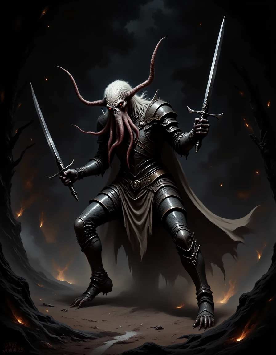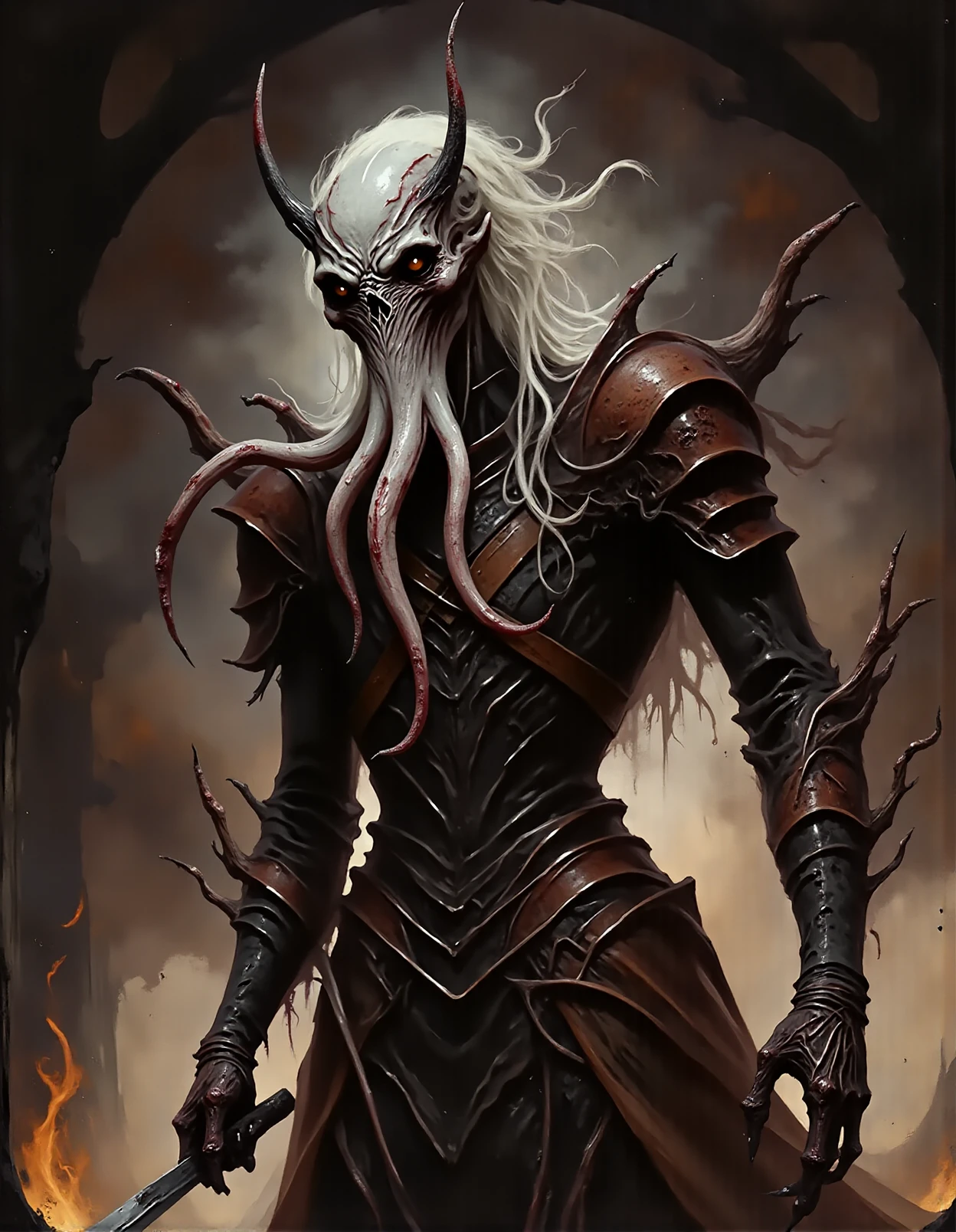 When using his LoRA to create the images of him on this page, I included the Dungeons & Dreamscapes LoRA to give him a more intense "dark fantasy" aesthetic, the other LoRA involved in his creation was the Mind Flayer LoRA, so a big thanks to #1 and #2 for that.