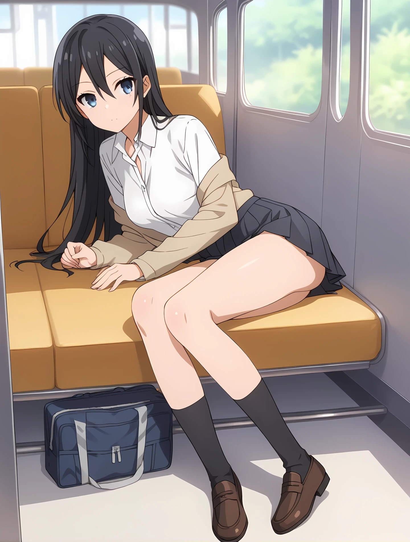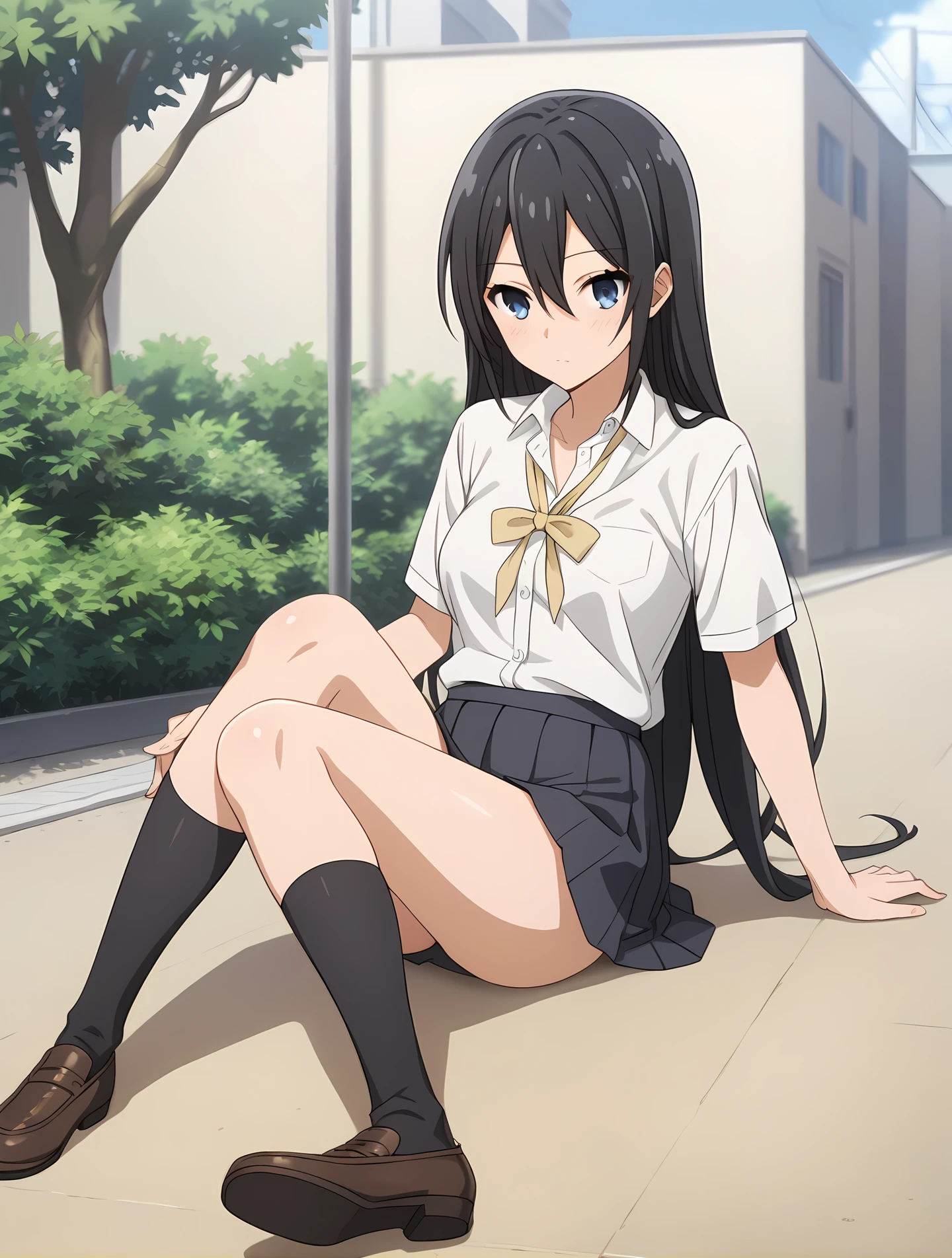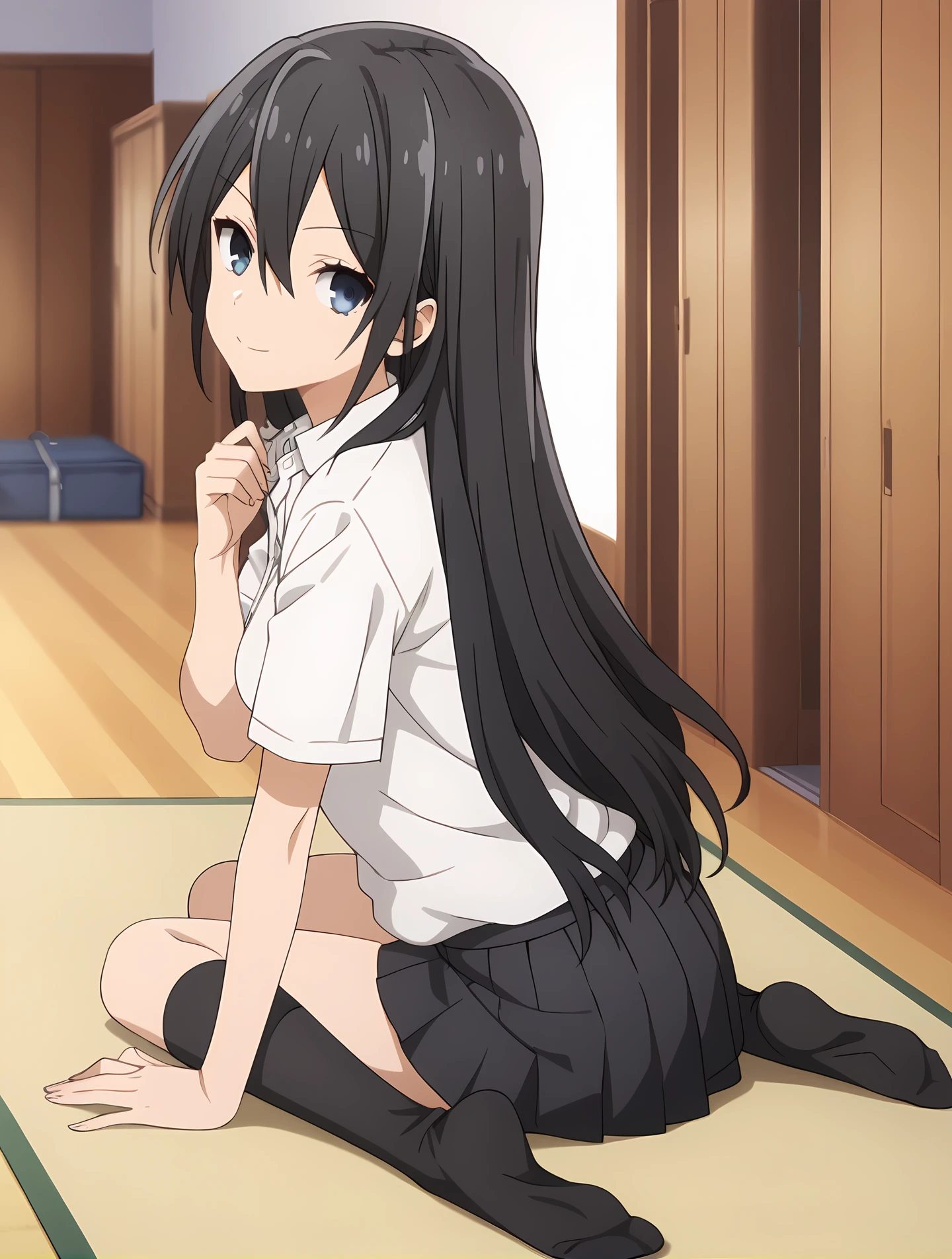 school uniform, skirt, white shirt, black socks, uwabaki