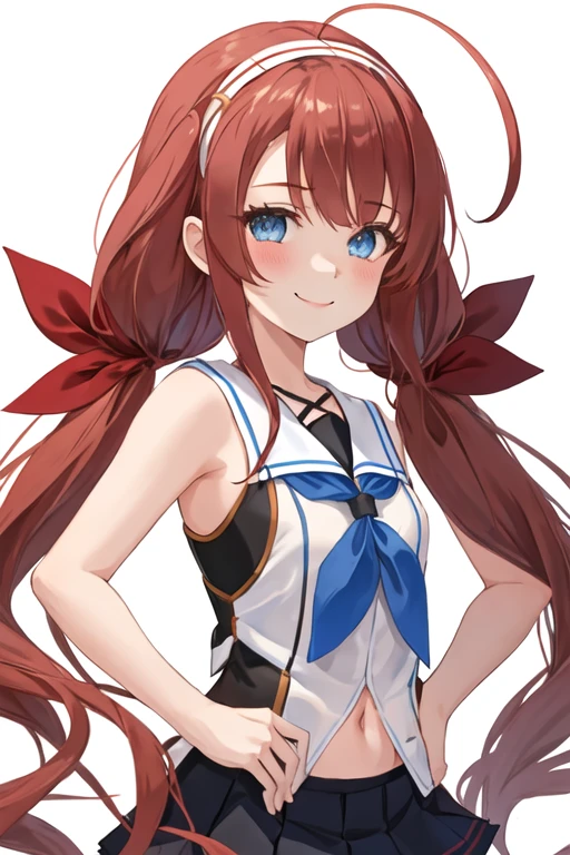 The trigger word is kawakaze_kantaicollection, and the recommended tags are best quality, masterpiece, highres, solo, {kawakaze_kantaicollection:1.15}, long_hair, red_hair, ribbon, hairband, hair_ribbon, bangs, ahoge, twintails, sidelocks, low_twintails, asymmetrical_bangs, very_long_hair, smile, blue_eyes, serafuku, sleeveless, hair_flaps.