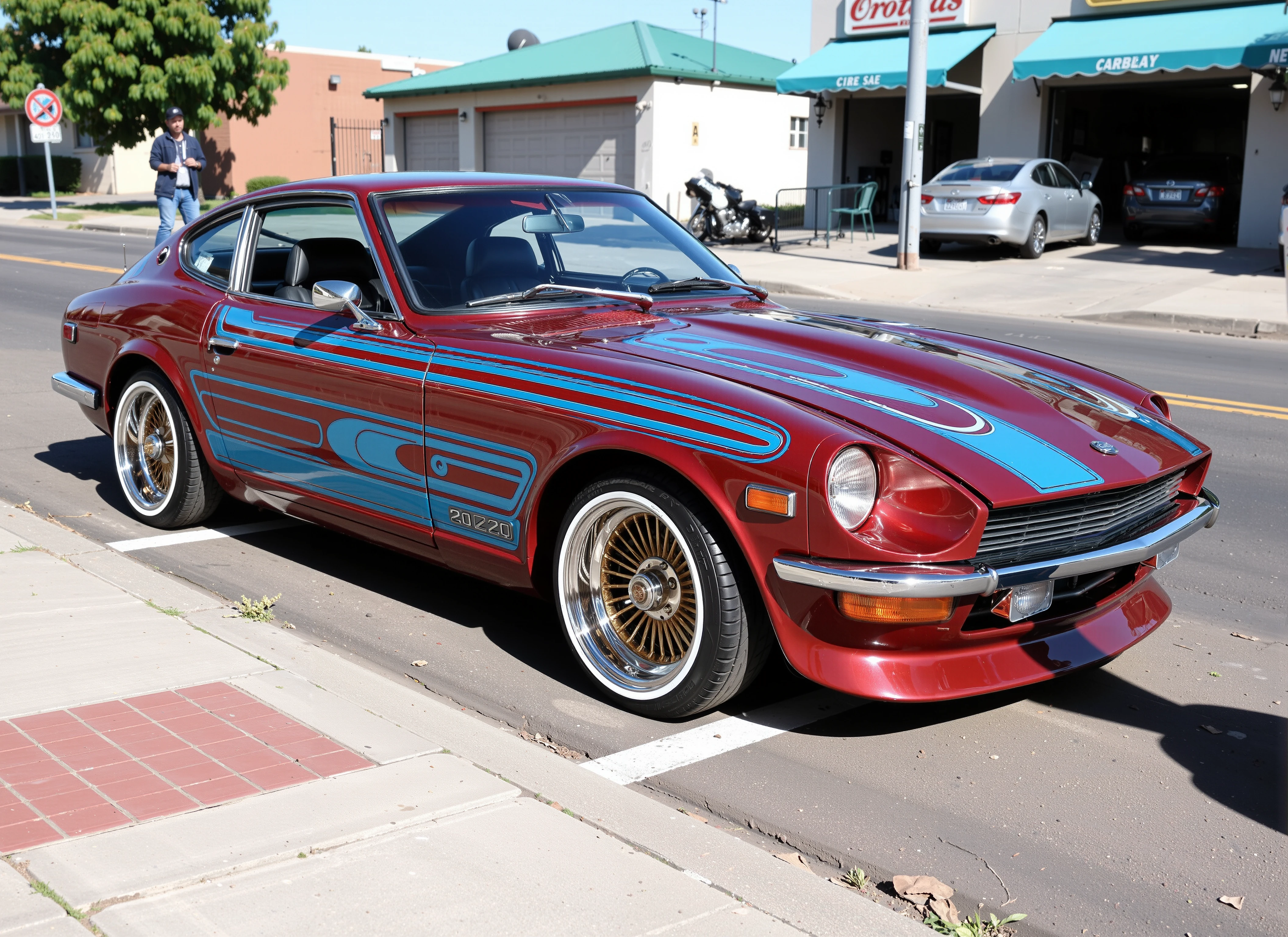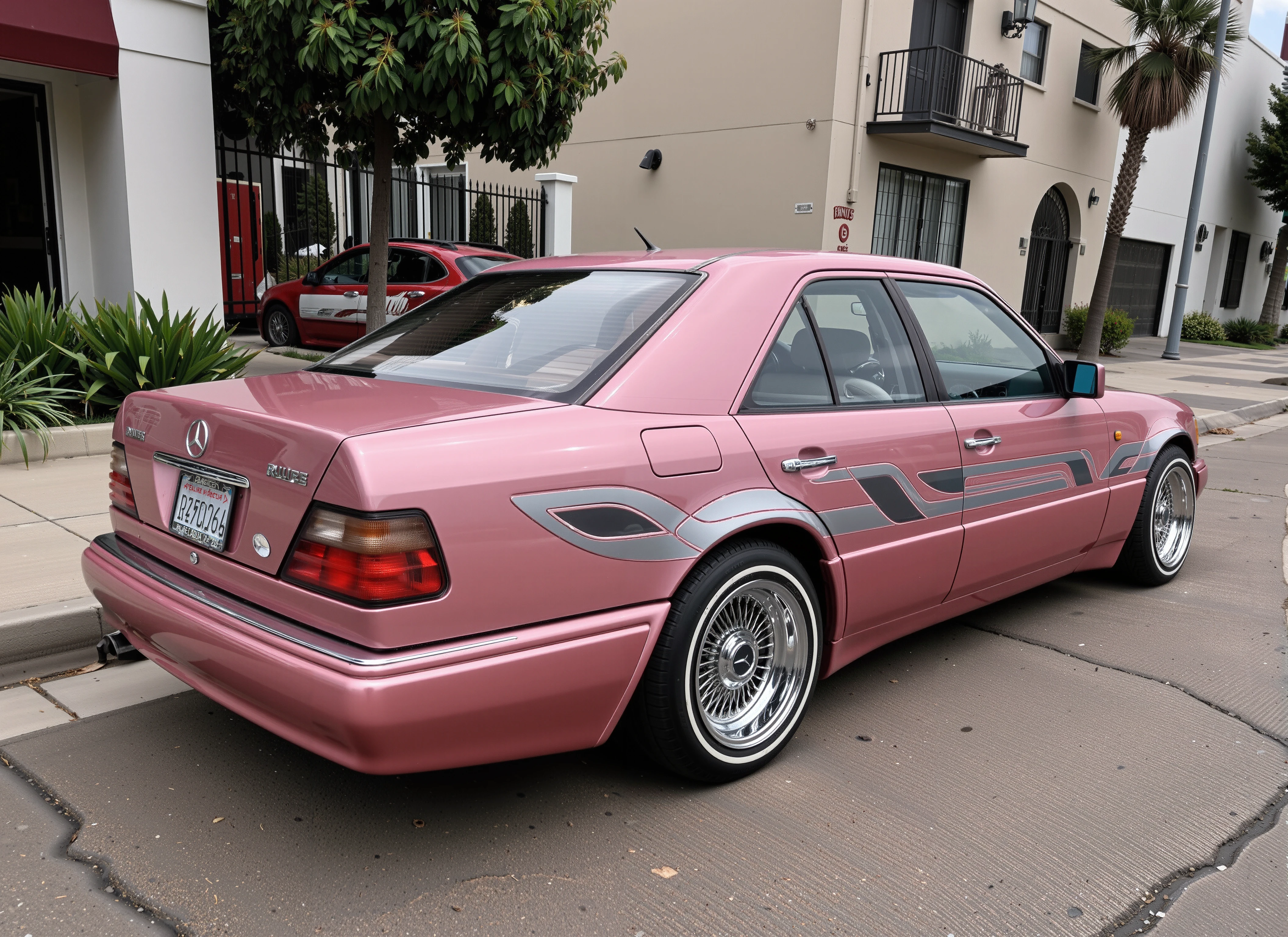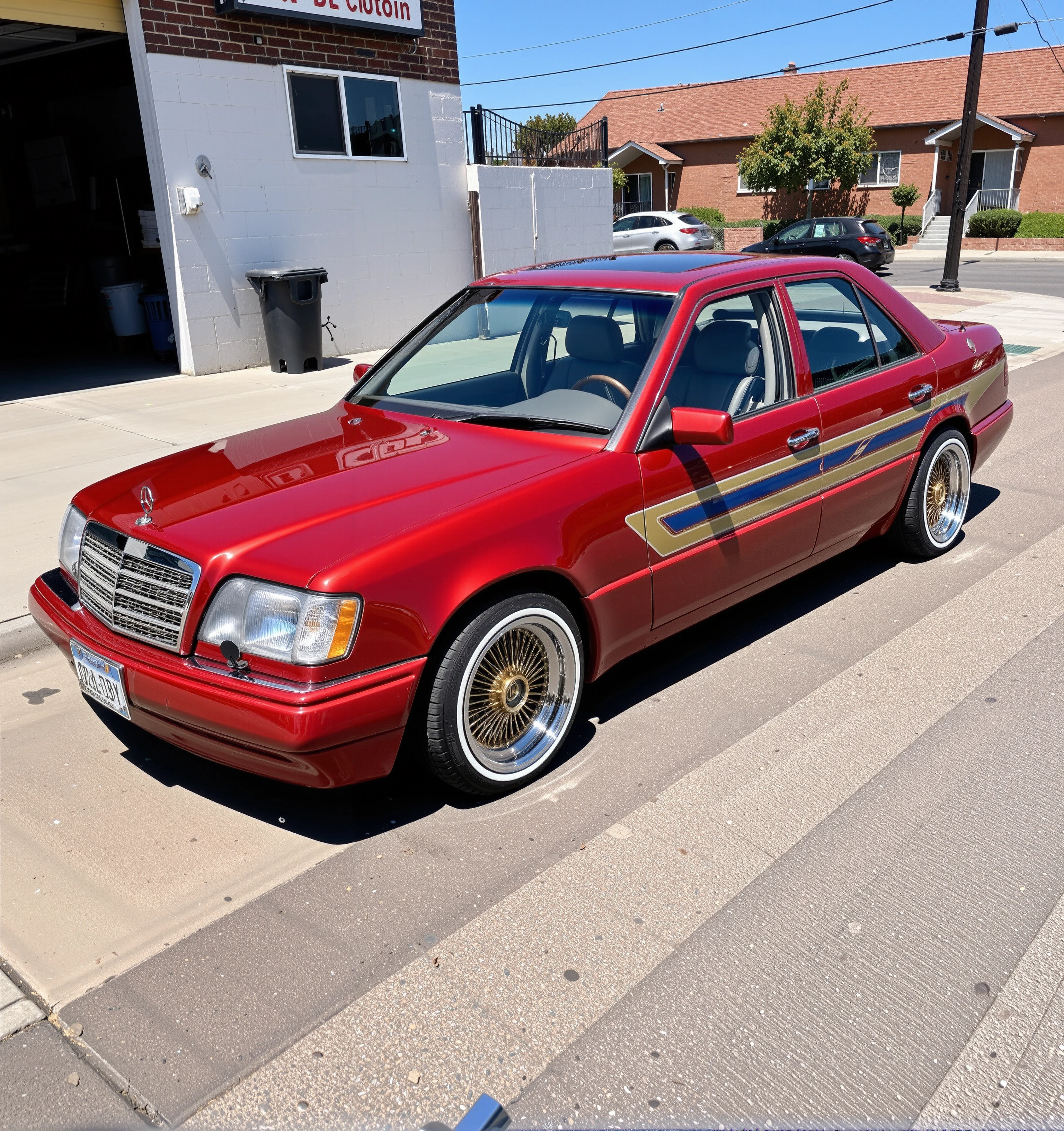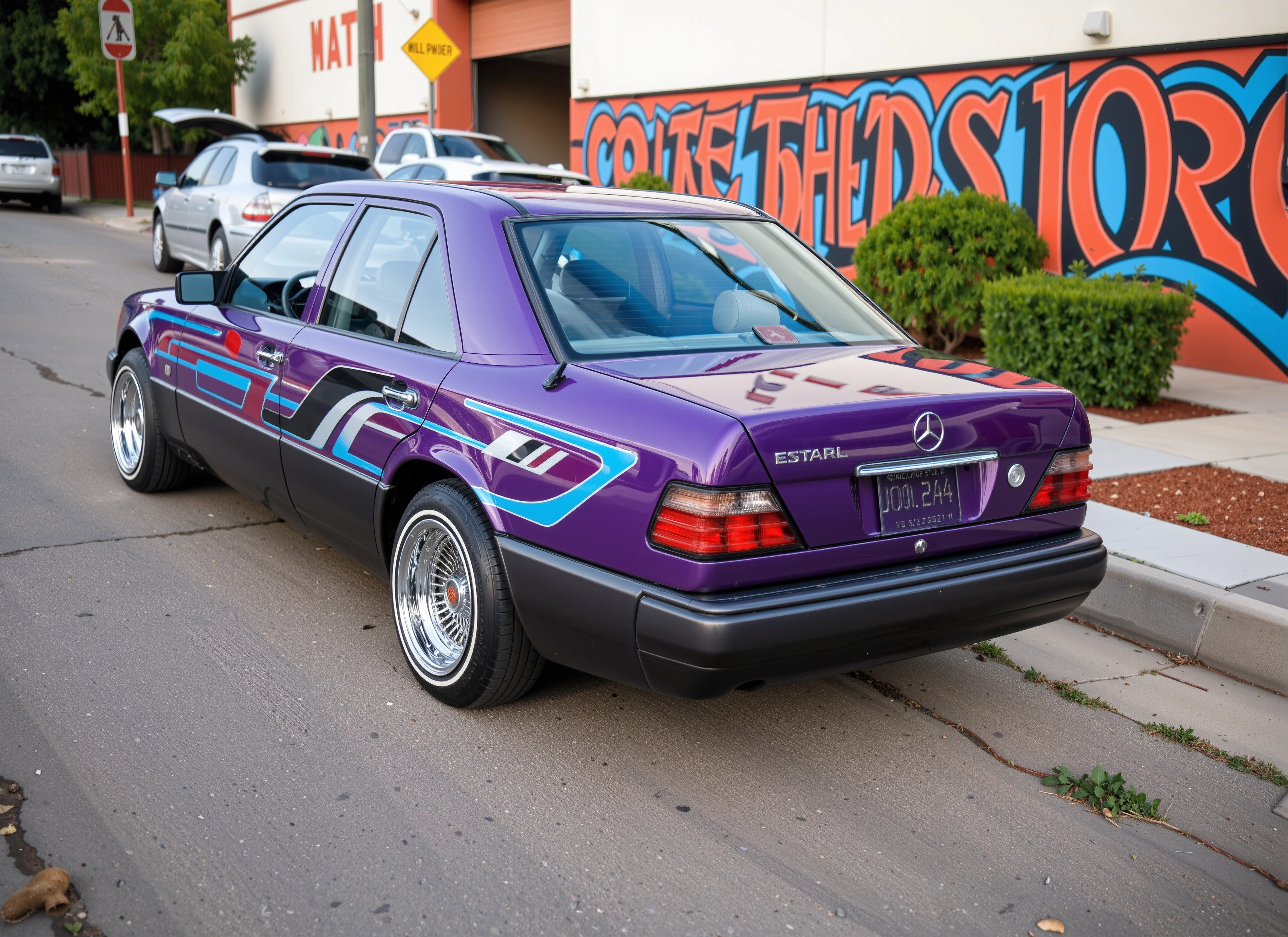 Main keyword "lowrider" is enough but you can add descriptions like "chrome wire wheels" or "chrome wire wheels", "white sidewall tires" and "metalflake paint" "metalflake paint with designs/airbrushing on it"