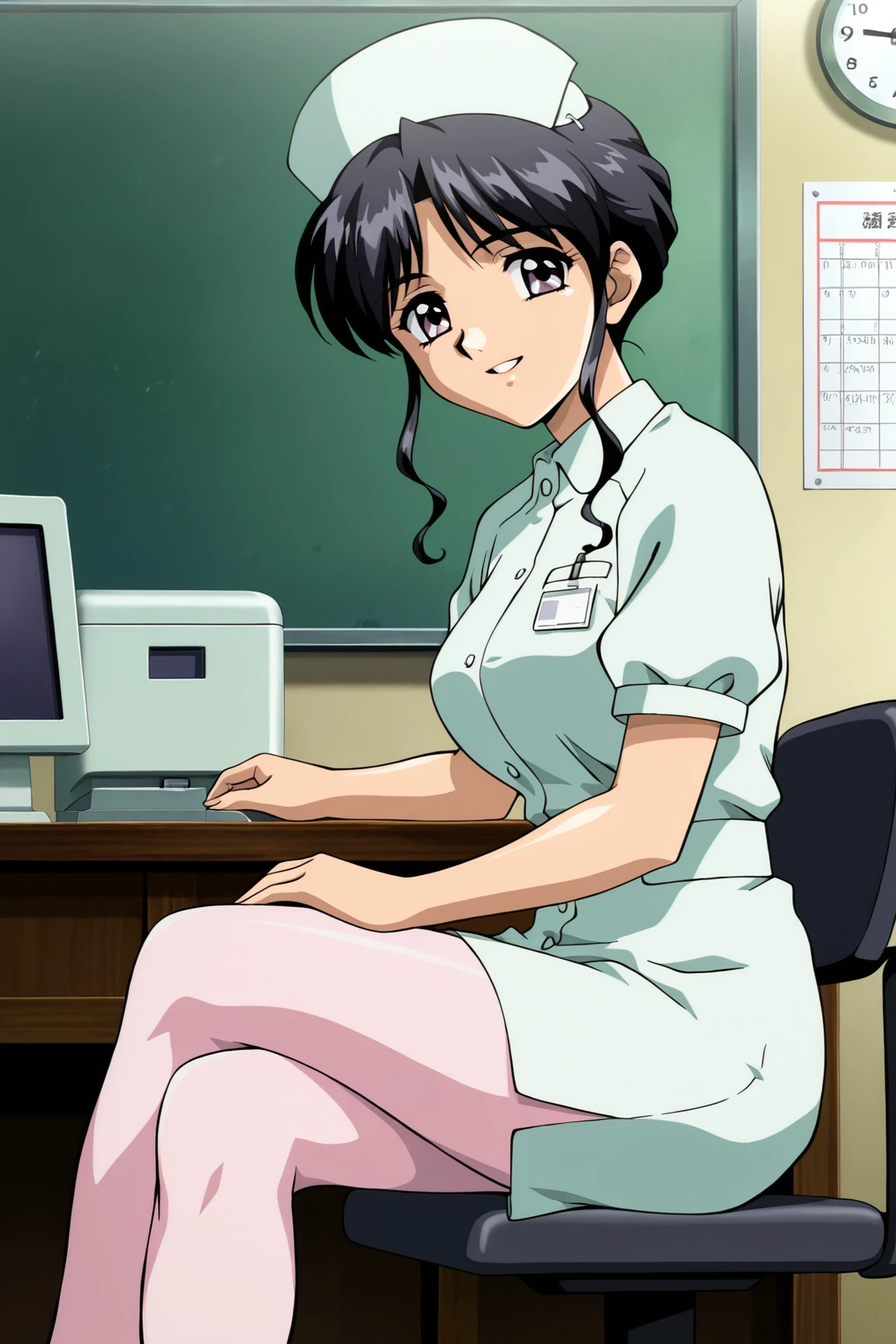 Nurse outfit : nurse,nurse cap,short sleeves,shirt dress,short dress,pink pantyhose