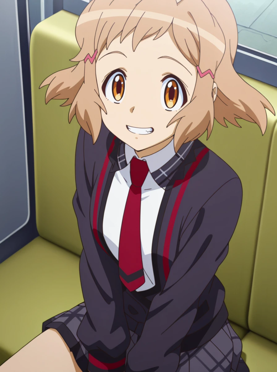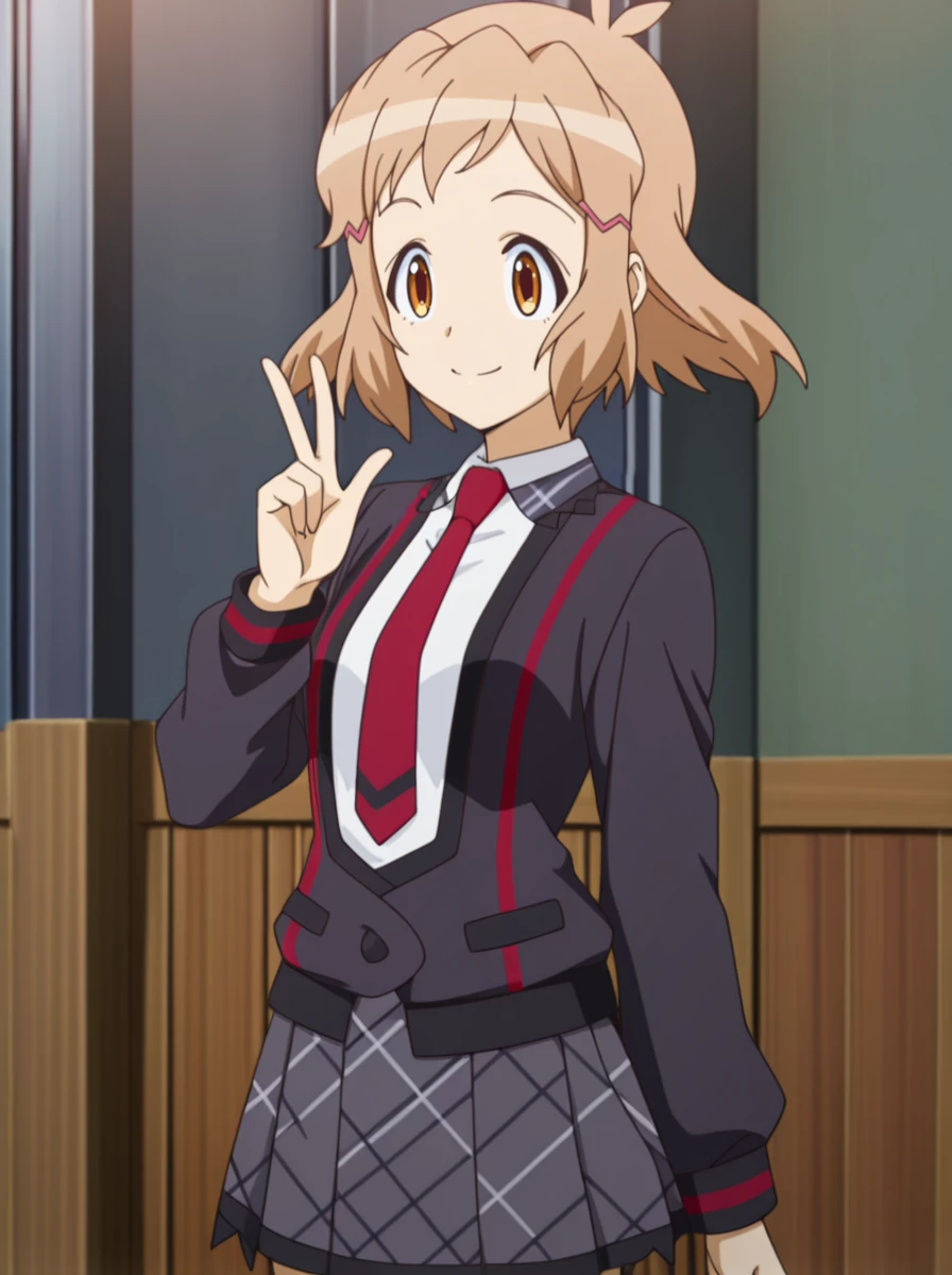 Regular Look: season1hibiki, short hair, 1girl, brown hair, solo,hairclip,
