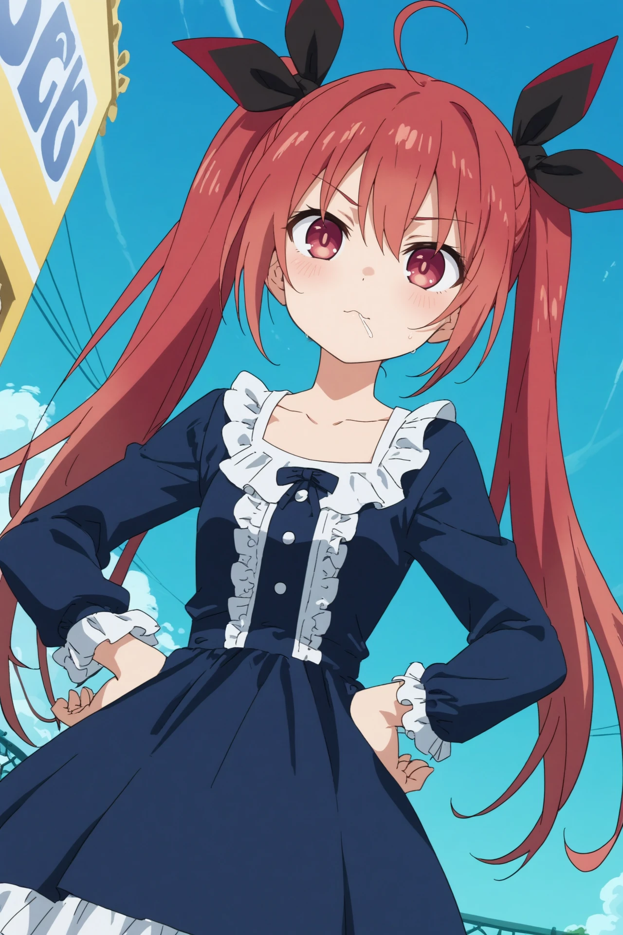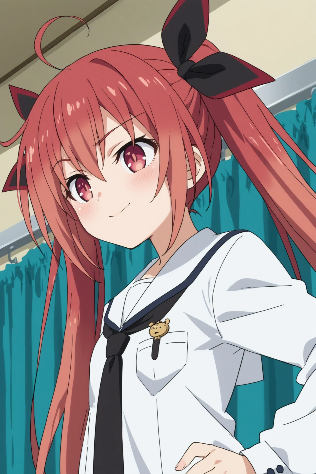 Triggers : 1girl,solo,kotori itsuka,long hair,school uniform,twintails,smile,hair ribbon,ahoge,black necktie