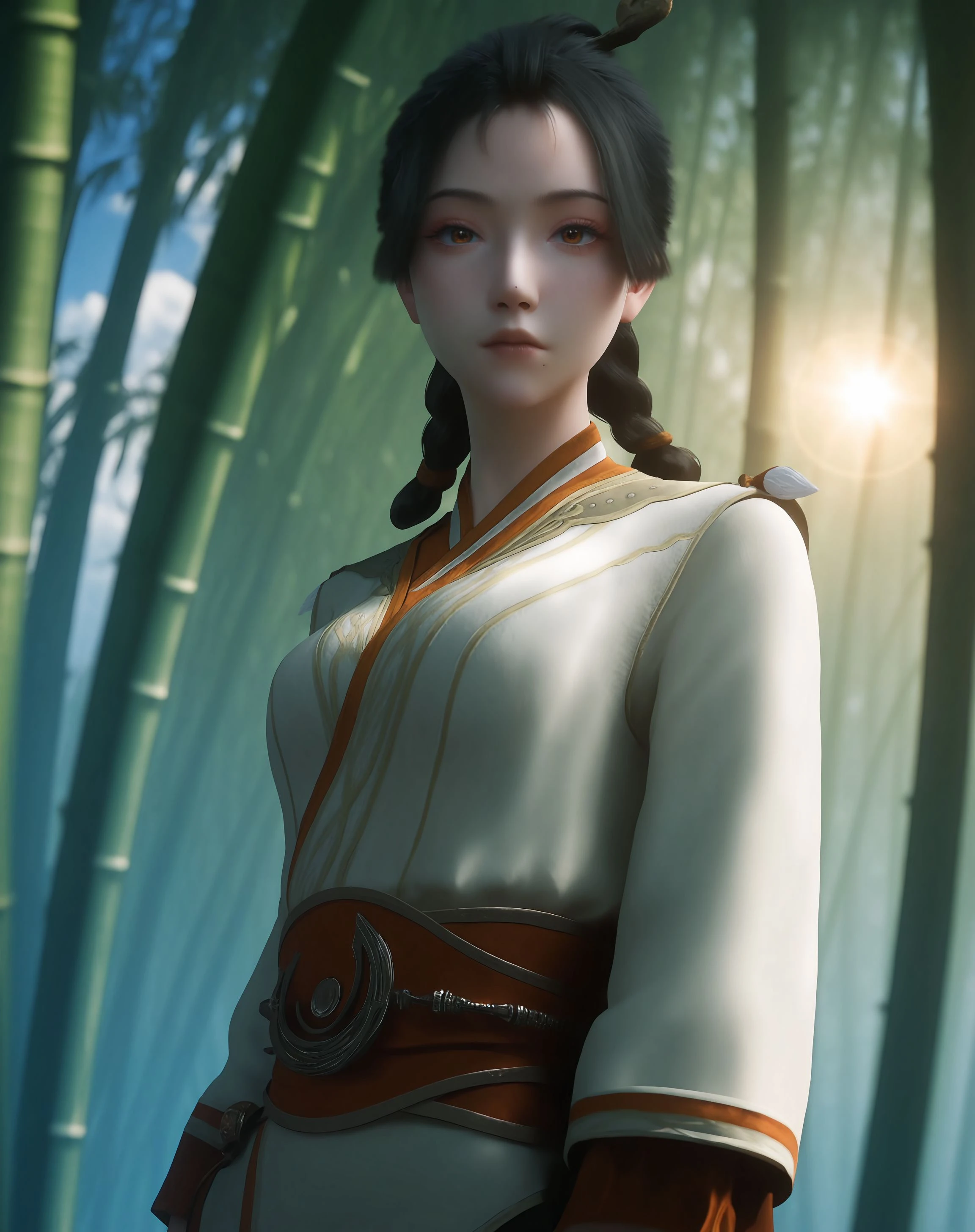 1girl,solo,black hair,hair ornament,chinese clothes,sash,pants,braid,