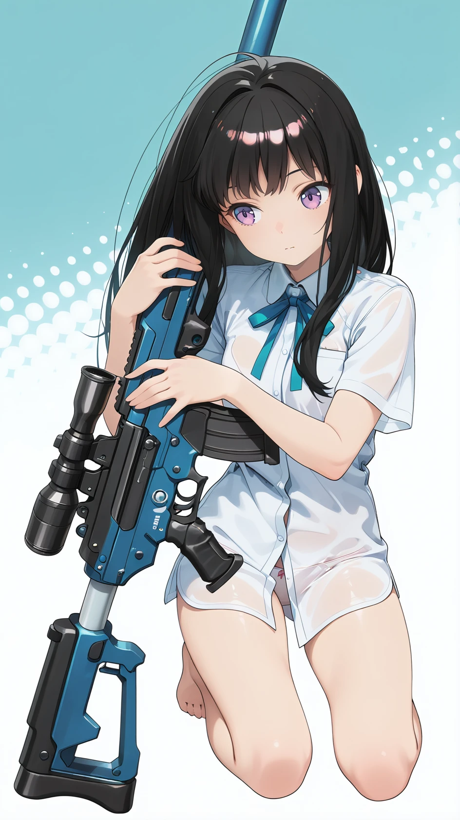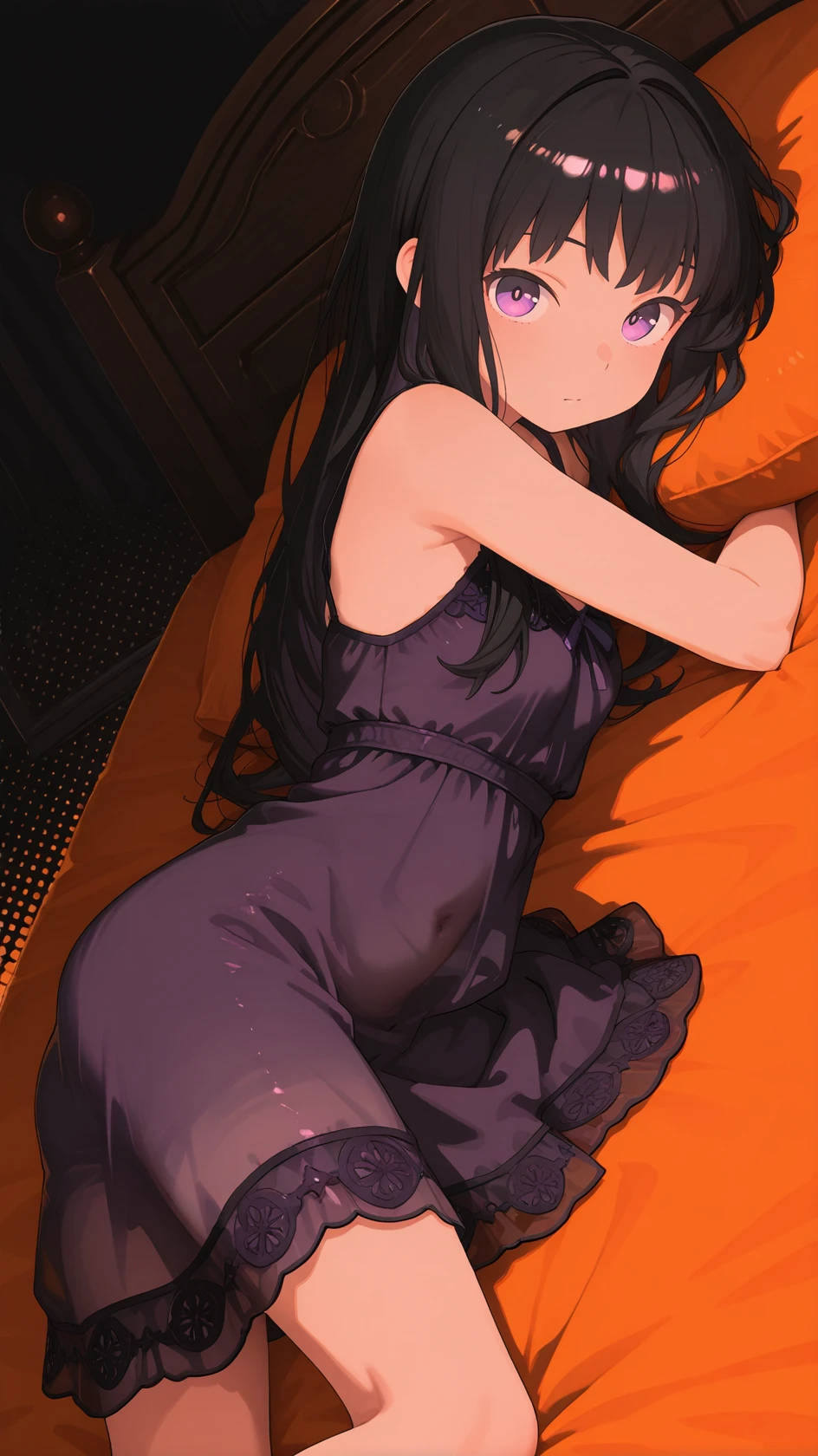 Example prompt : long hair, bangs, purple eyes, black hair,