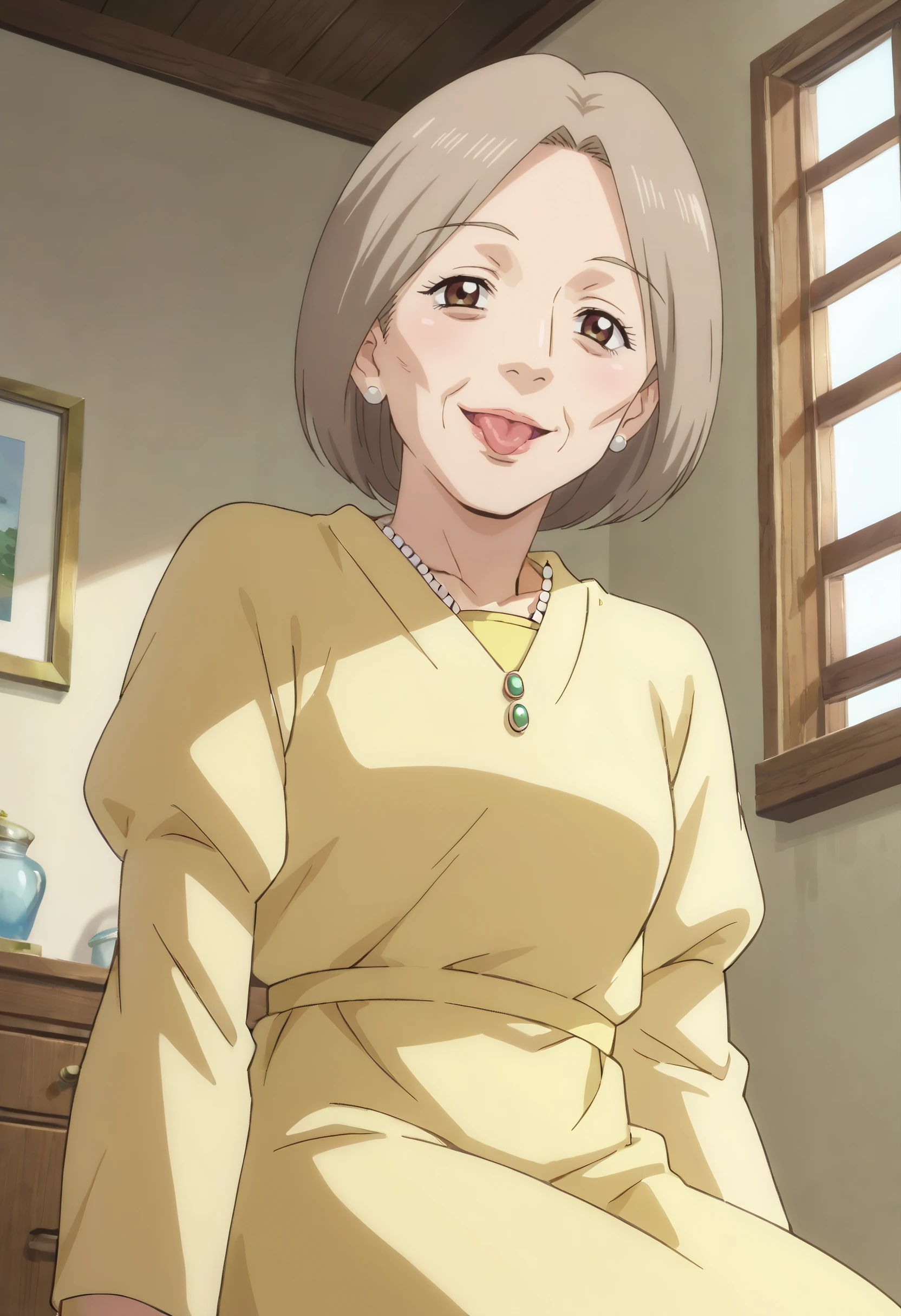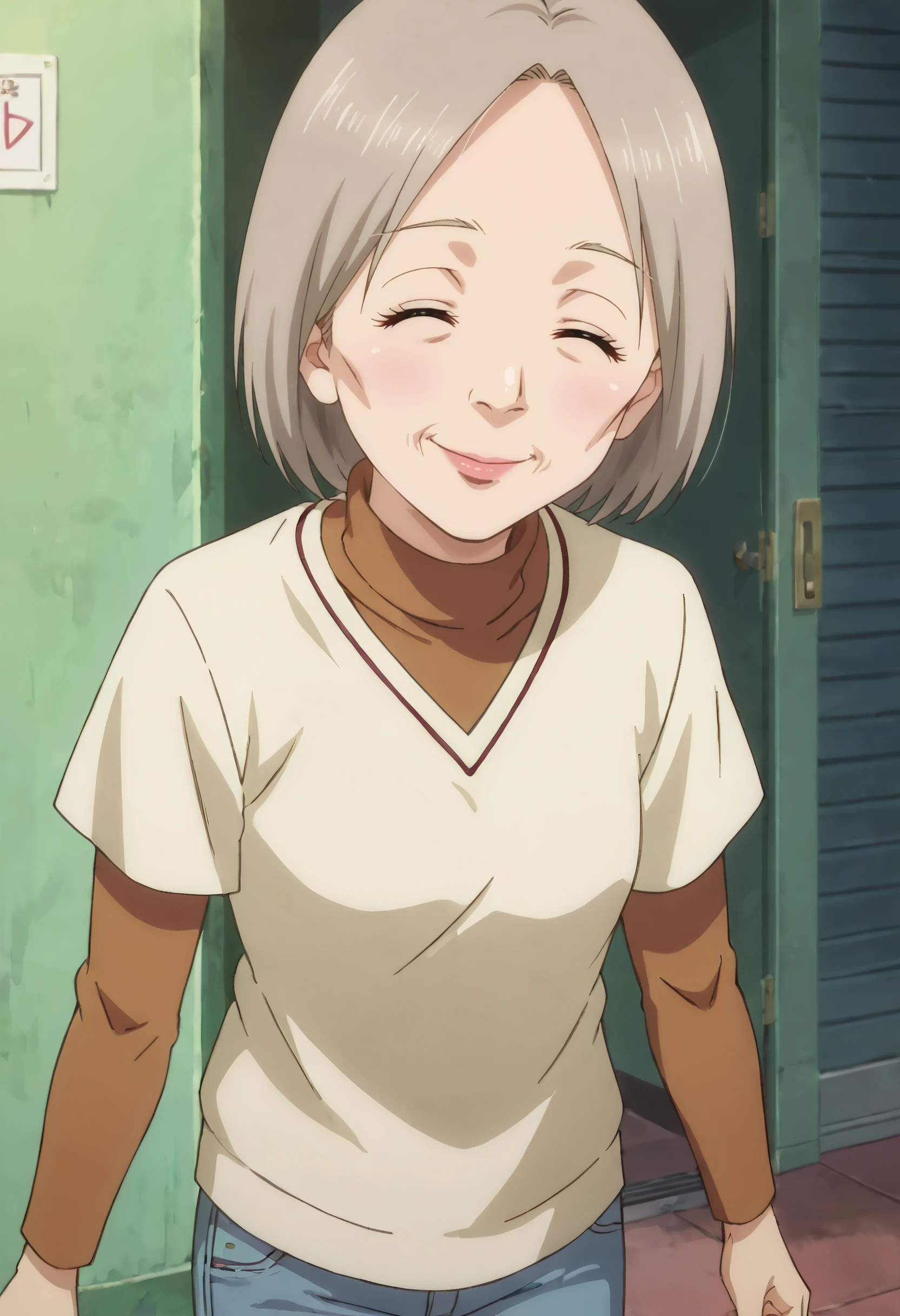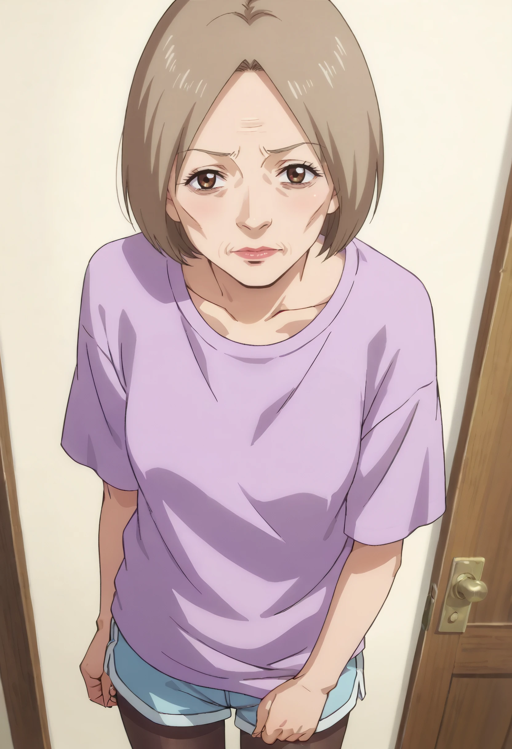 MHHKyoichiMother, short hair, brown eyes, brown hair, old, old woman,