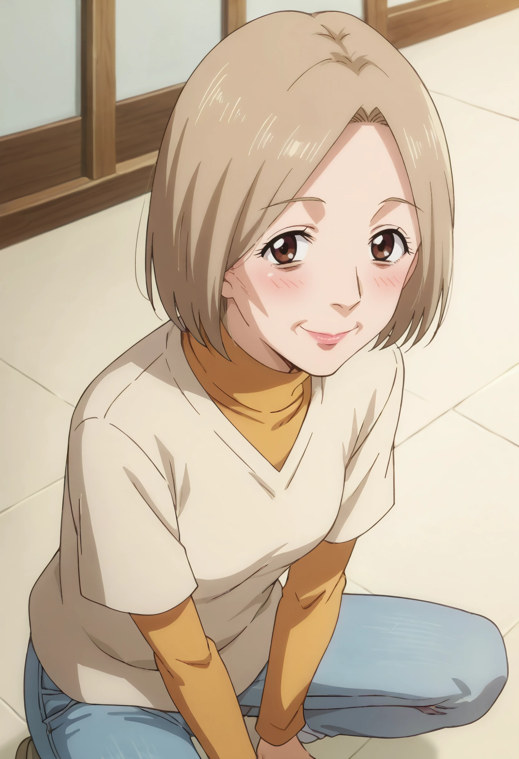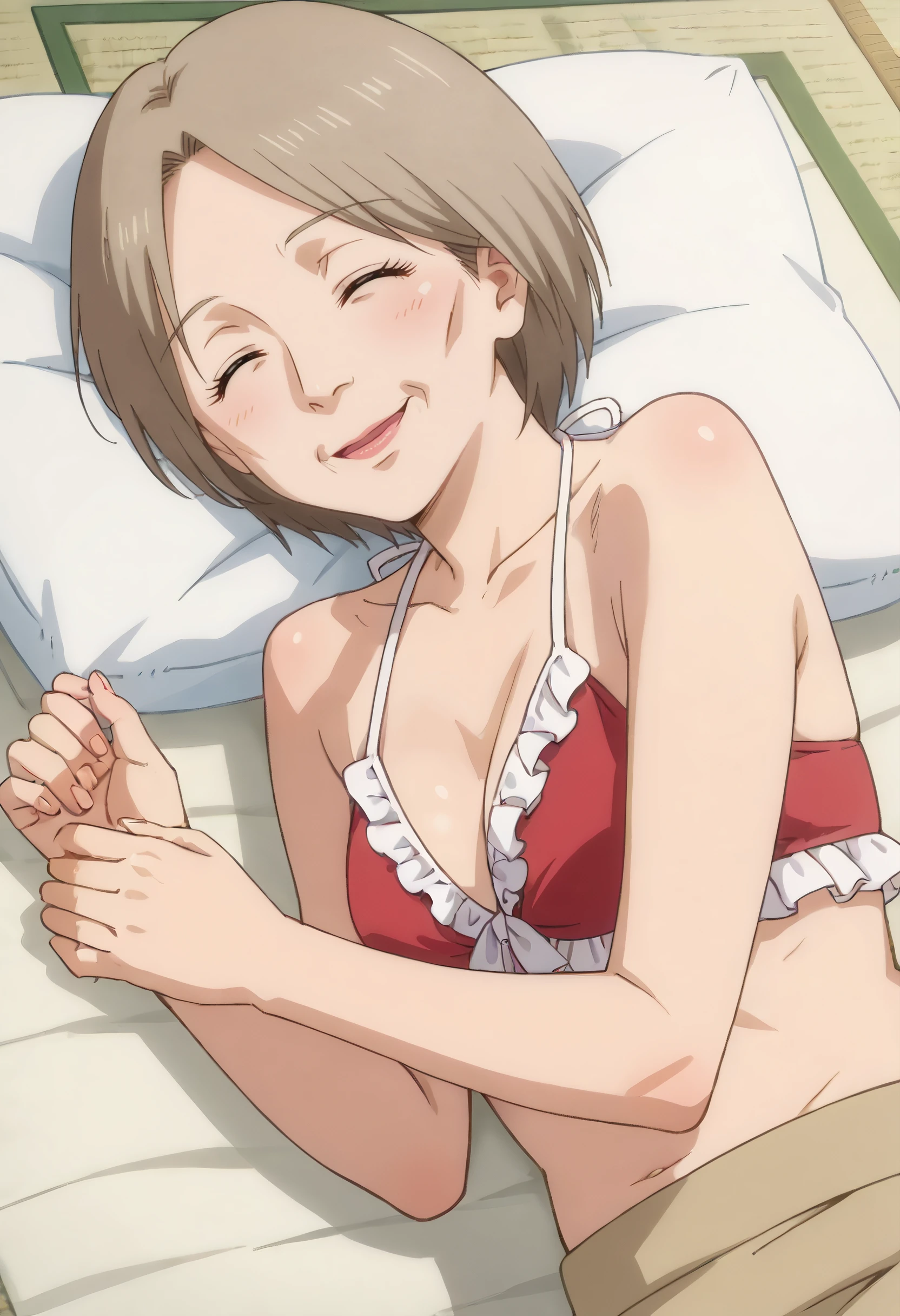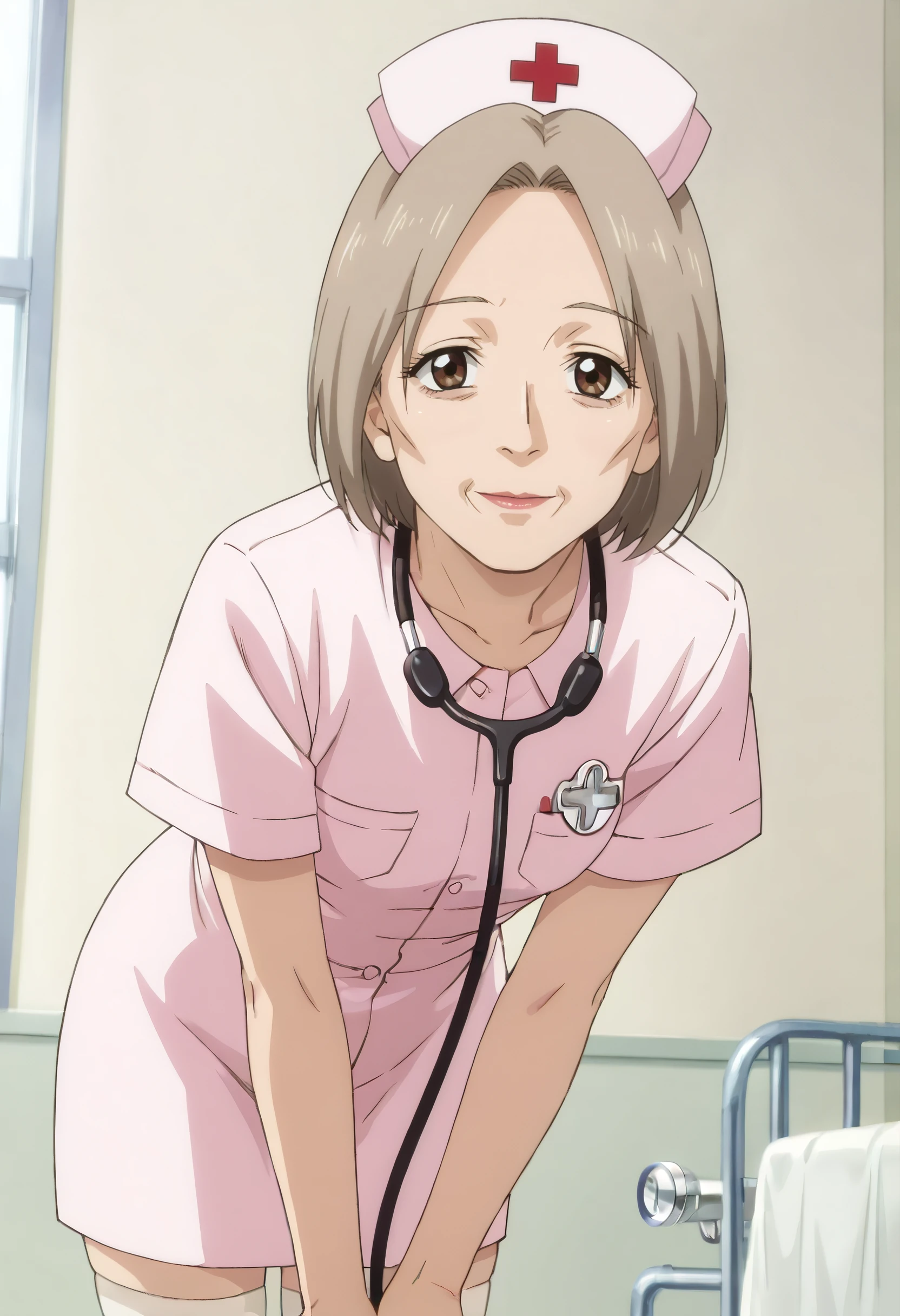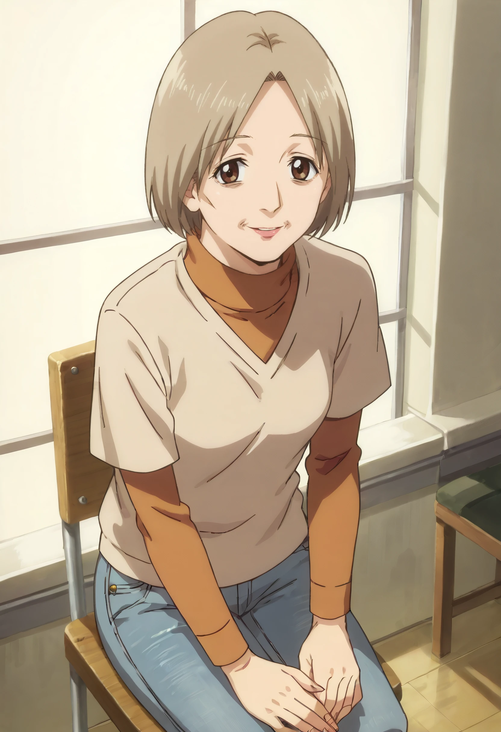 MHHKyoichiMother, short hair, brown eyes, brown hair, old, old woman,