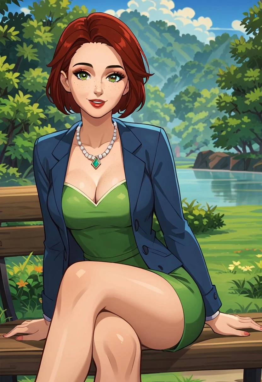 1girl, freckles, short hair, red hair, green eyes, brown eyes,