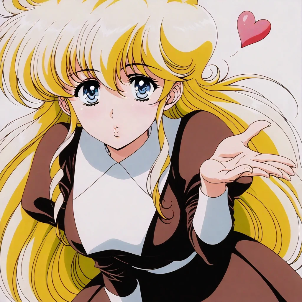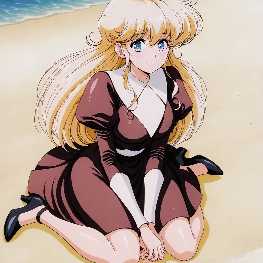 ellyse aldomordish \(plastic little\), blonde hair, long hair, bangs, sidelocks, blue eyes, school uniform, skirt, heels, , 1girl, solo