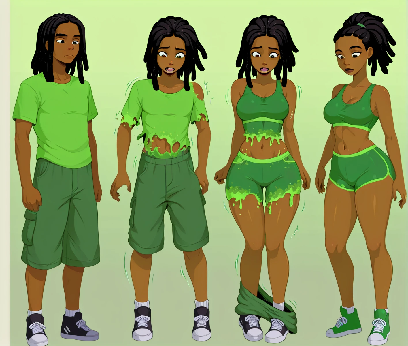 This lora is also trained on some of the sequences, so if you wish to create these, use the prompt "transformation, transformation sequence, linear sequence," with the standard prompt