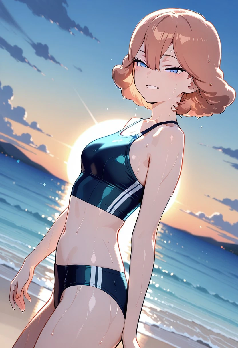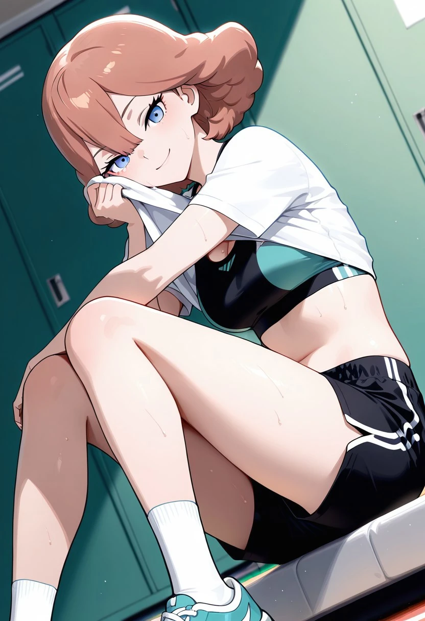 SophiePulone, 1girl, solo, orange hair,short hair,bangs, hair between eyes, blue eyes,