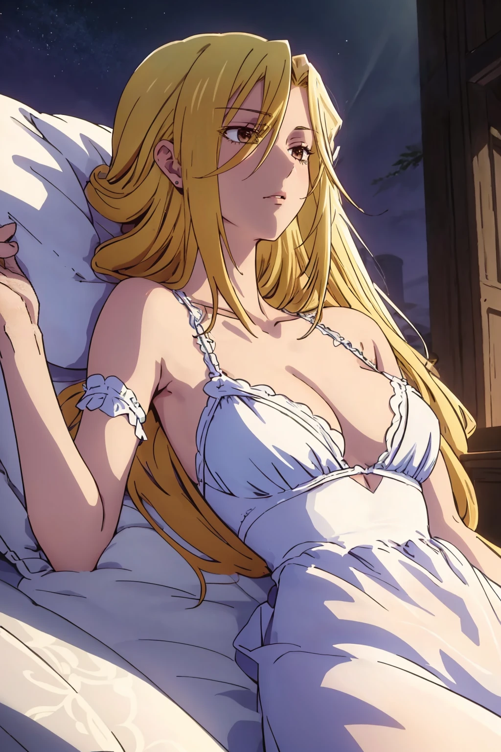Helping prompts: "blonde hair, long hair, hair over one eye", tho, long hair is seldom needed.
