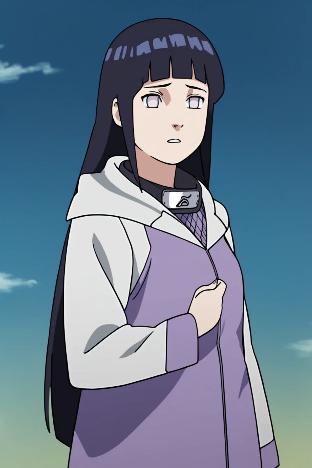 Naruto Shippuden: hinata_shi,1girl, long hair, long sleeves,hood,black hair, forehead protector