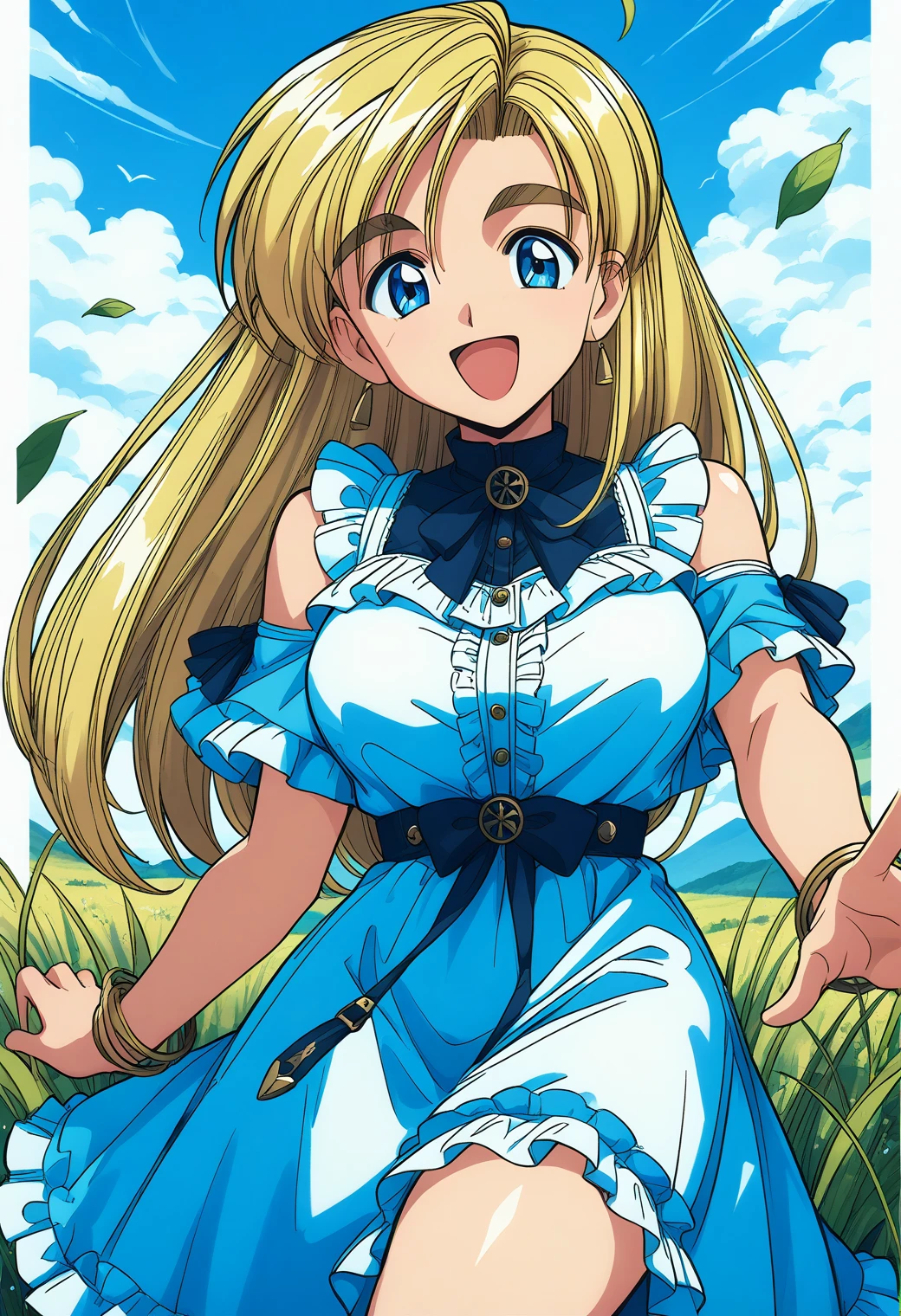 Trigger word: aitoma_thirty, blue eyes, blonde hair, long hair, thick eyebrows