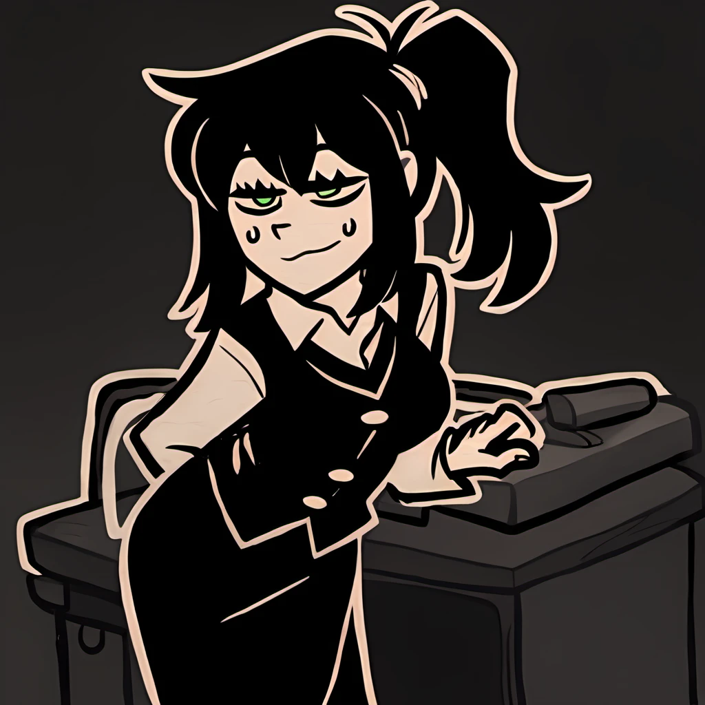 mrs. graves, black hair, medium hair, green eyes, mature female, bags under eyes, office lady