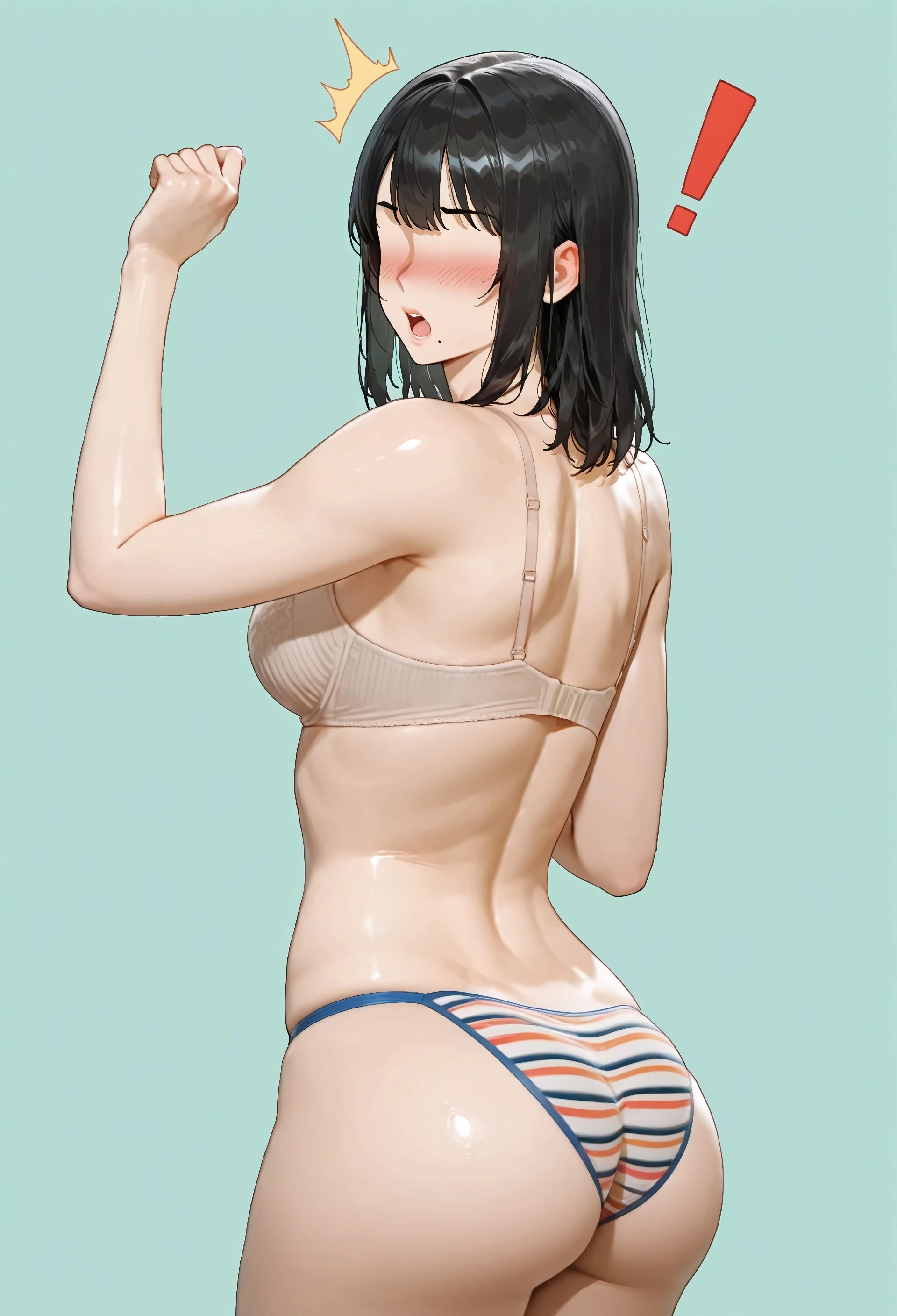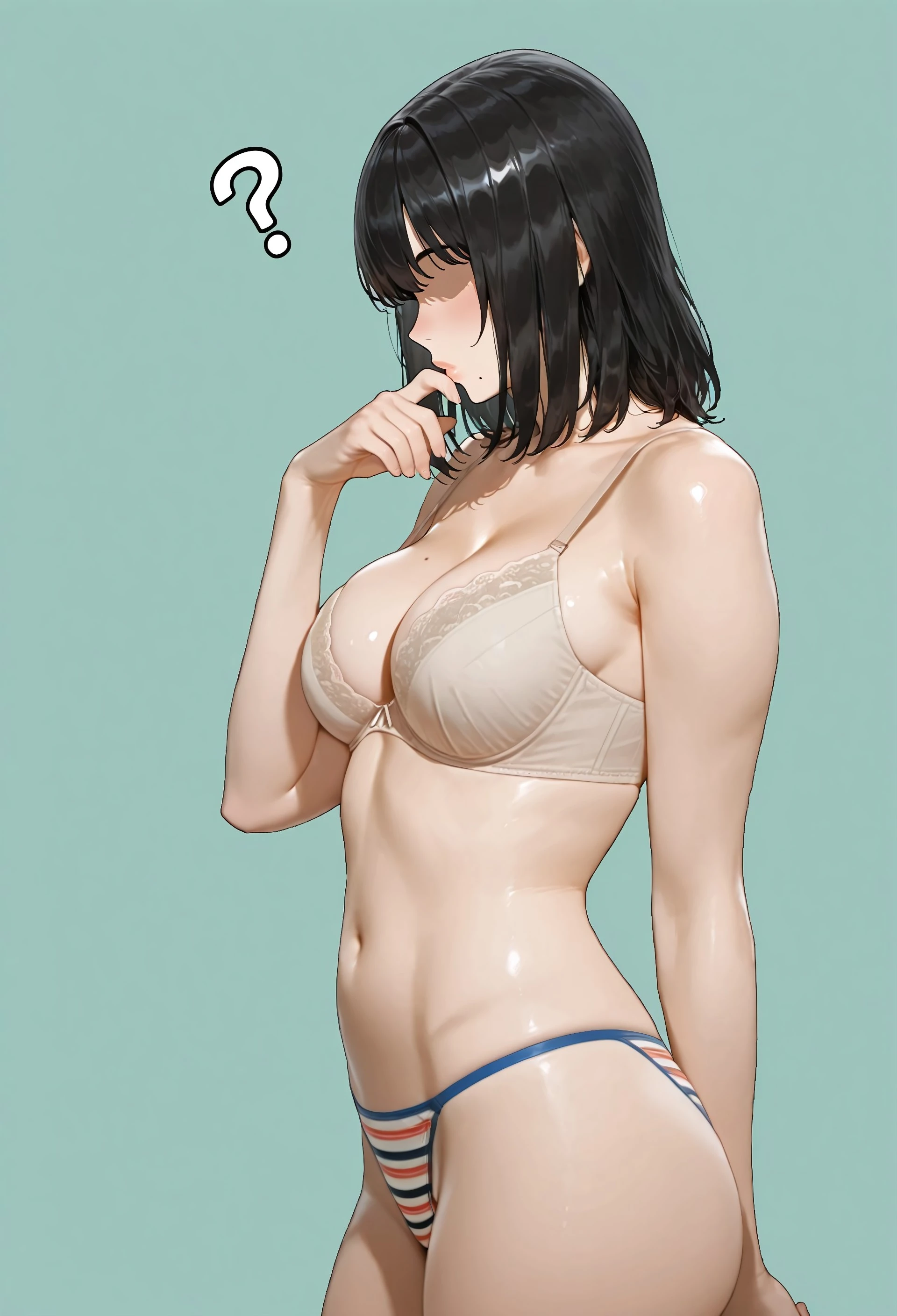 nud3_str1ng_l1n, beige bra, lace-trimmed bra, multicolored panties, striped panties, string pantiesV 1.0