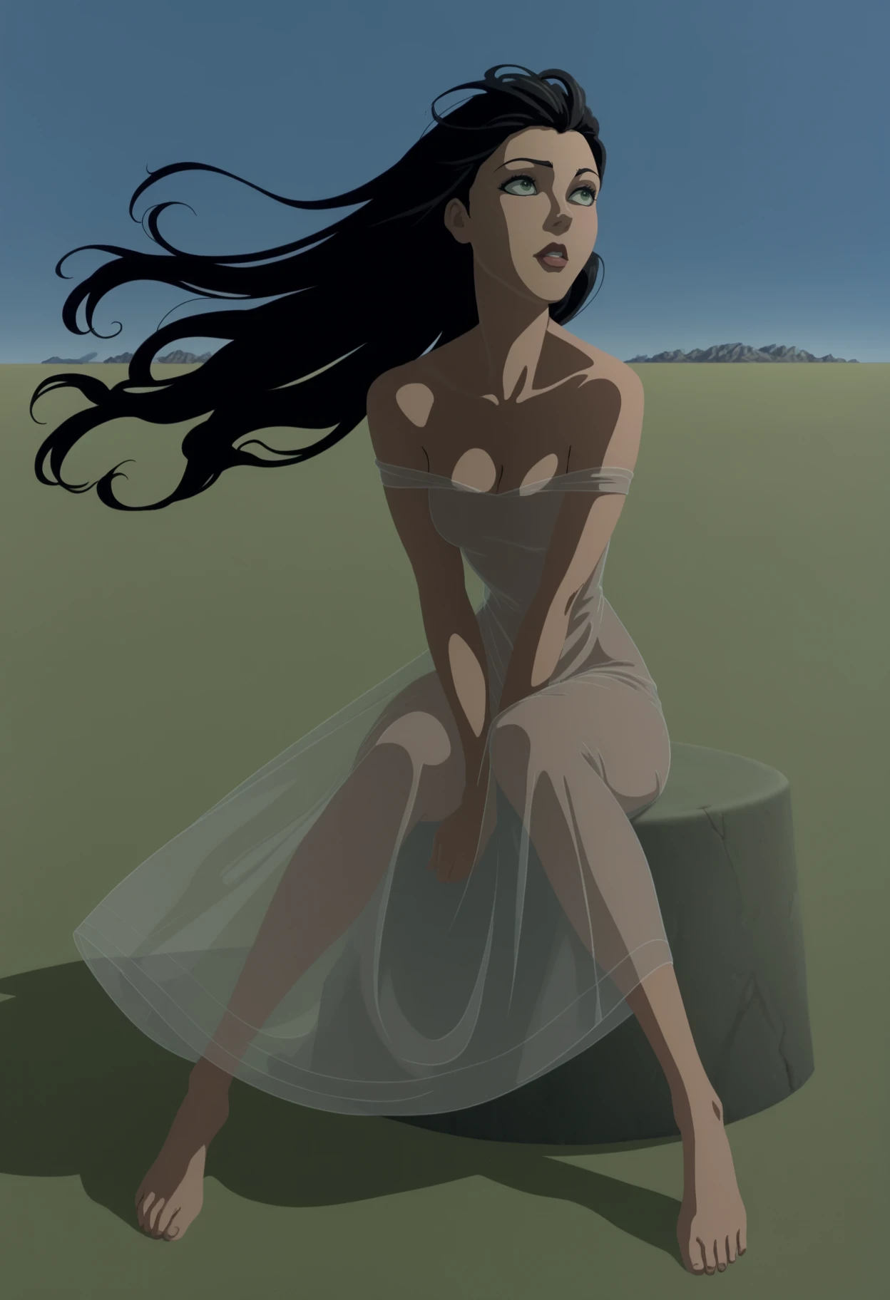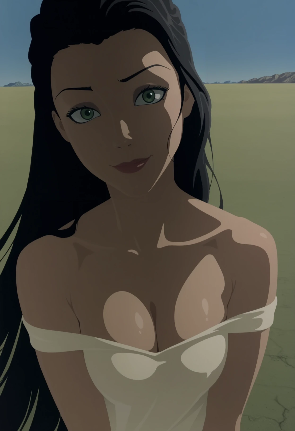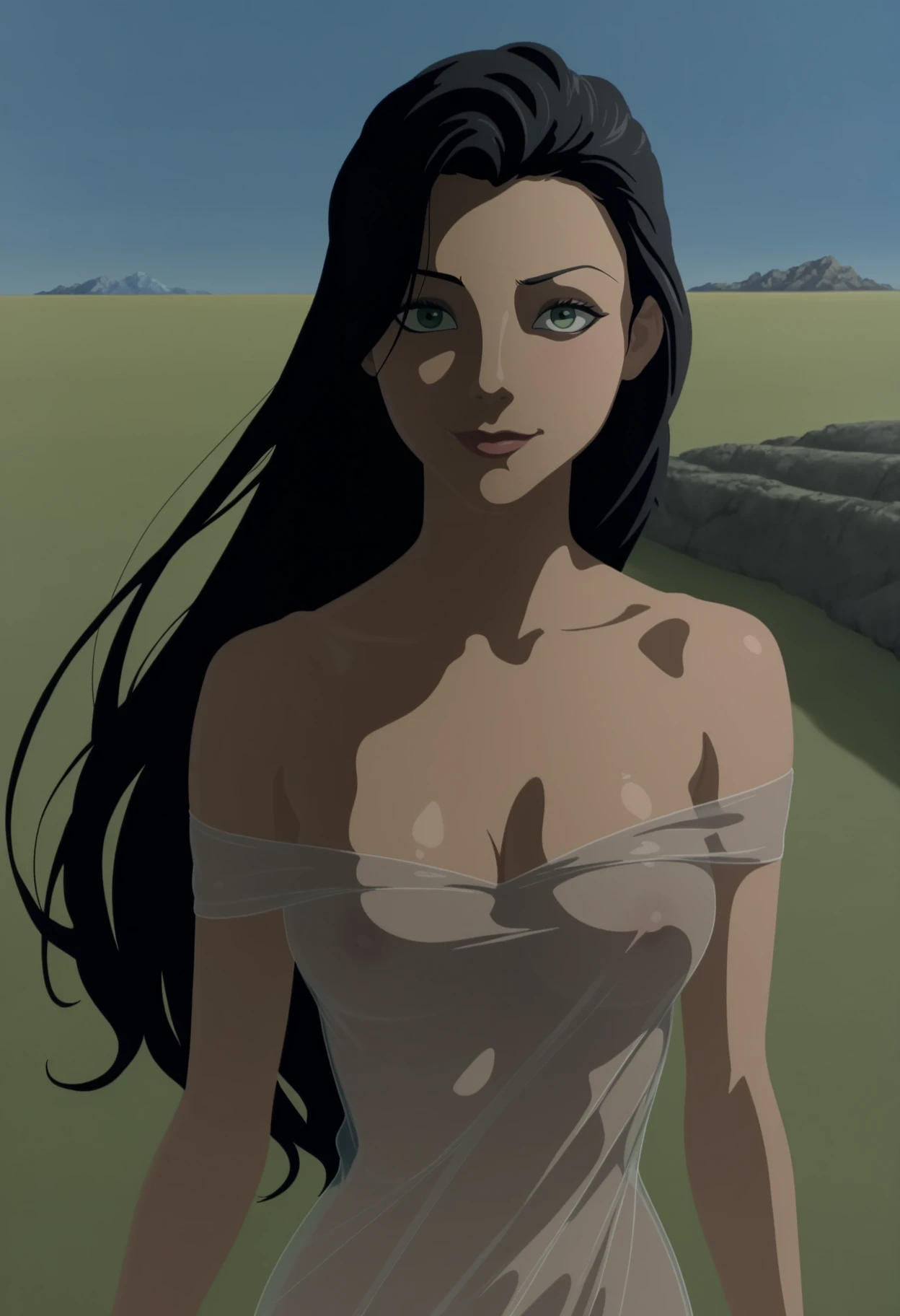 1girl,solo,anime coloring,mm,black hair,long hair,green eyes,