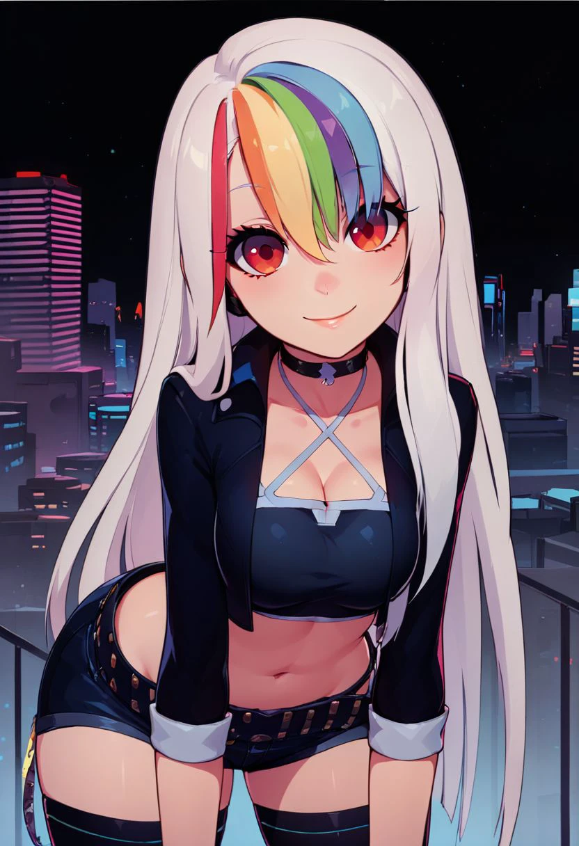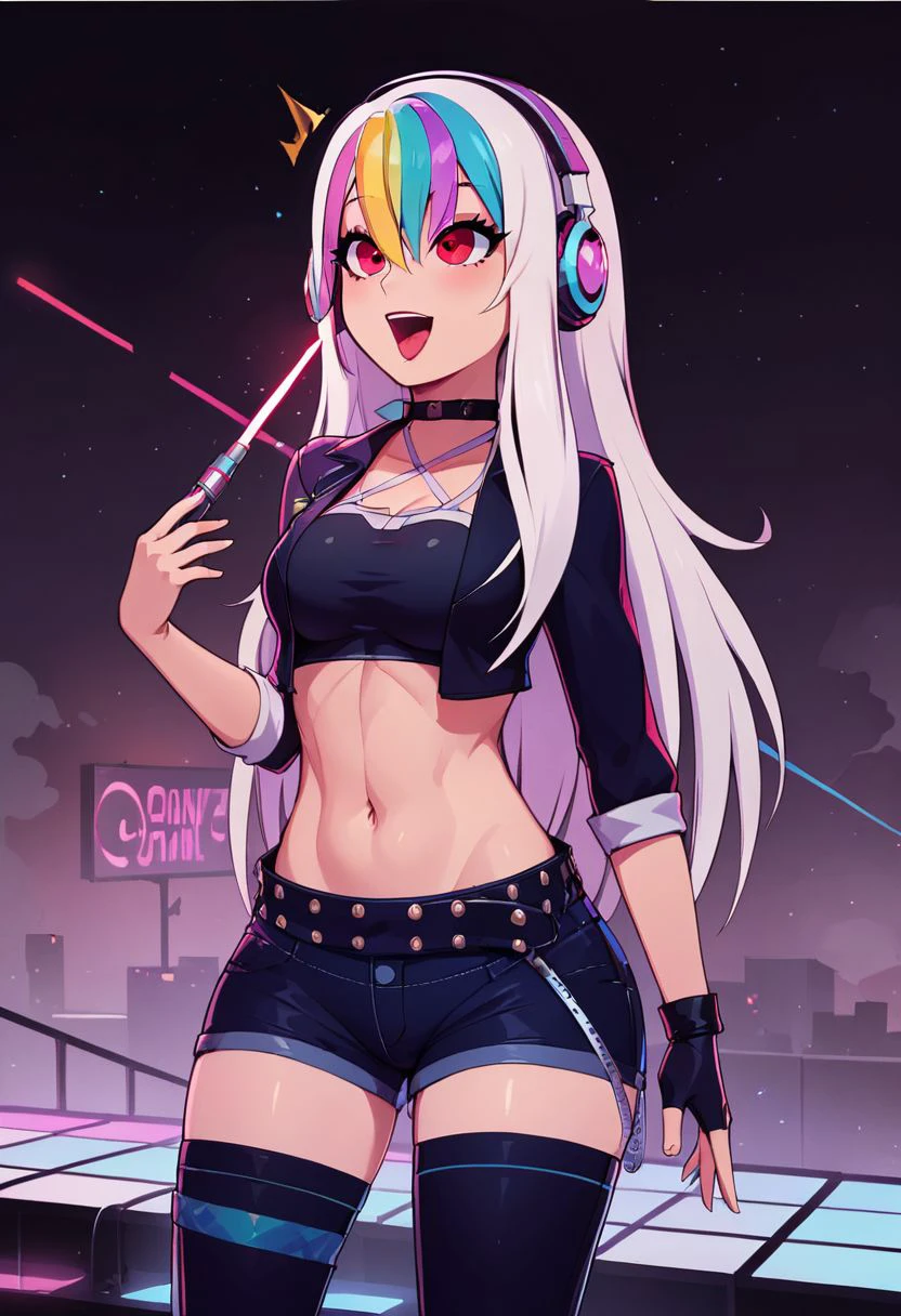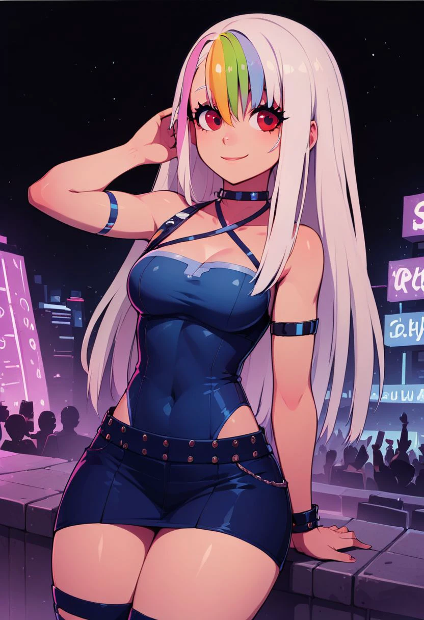 In Rainbow's glow, Roxy is neon light,