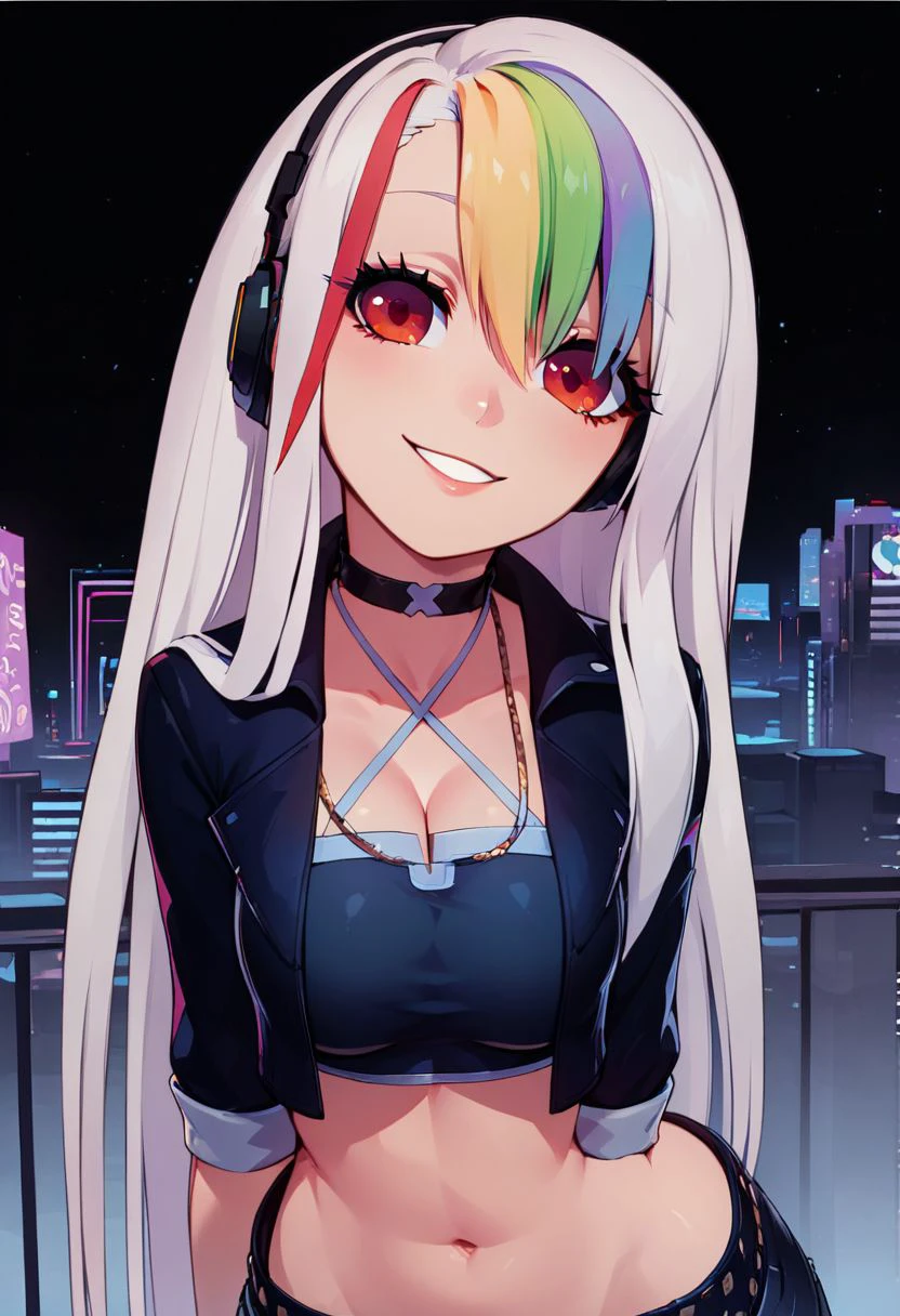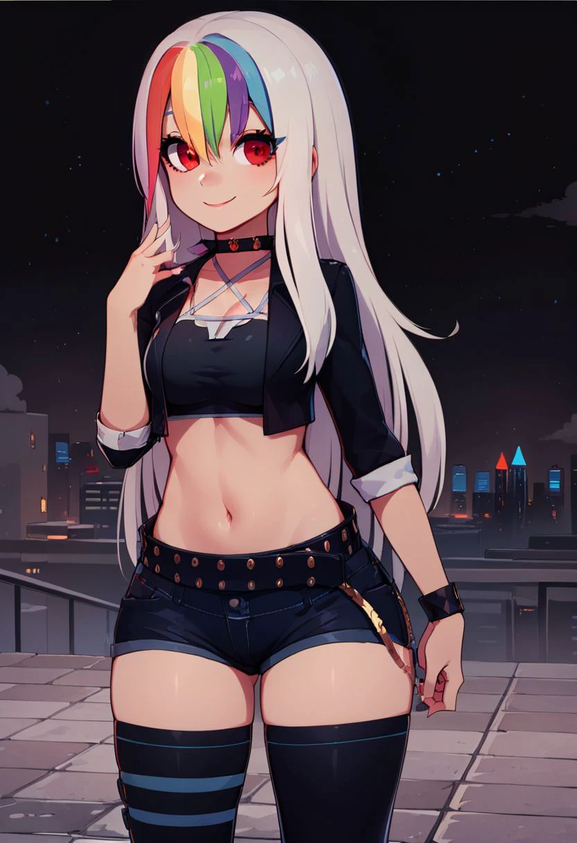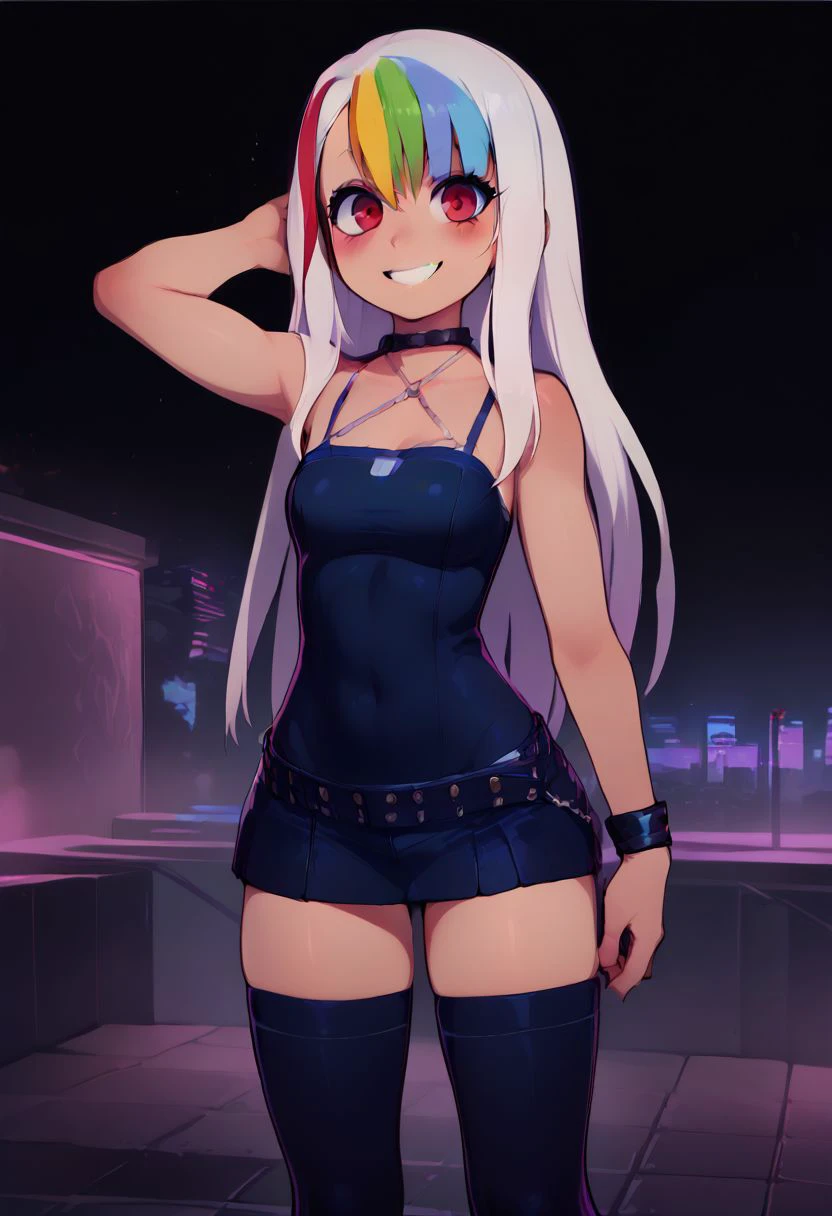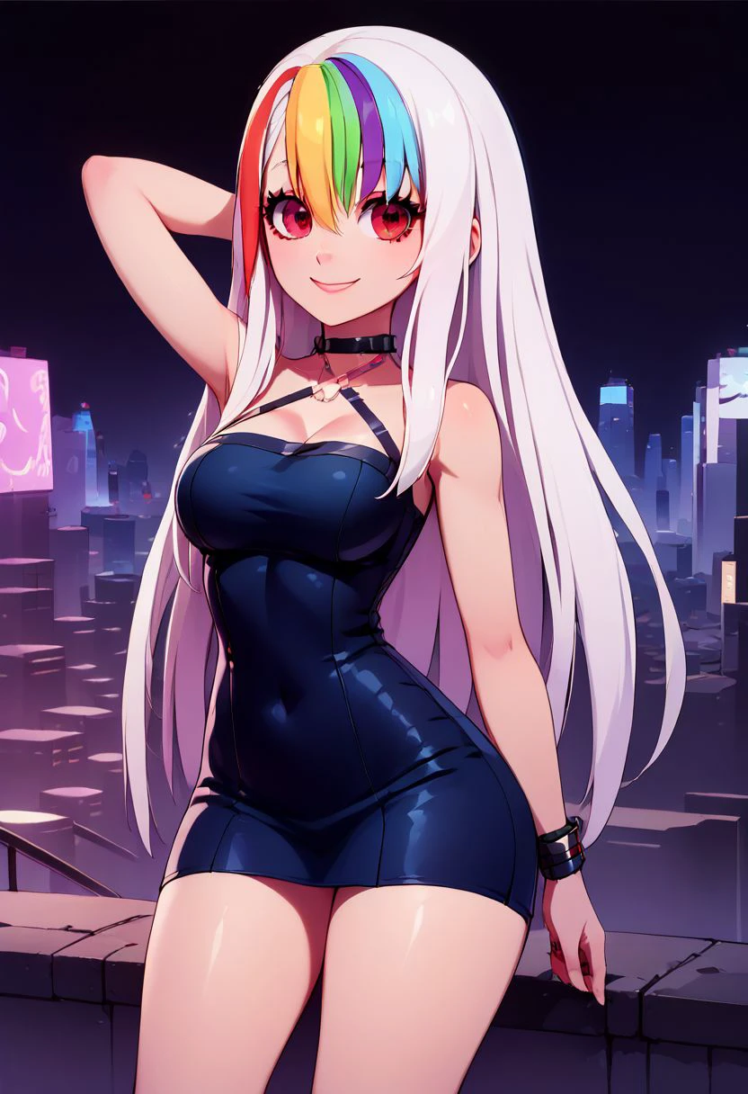 In Rainbow's glow, Roxy is neon light,