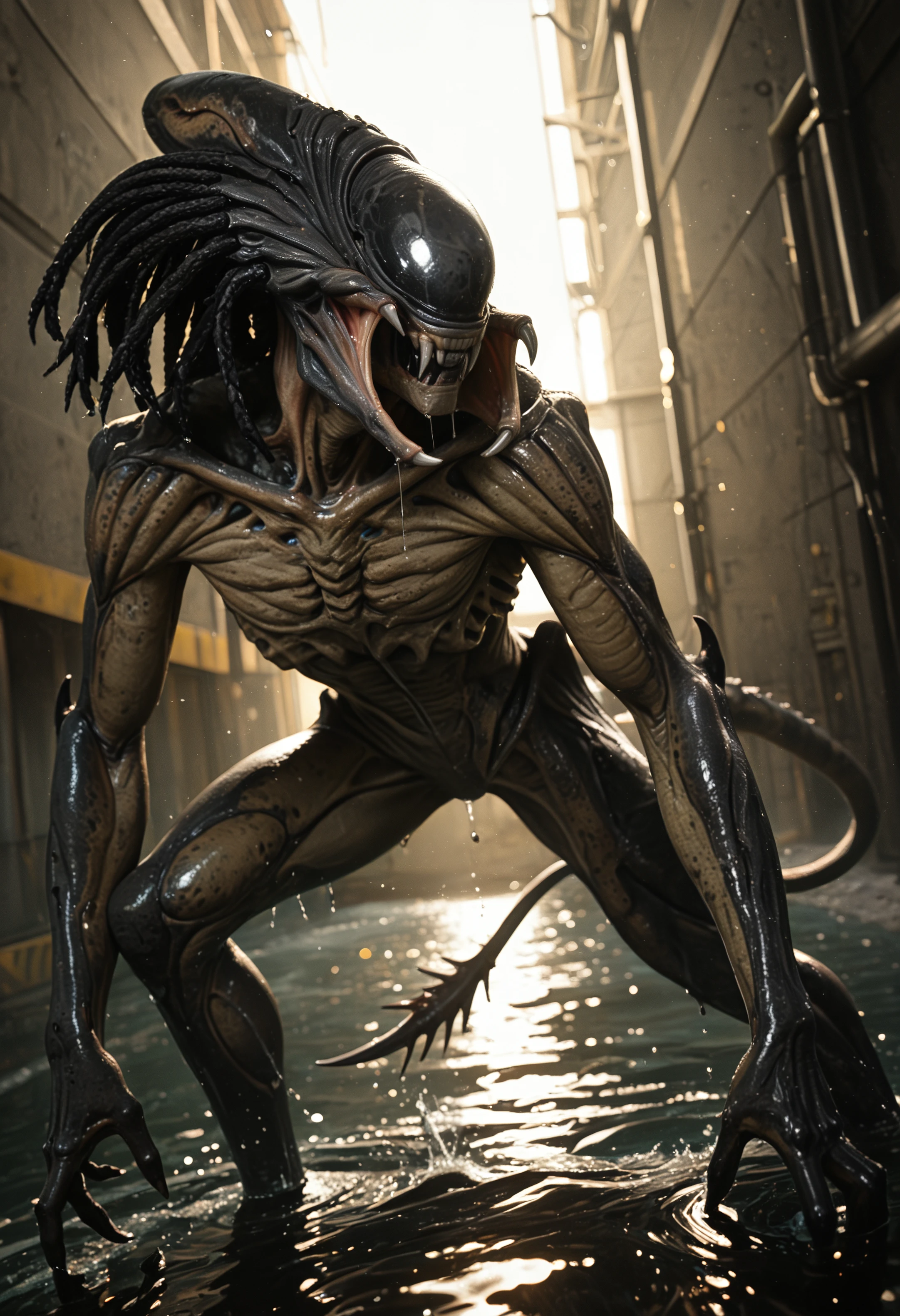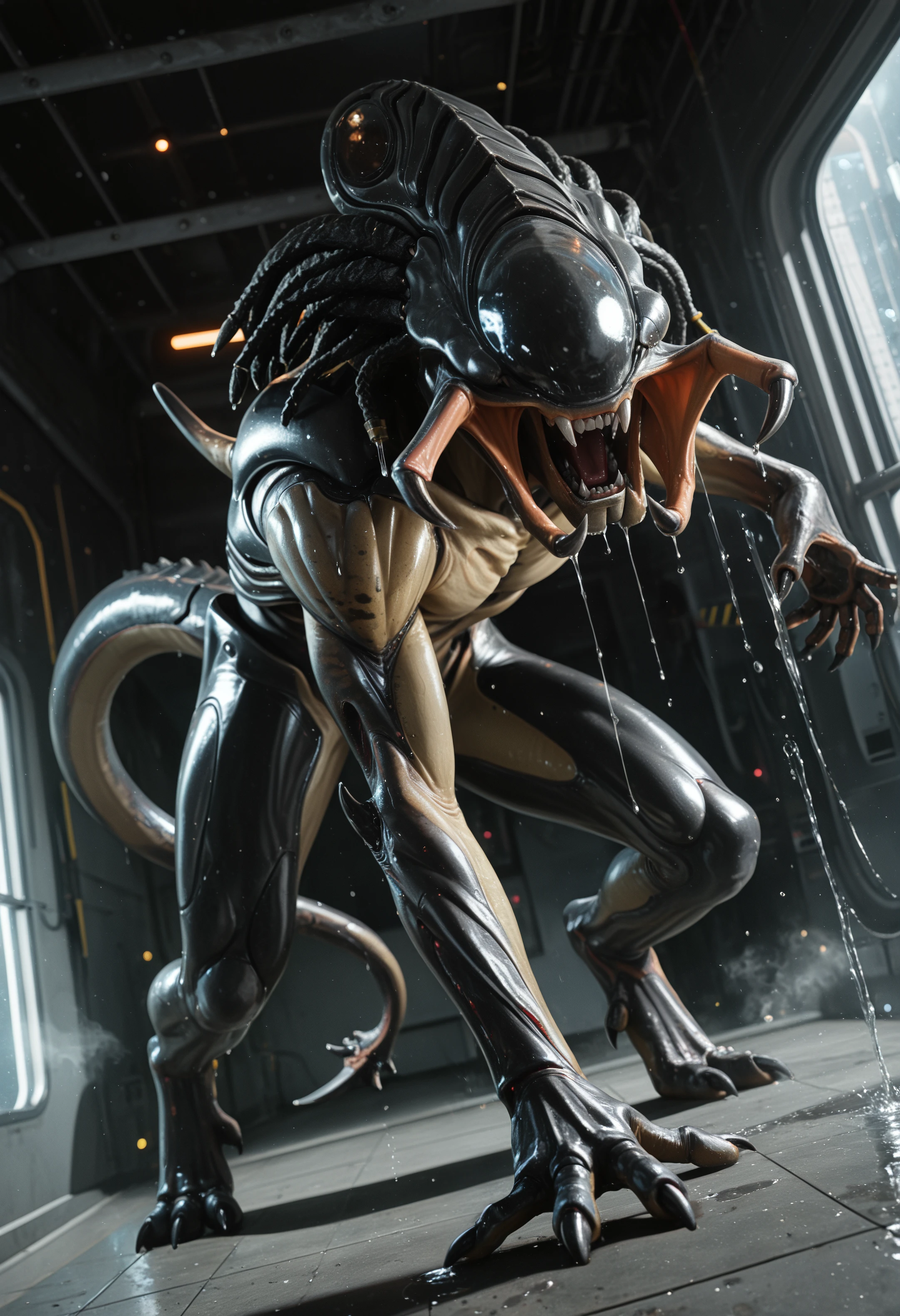 pr3dali3n_avp, hybrid, predalien, solo, teeth, alien, dreadlocks, monster, no humans, tail, hi res, anthro, claws, male, looking at viewer, raised tail, alien (franchise) 1️⃣ variant: