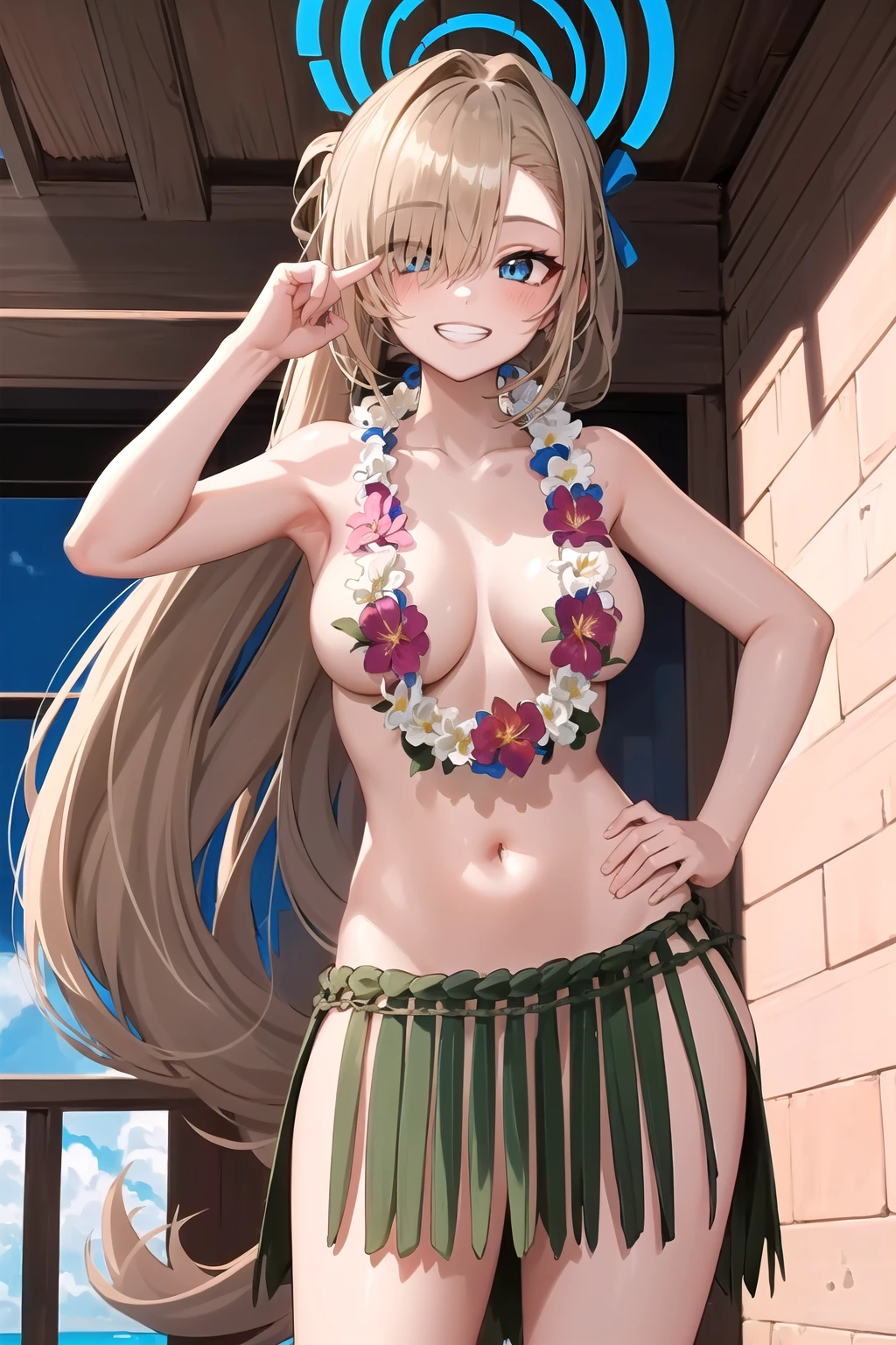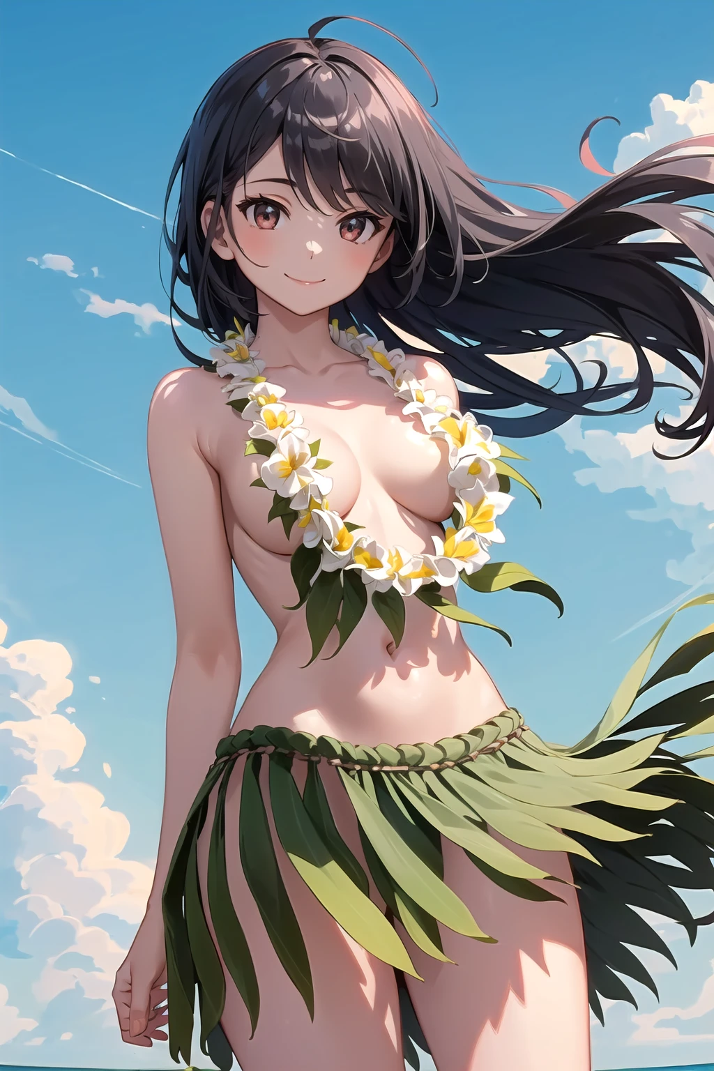 • Negative Prompt: lei, flower necklace, necklace, choker