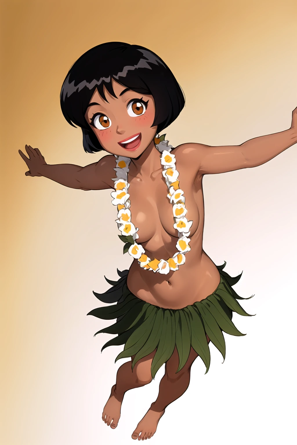 5. The grass skirt will sometimes look like a plain old green skirt without any spaces between different fibers. To fix this, try adding "skirt" to the negative prompt.