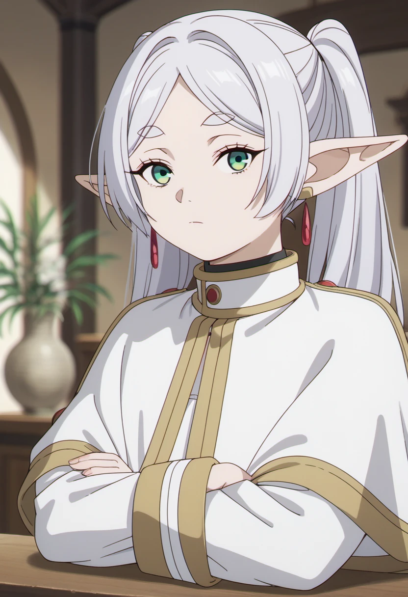 Trigger Words: frieren, long hair, white hair, green eyes, pointy ears, elf