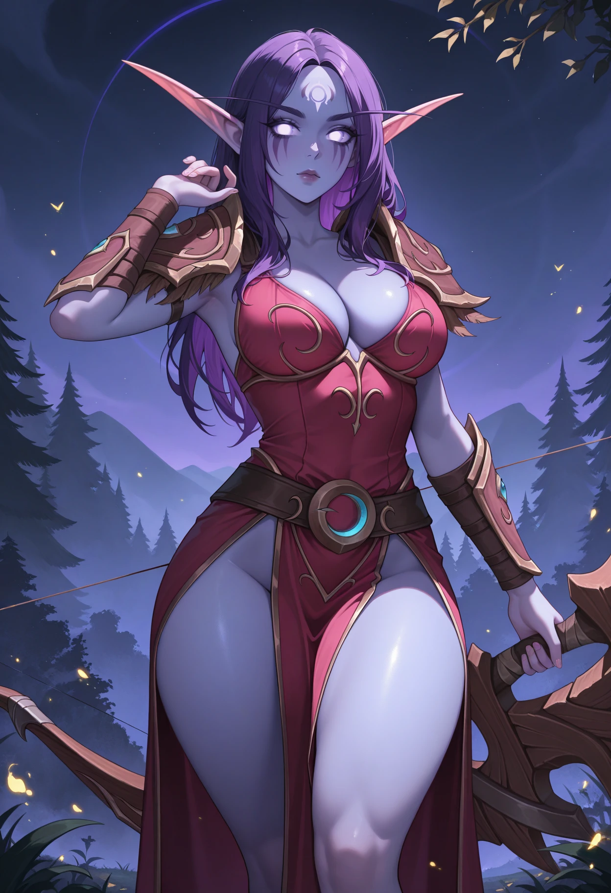 nghtelf, pointy ears, colored sclera, glowing eyes, no pupils, no eyes, colored skin, facial mark