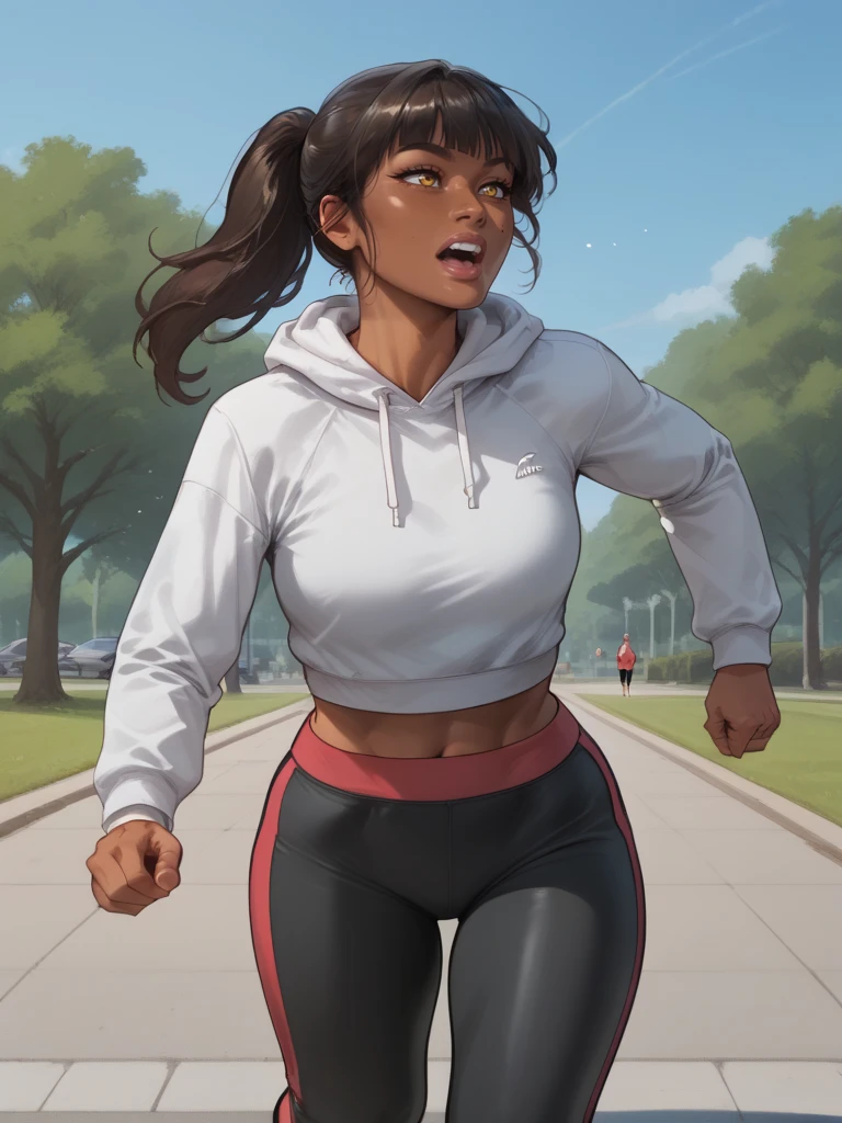 • Casual Prompt: white cropped hoodie, shoes, yoga pants