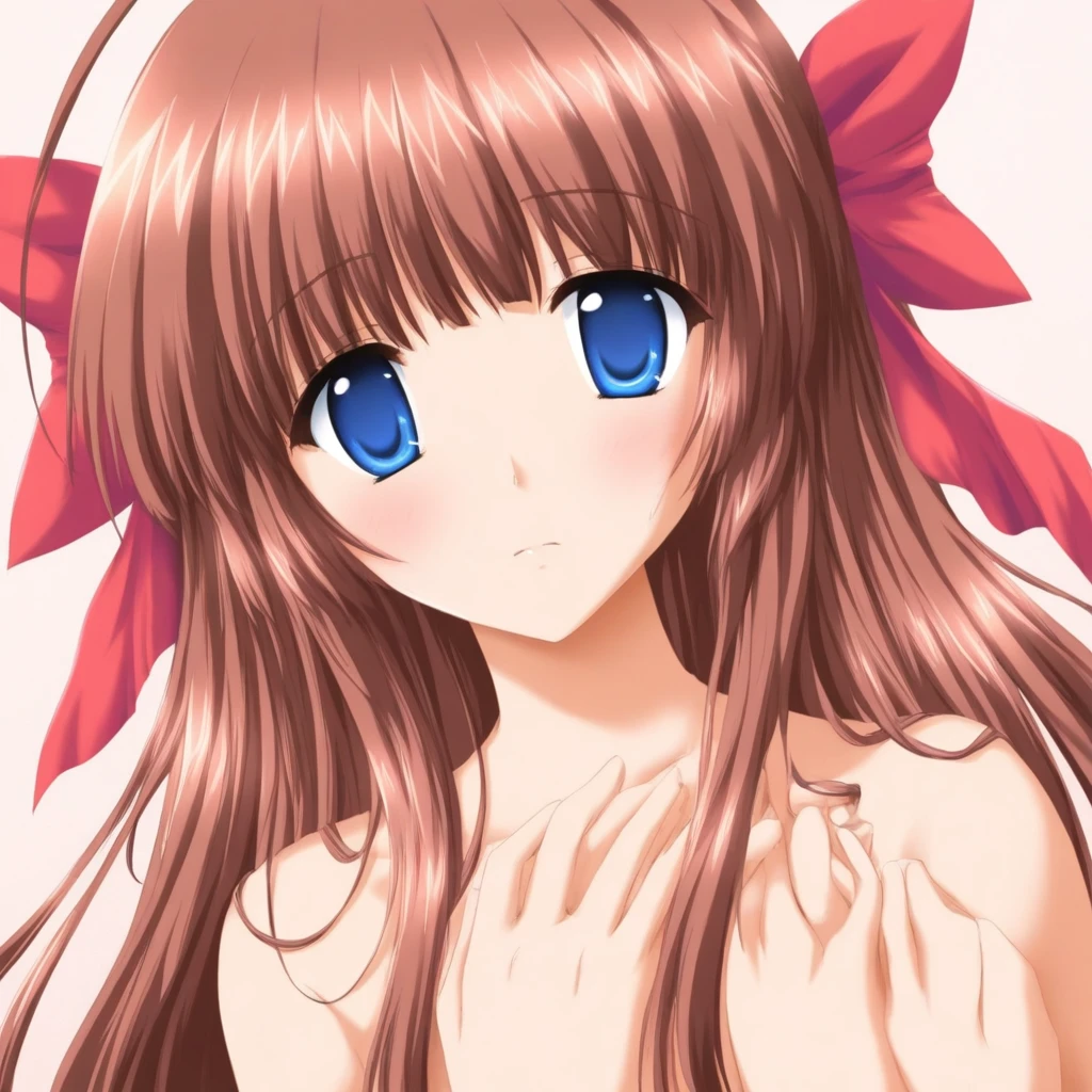 KanzakiaoiTB, long hair, brown hair, hair ribbon, bangs,