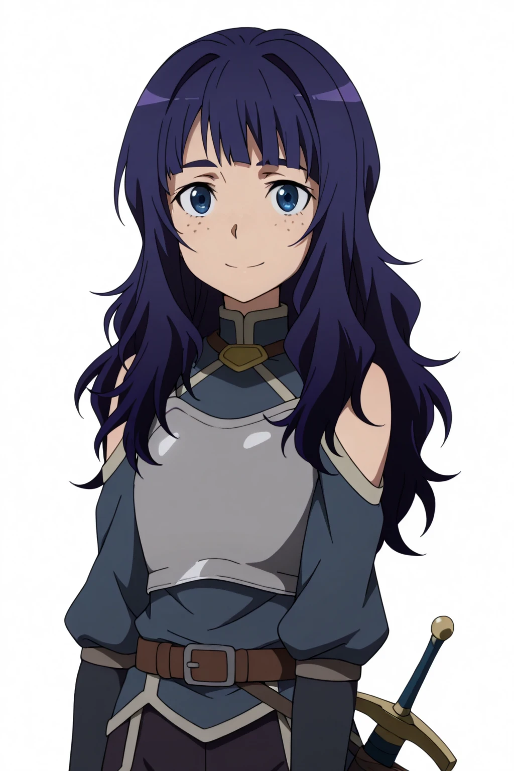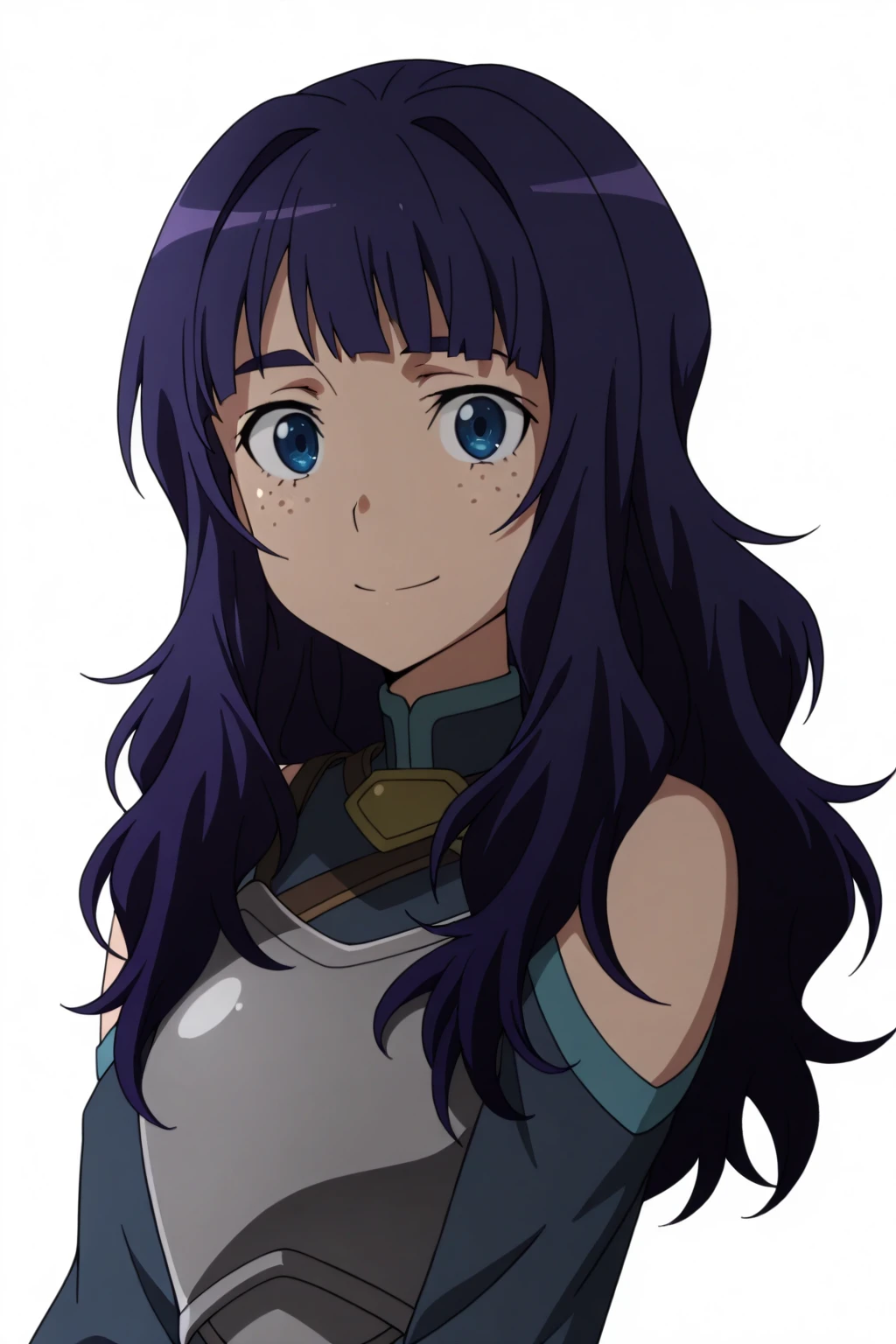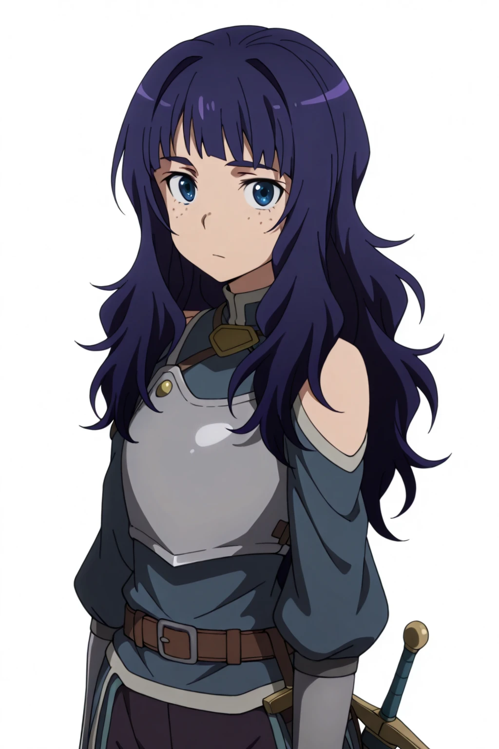 long hair, purple hair, blue eyes, freckles