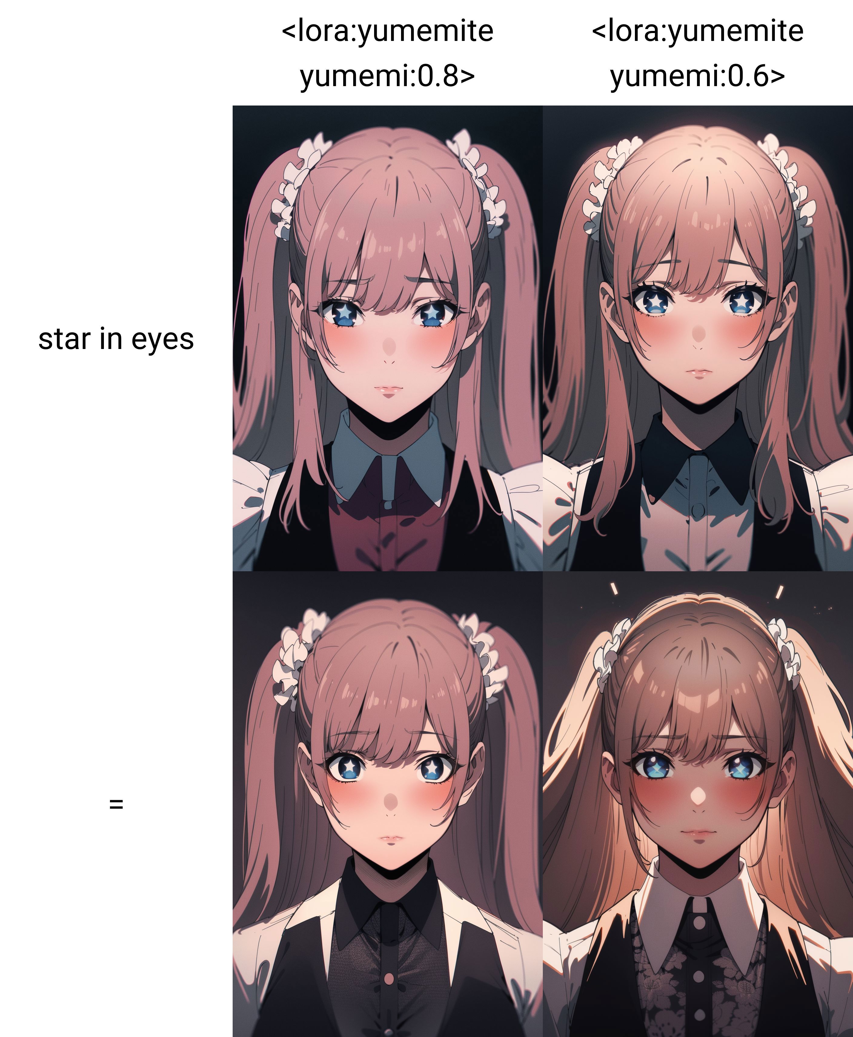 Use loRA at 0.6-0.8 for the best match, you can also try 1 sometimes you will need to see her "stars" so use prompt "star in eye" or "star in eyes" At high values this may not be necessary