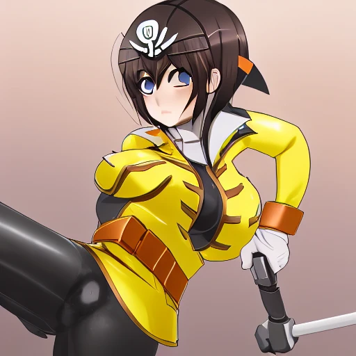 gokaiyellow,1girl,solo, yellow suit, black inner,yellow skirt,black bodysuit,yellow jacket,black pantyhose, black pantyhose, belt, gloves,yellow boots, helmet, mask