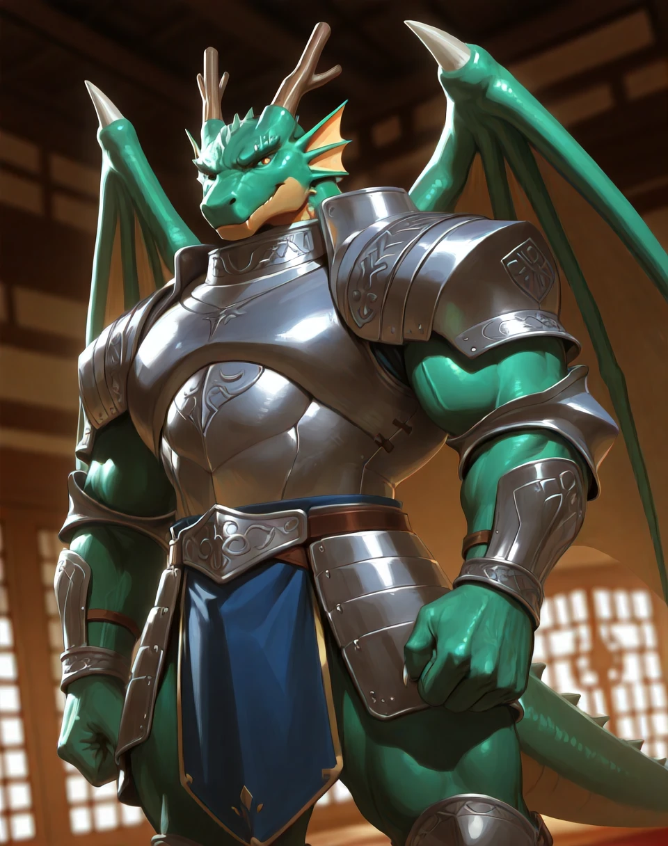 This is an Illustrious lora for Lazarus from the Shining Tears anime and video game series. Lazarus is a green dragon knight in shining armor.
