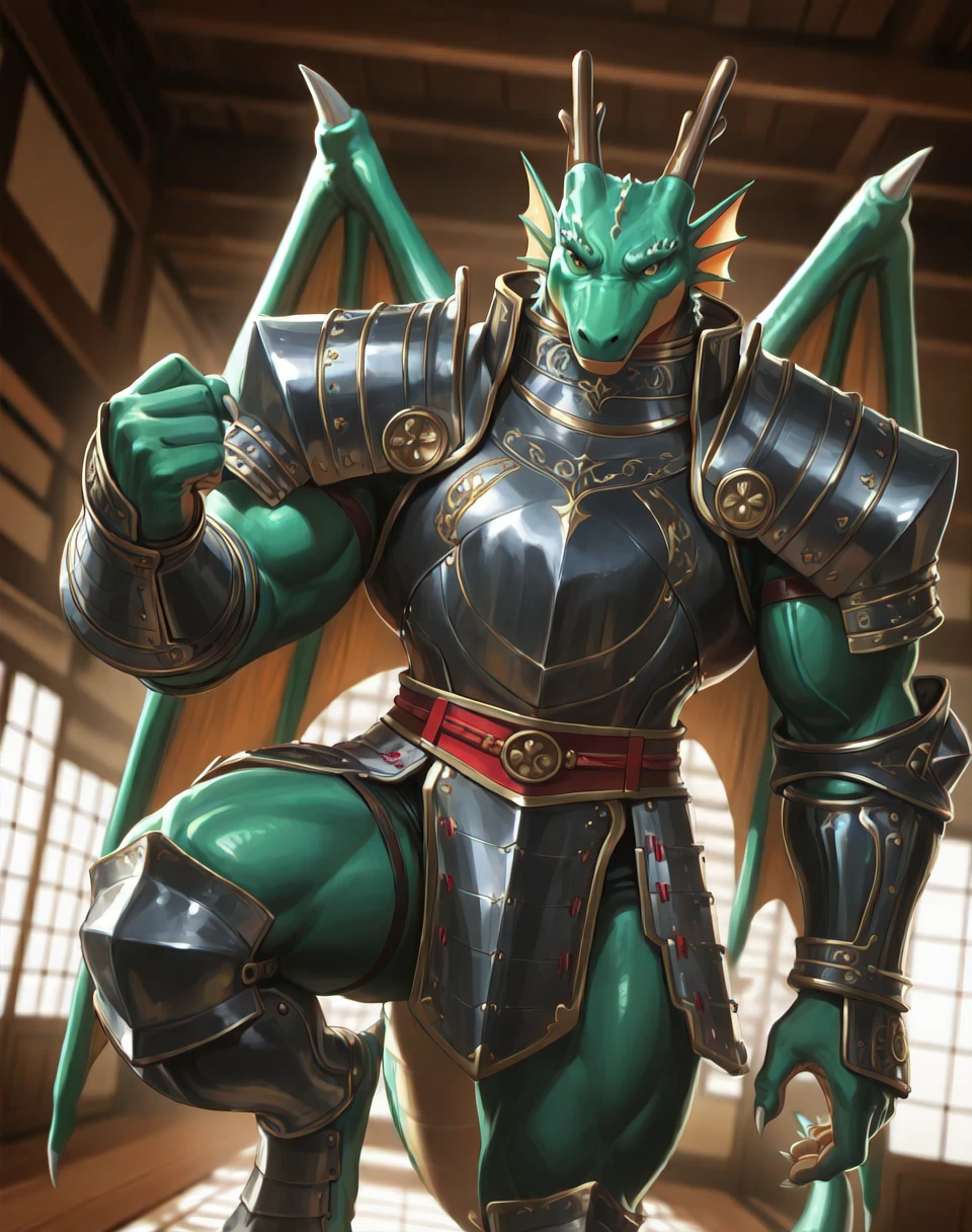 Prompts for this lora are ( Lazarus, muscular, dragon, armor, ).