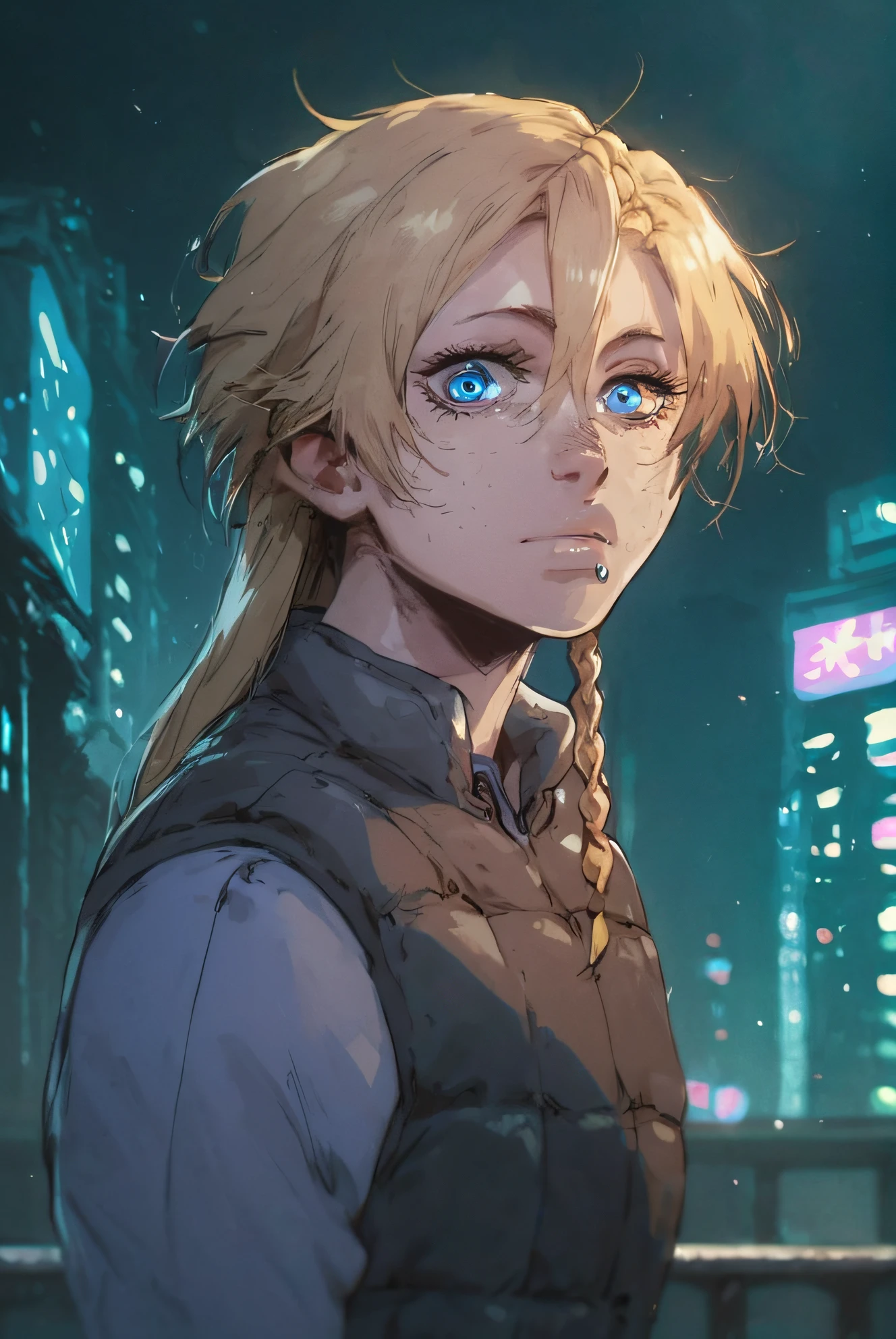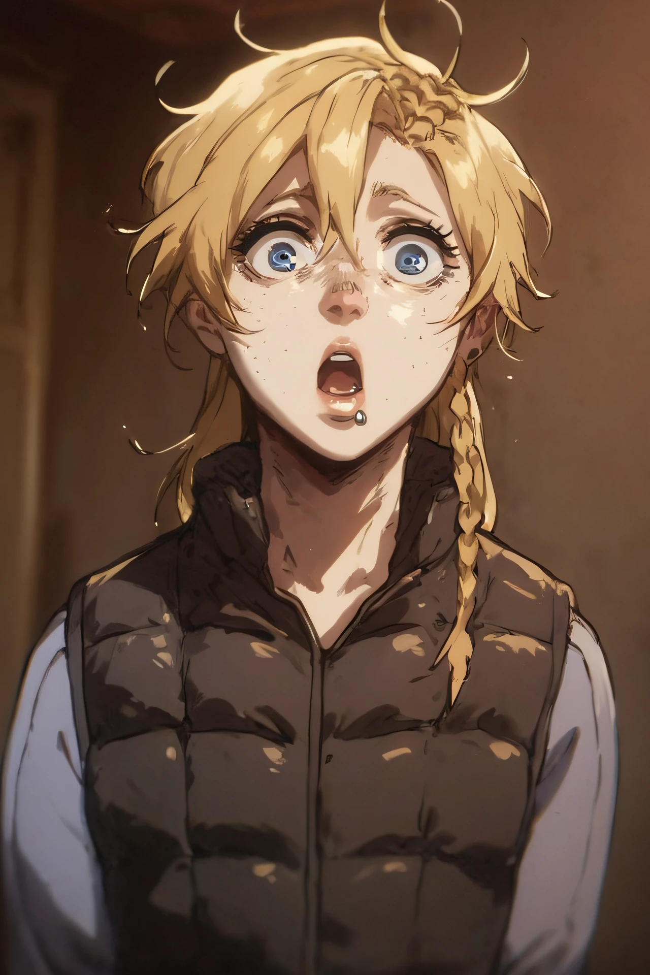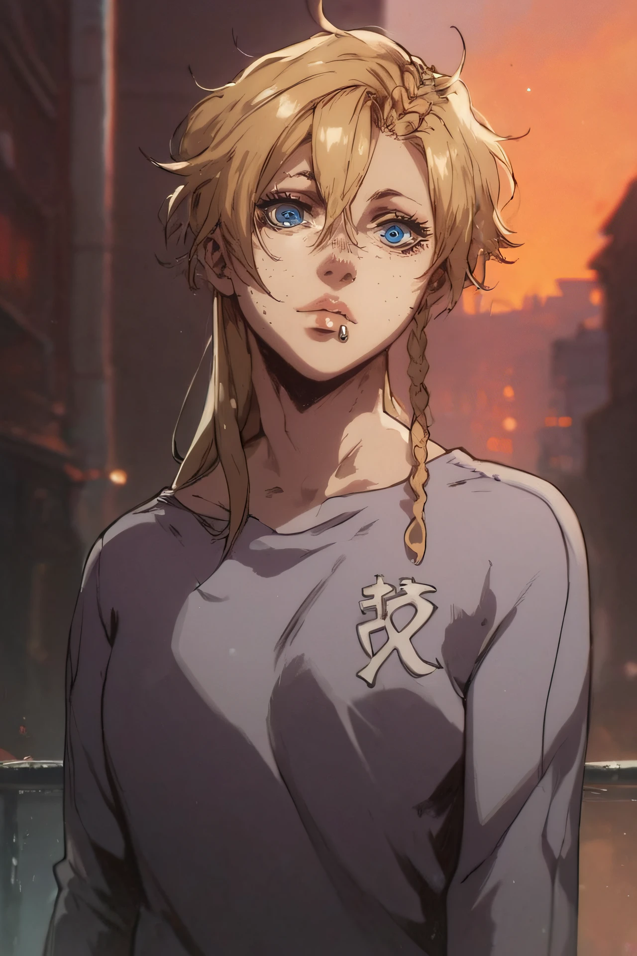 Prompts I use for character: mary, long hair, blonde hair, braid, blue eyes, freckles, side lip piercing