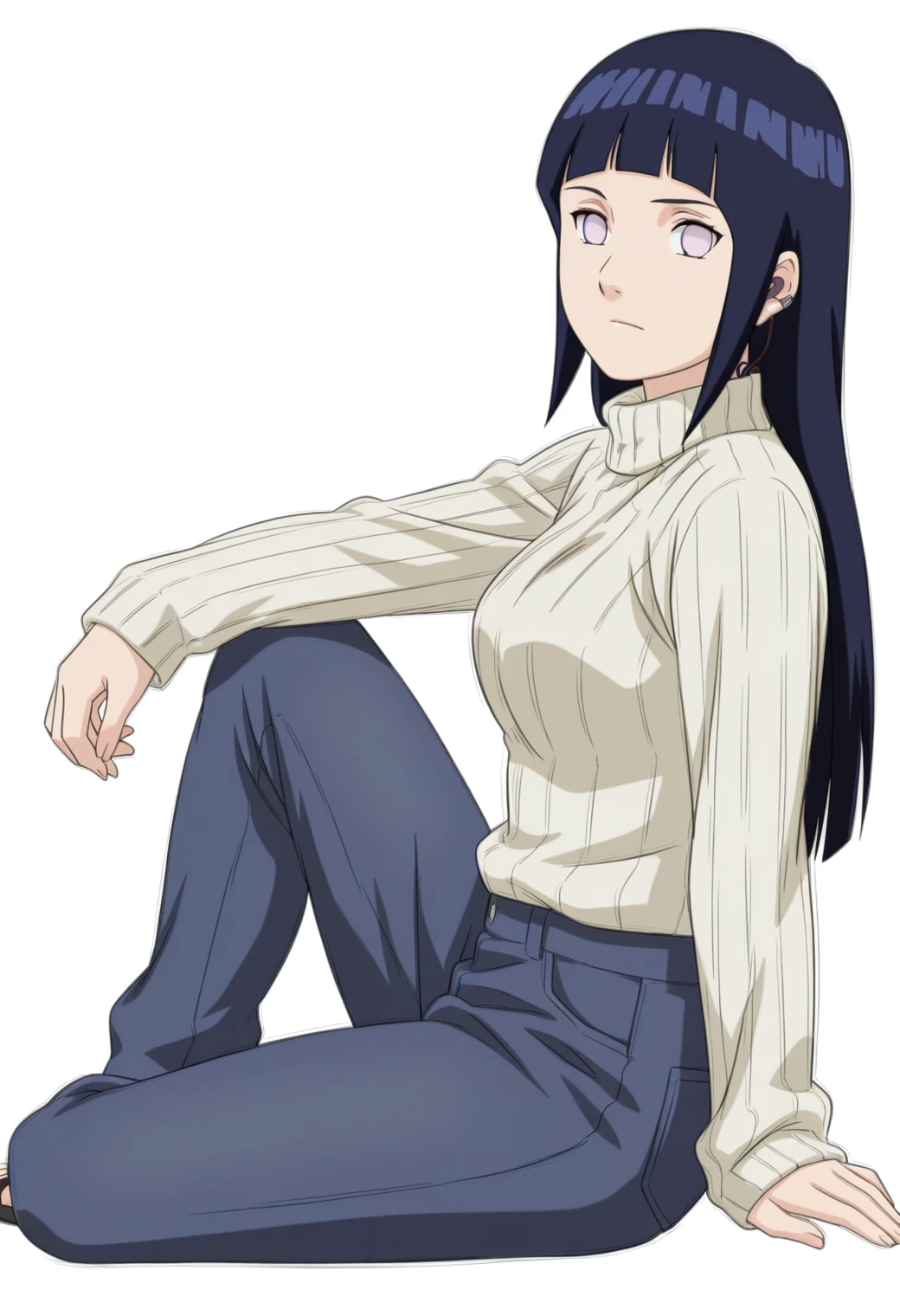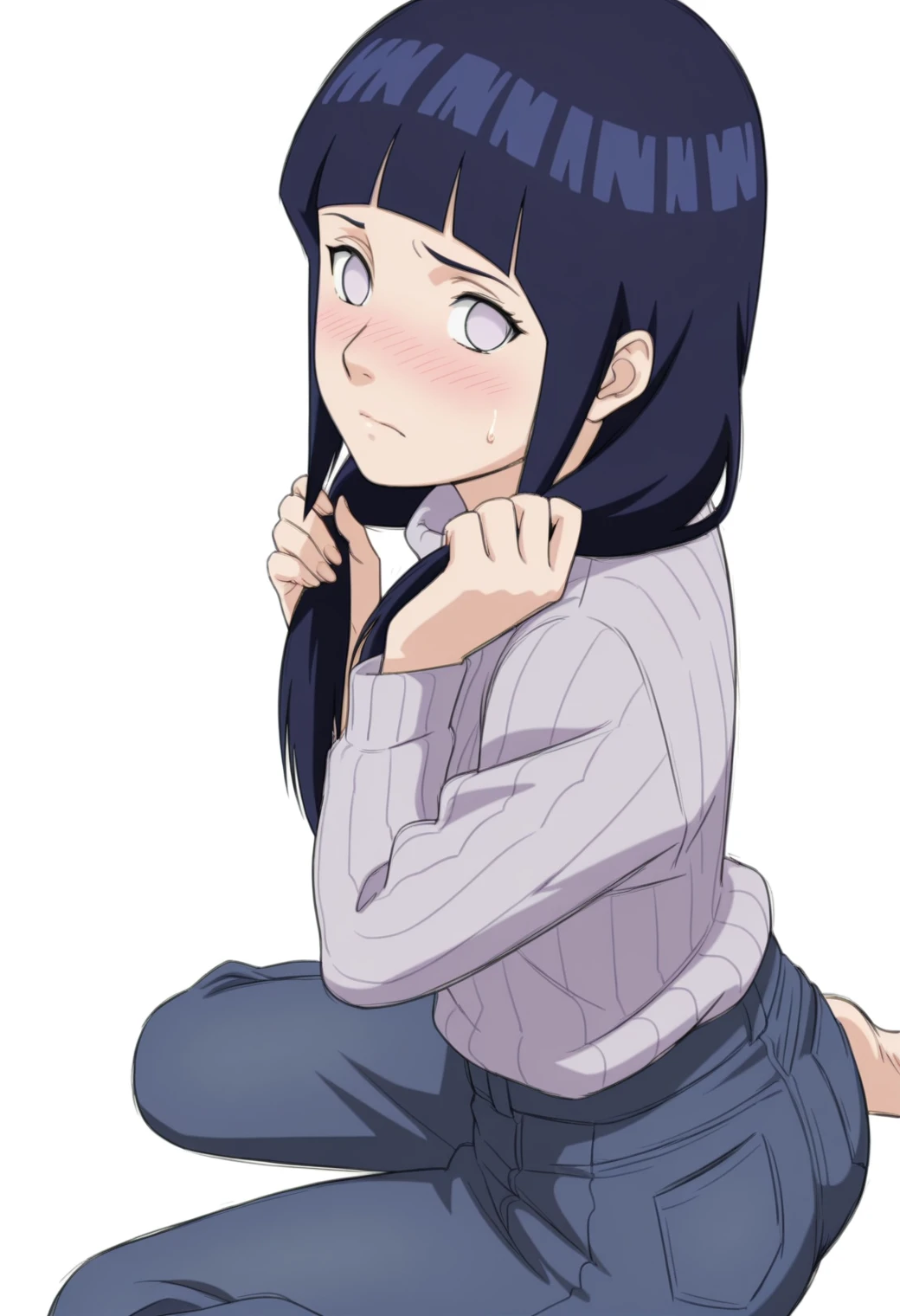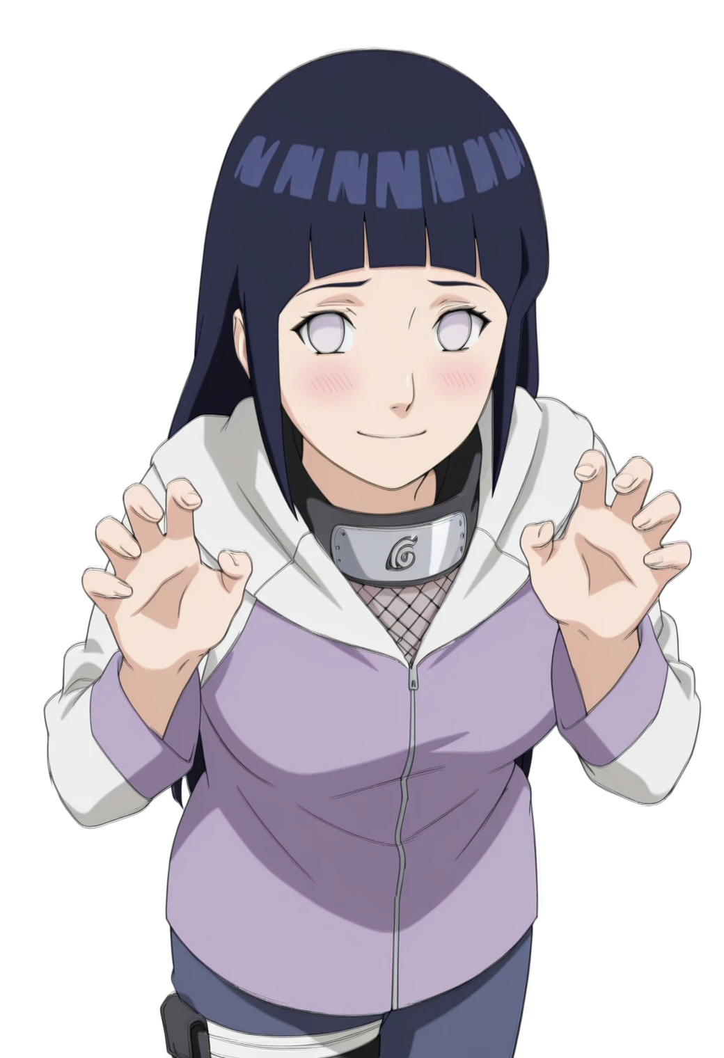 hyuuga hinata, white eyes, no pupils, blue hair, long hair, blunt bangs,