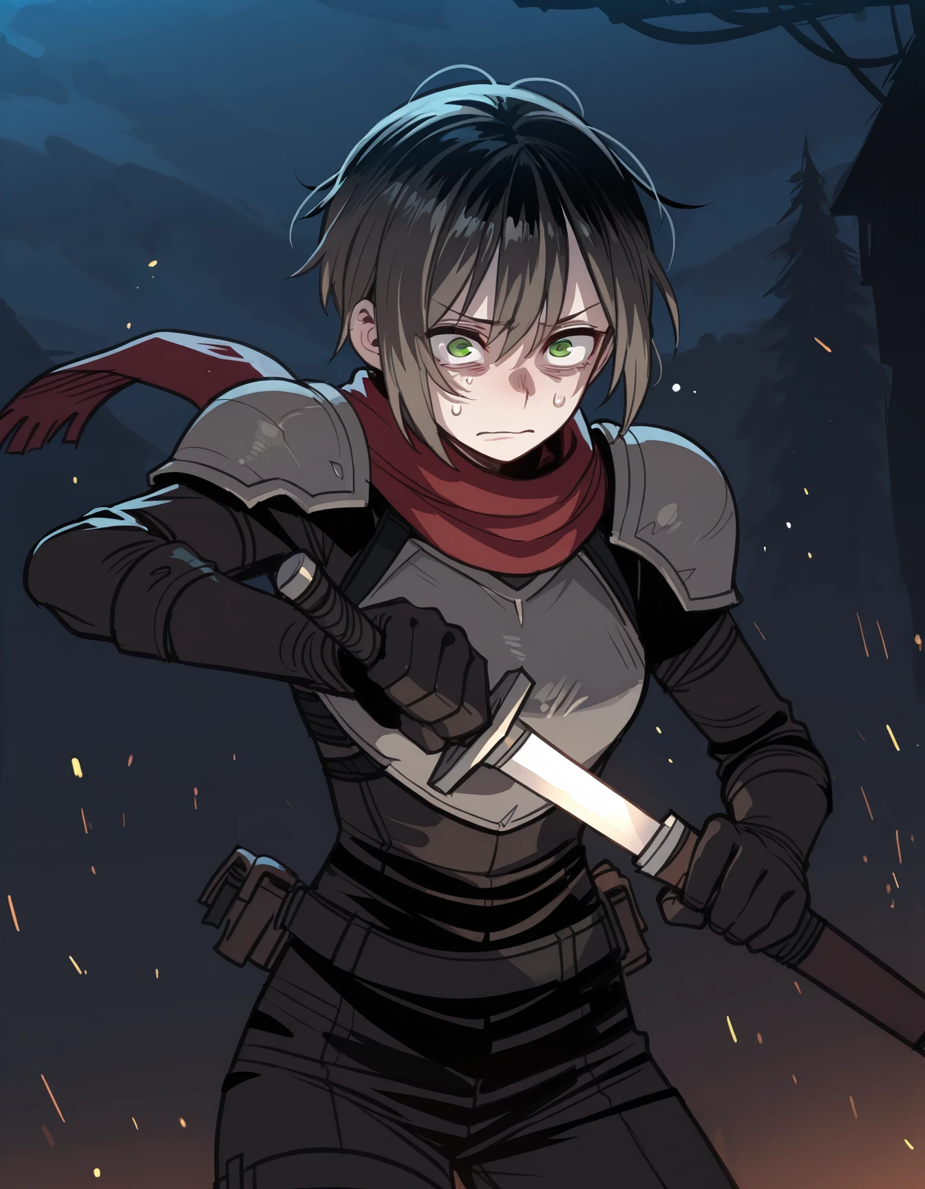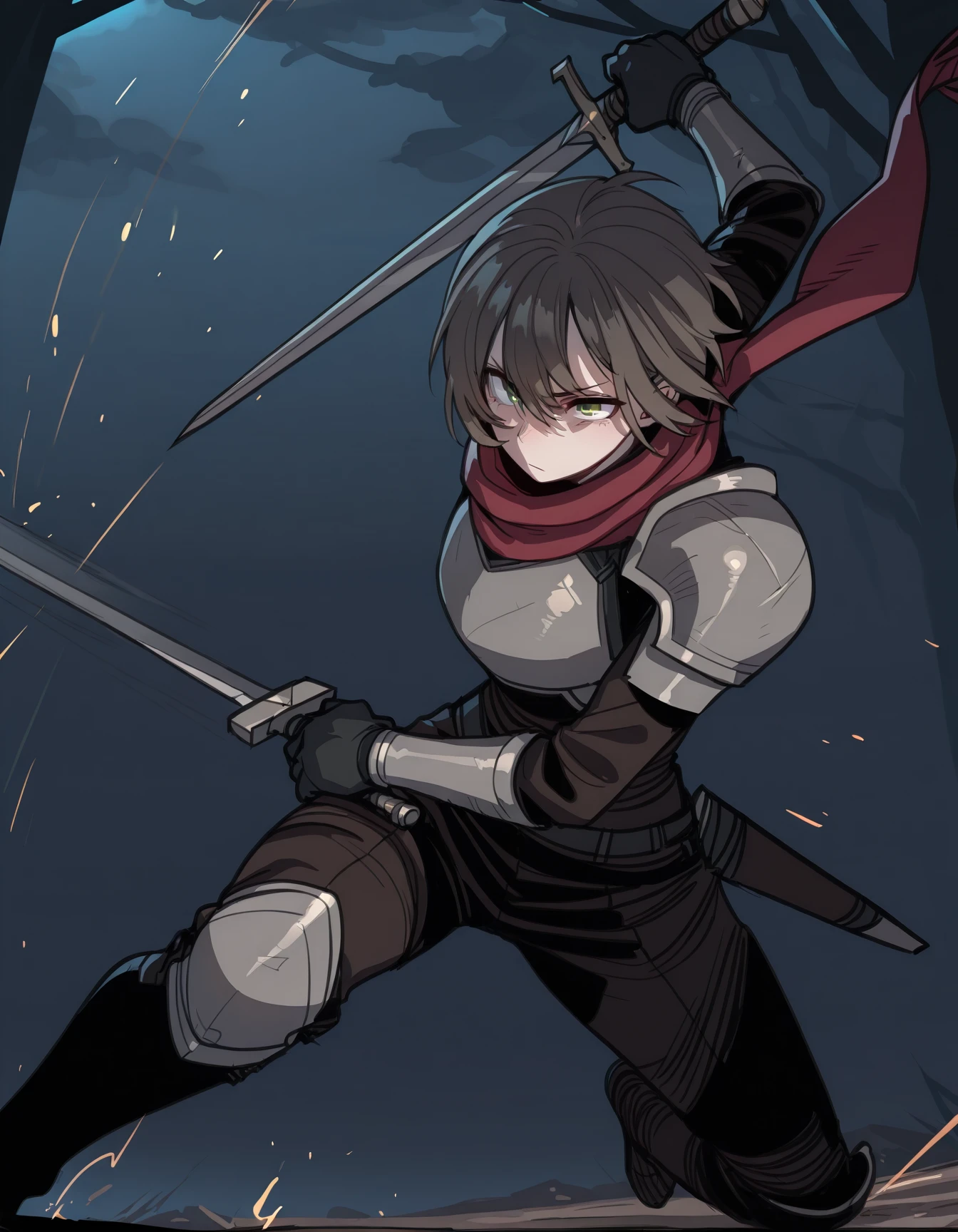 1boy, solo, male focus, b0ykn1gh7, scarf, pauldrons, breastplate