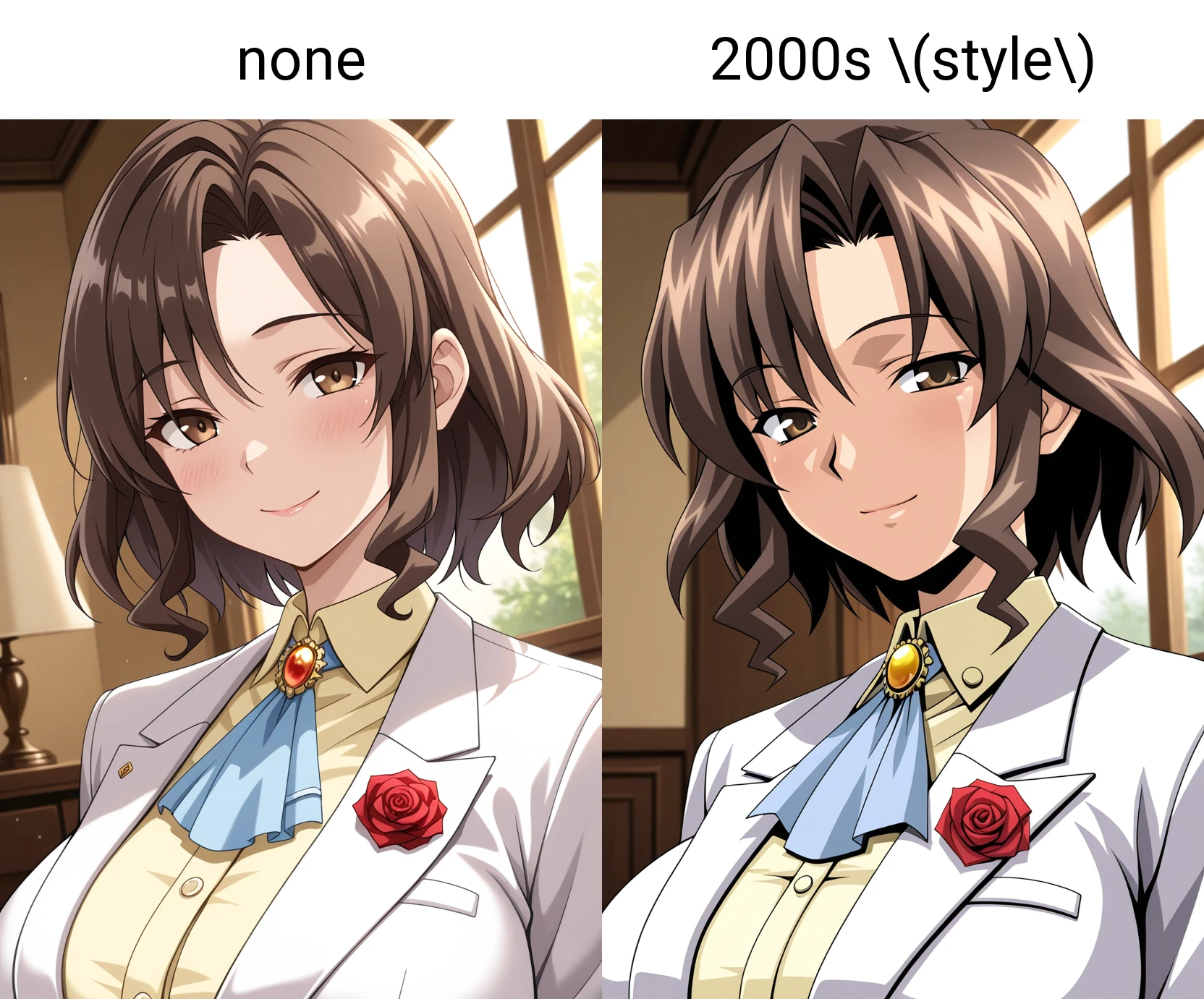 プロンプトに "2000s (style)" を使った方が、ゲームの雰囲気に近くなります。