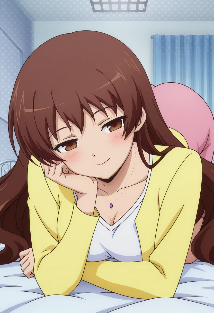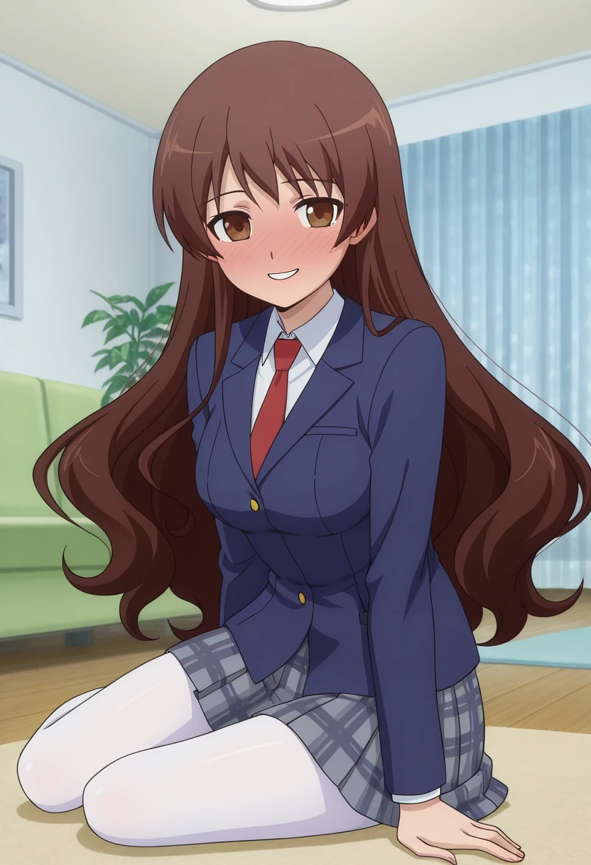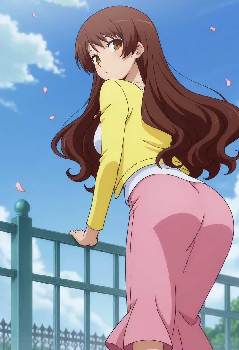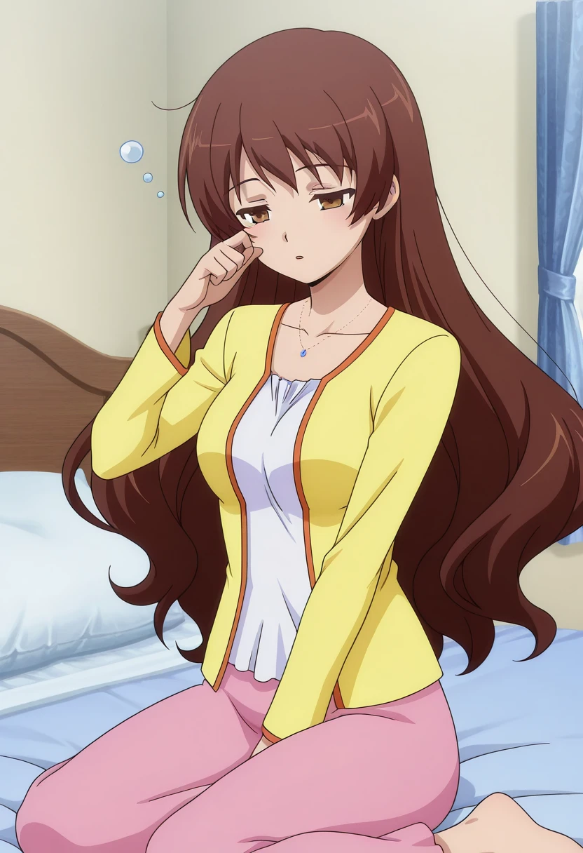 takeuchiww, mature female, brown eyes, brown hair, very long hair, wavy hair, medium breasts,