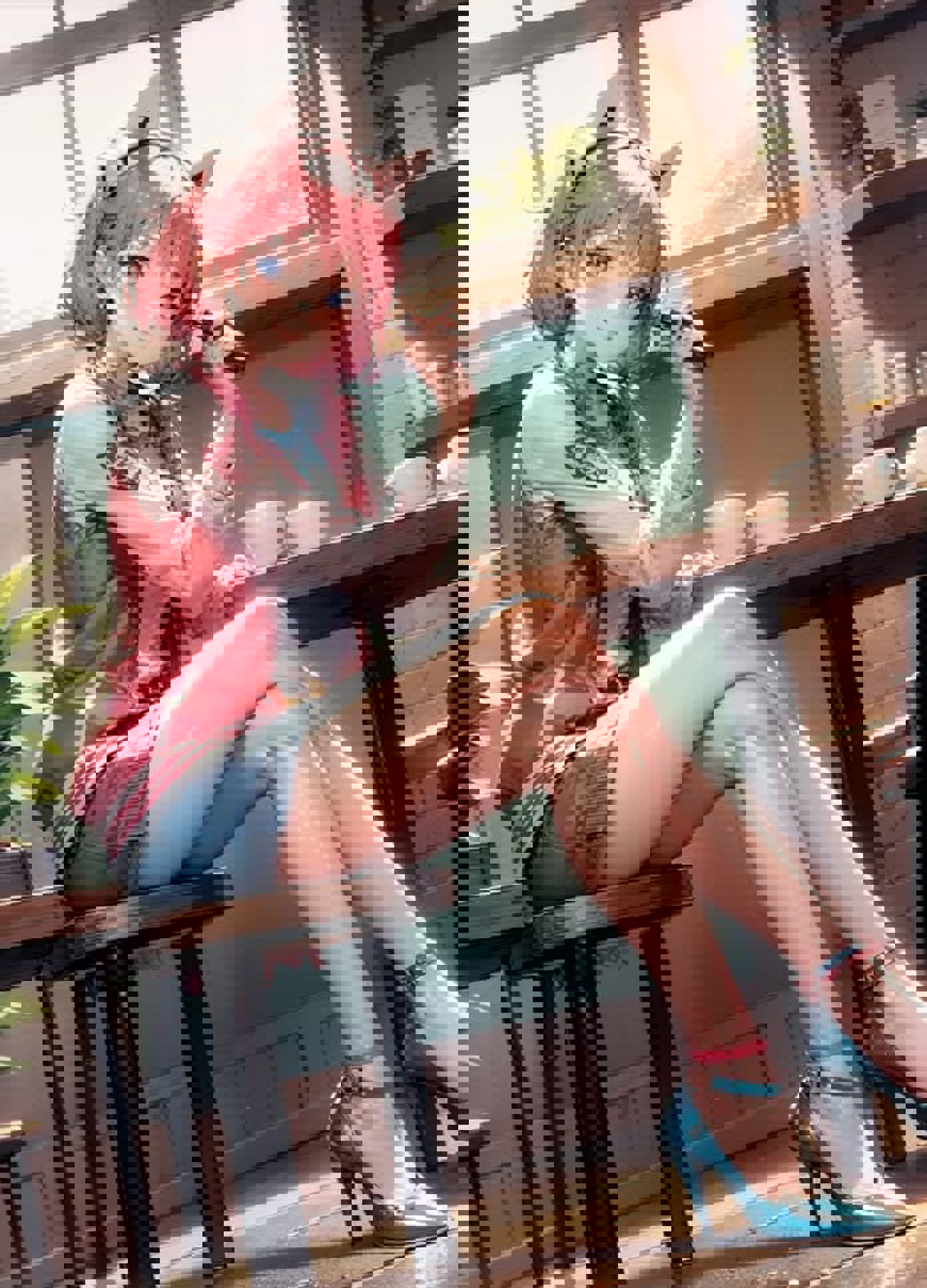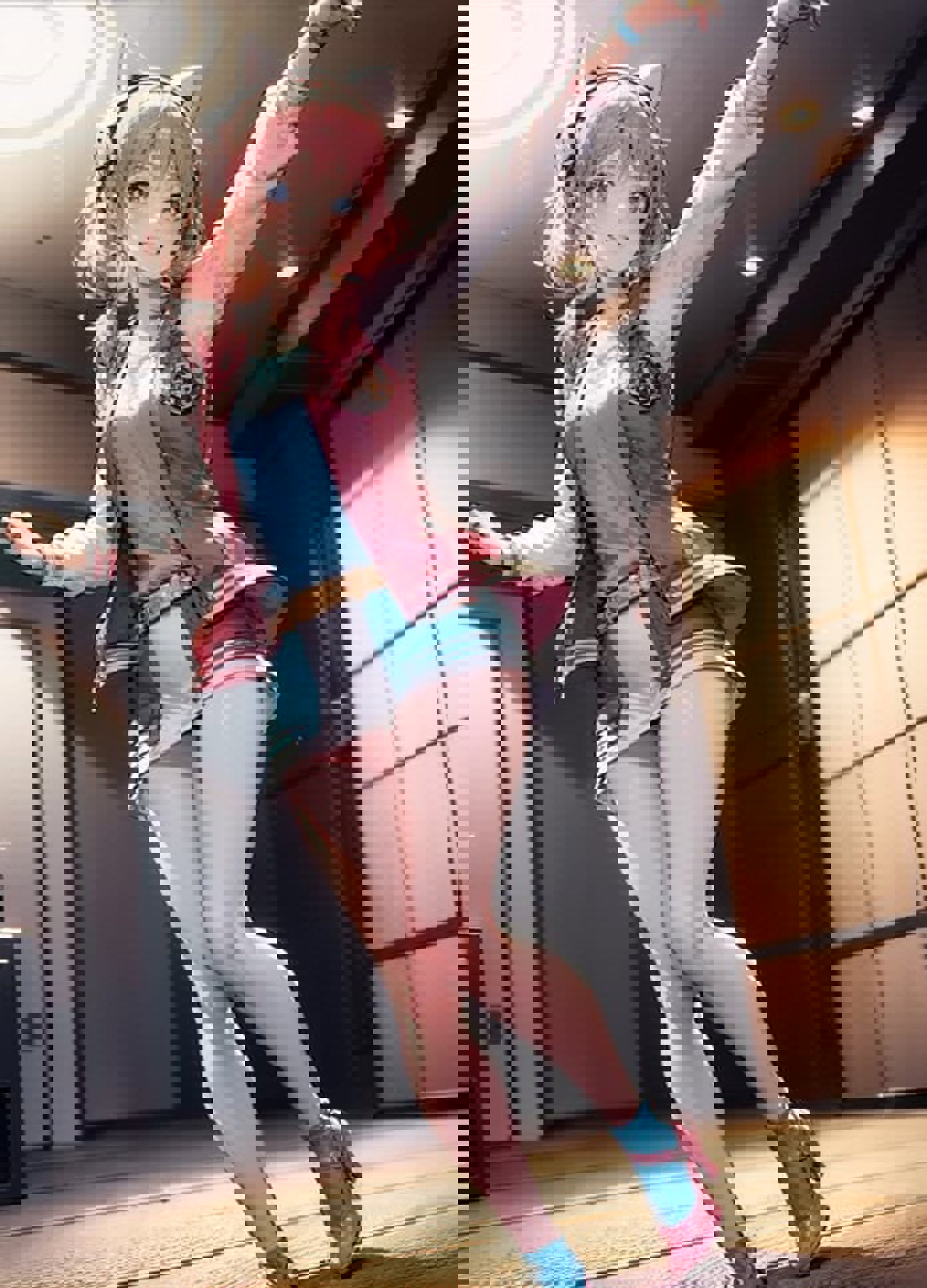 She can wear any outfit you want, but if you need her default clothes, prompt irissagan, jacket, pink heels, blue socks, low twintails, headset