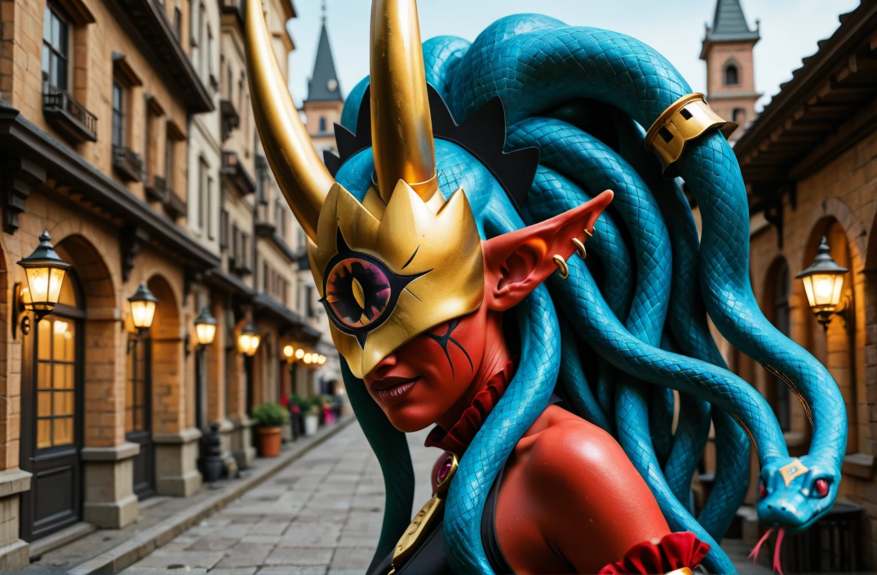 Improved version of my Medusamon Lora, trained locally on Illustrious 0.1 for about 50 epochs on 25 images. This version seems to get the character much more consistently and works on a variety of styles and models. The base trigger word is "medusamon", but "1girl,solo,red skin,snake hair,blue hair,pointy ears" seems to help with the consistency of the look. I also recommend "platform footwear,detached sleeves,fingerless gloves,low wings,tail" for full body shots. You can try "twintails" to get her hair look properly, but its not very consistent. I recommend a lora weight of around 0.9-0.97.