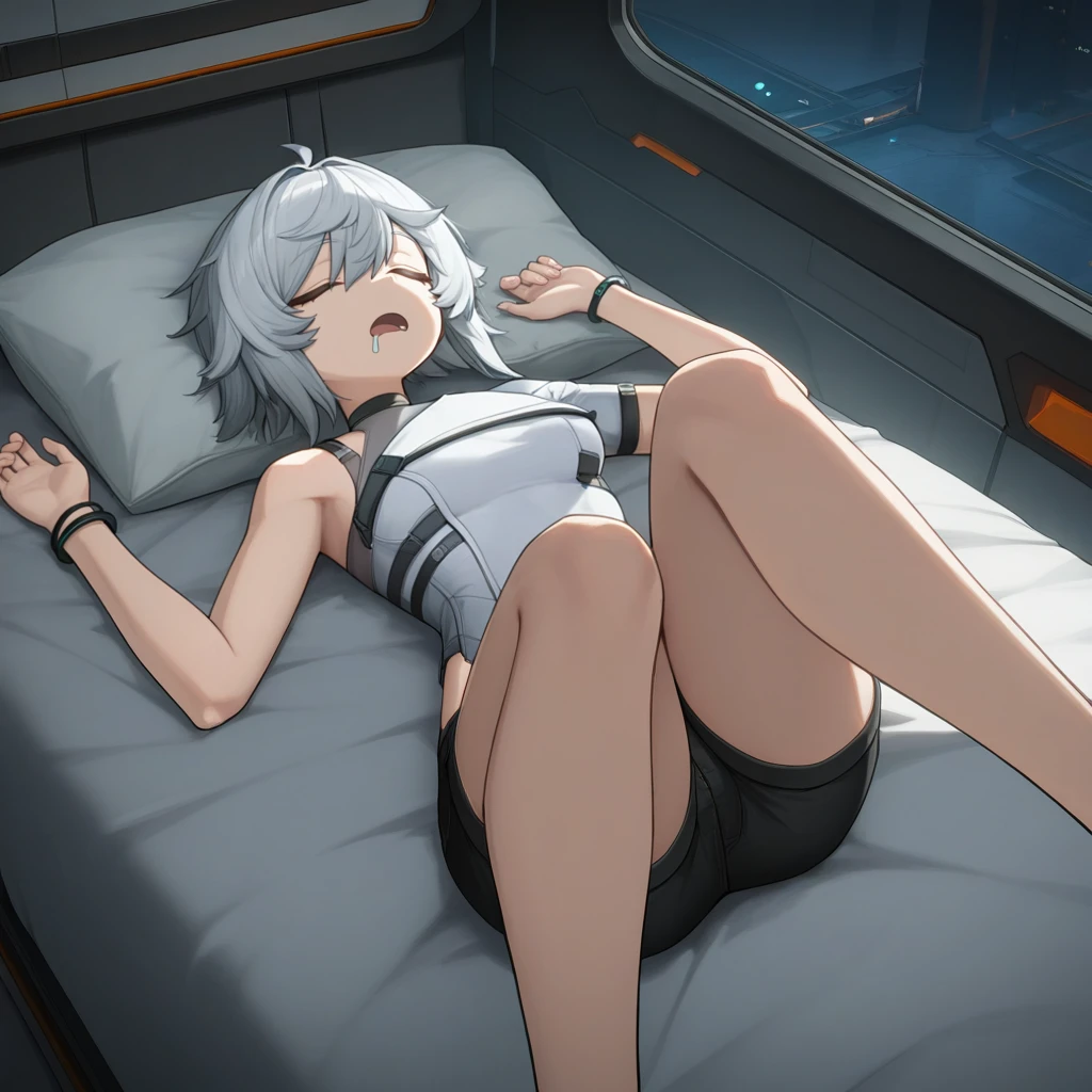 Mch_Alt, grey shirt, single-shoulder shirt, black shorts, short shorts, bracelet, single bare shoulder, shoulder strap, The results of your generations are dependent on the additional LoRAs, weights, and models you use, so it may not work or come out as consistent as my sample images.